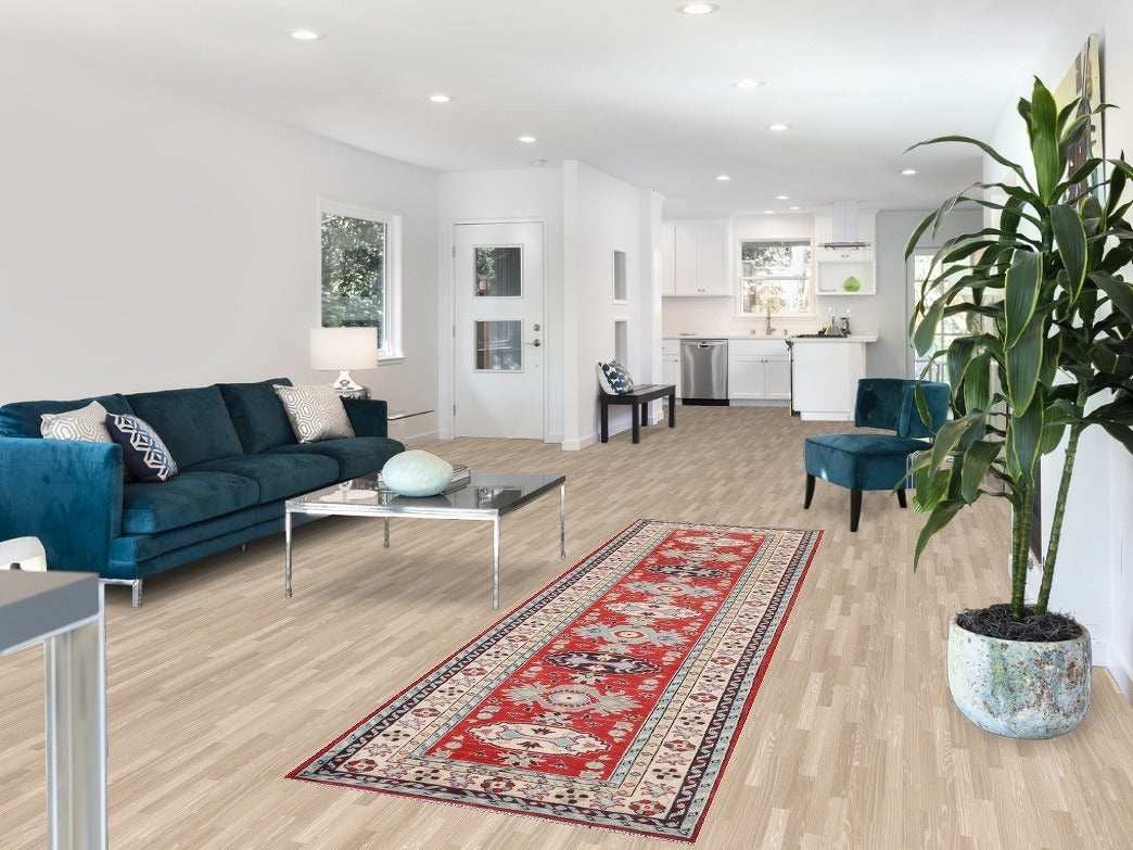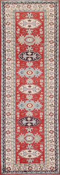 Geometric Red Kazak Wool Runner Rug 3x10