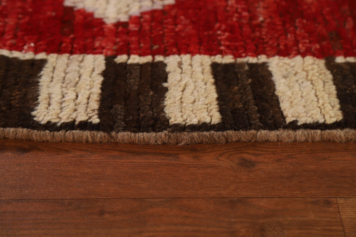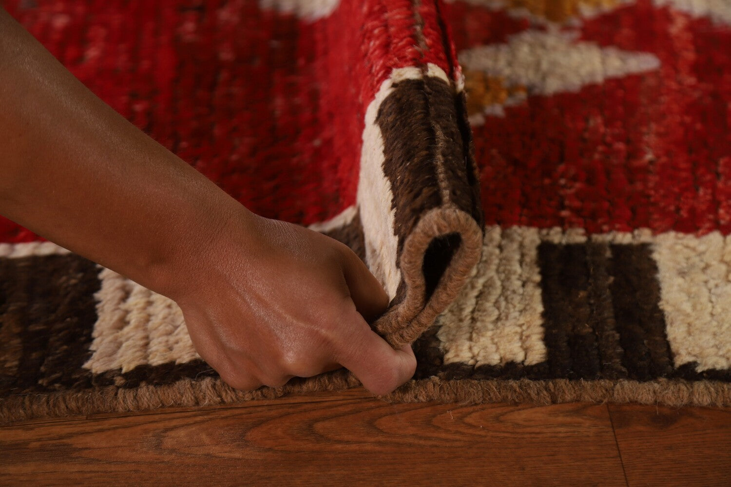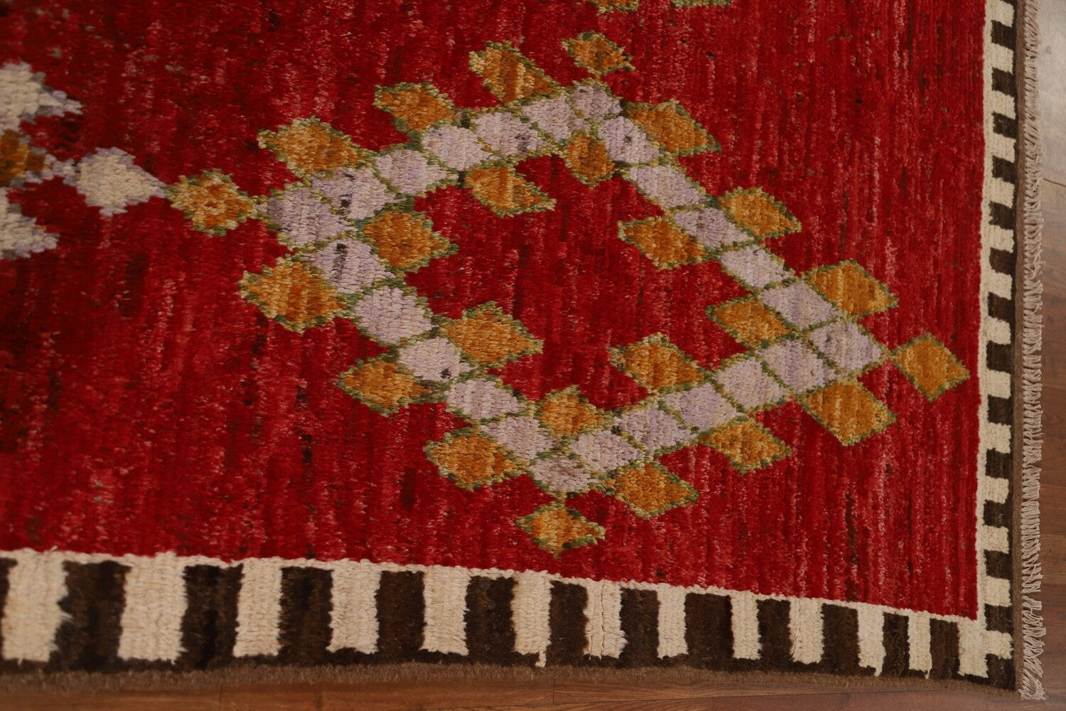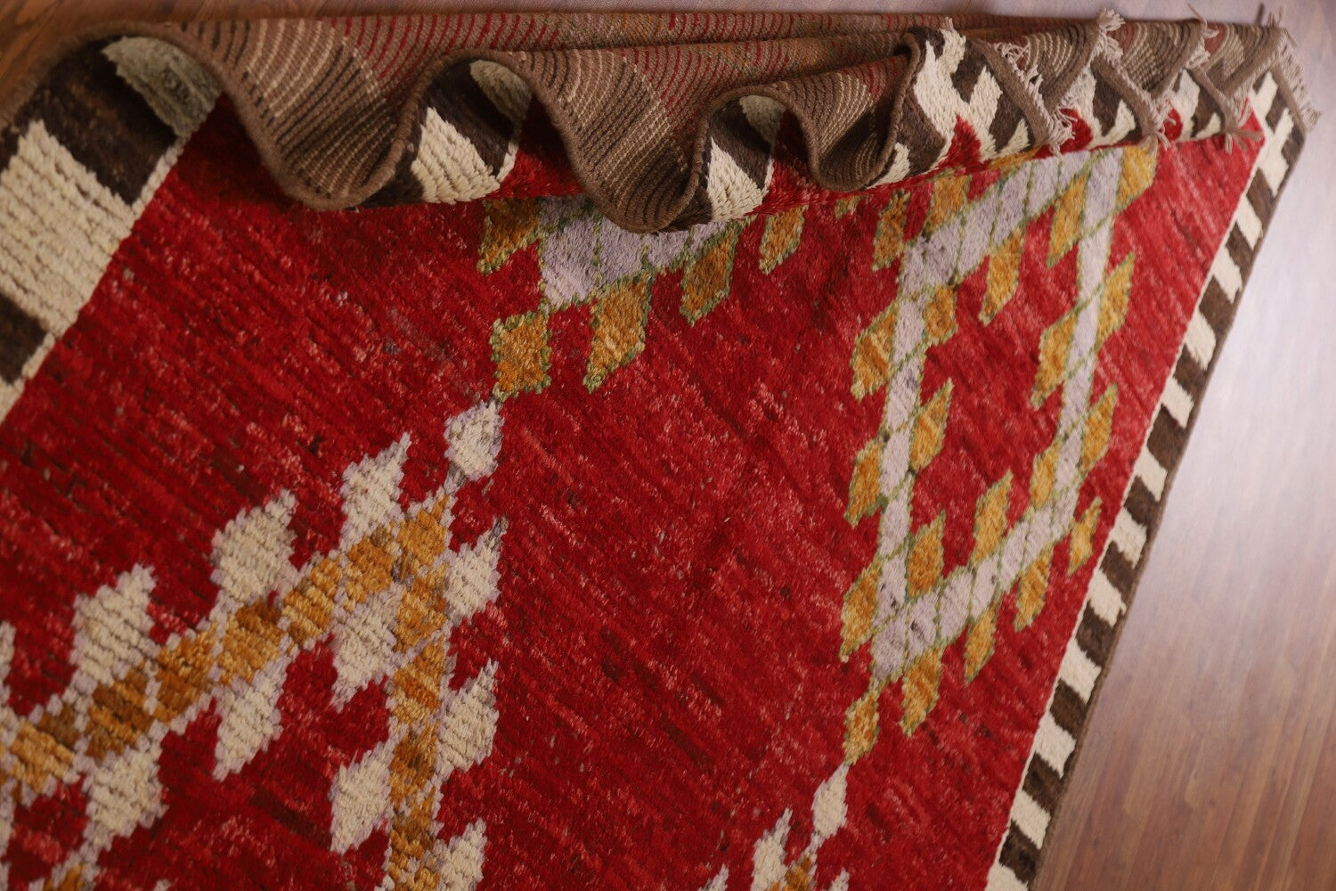 A Beautiful Genuine Pakistan Moroccan rug is Hand Knotted by skillful weavers in Pakistan with 100% Wool Material. This rug is in condition. dimensions are 8' 1'' X 5' 7'' in foot and 246 X 170 in centimeter. the primary color is Red.