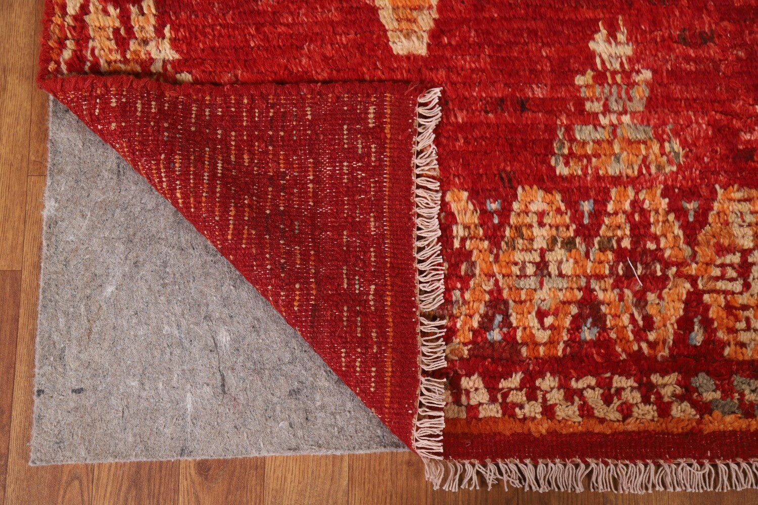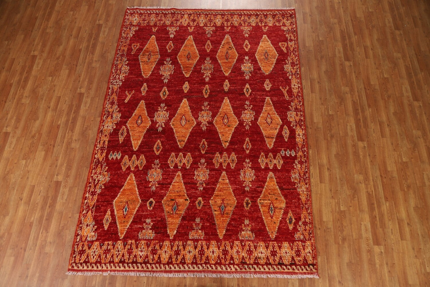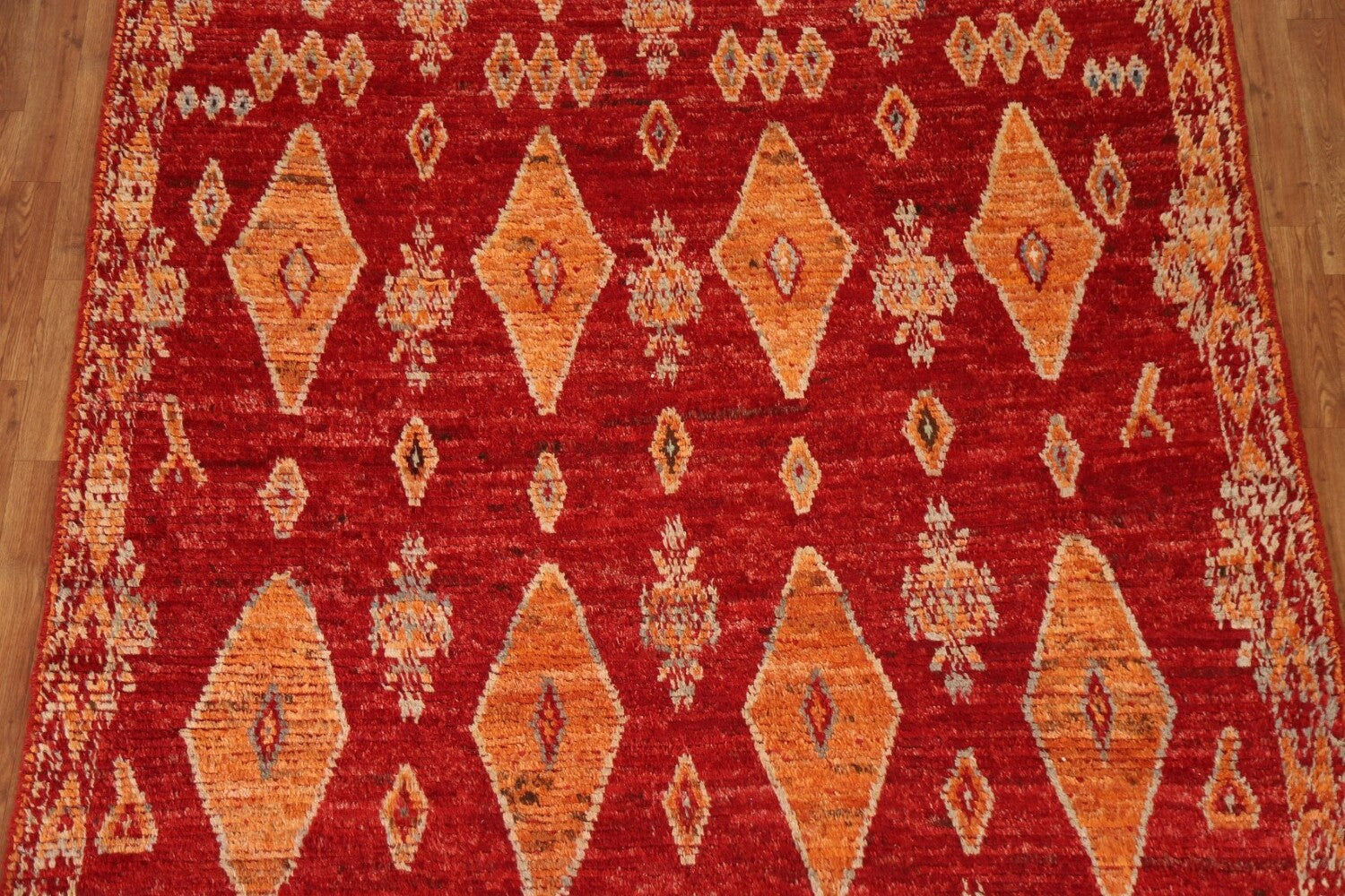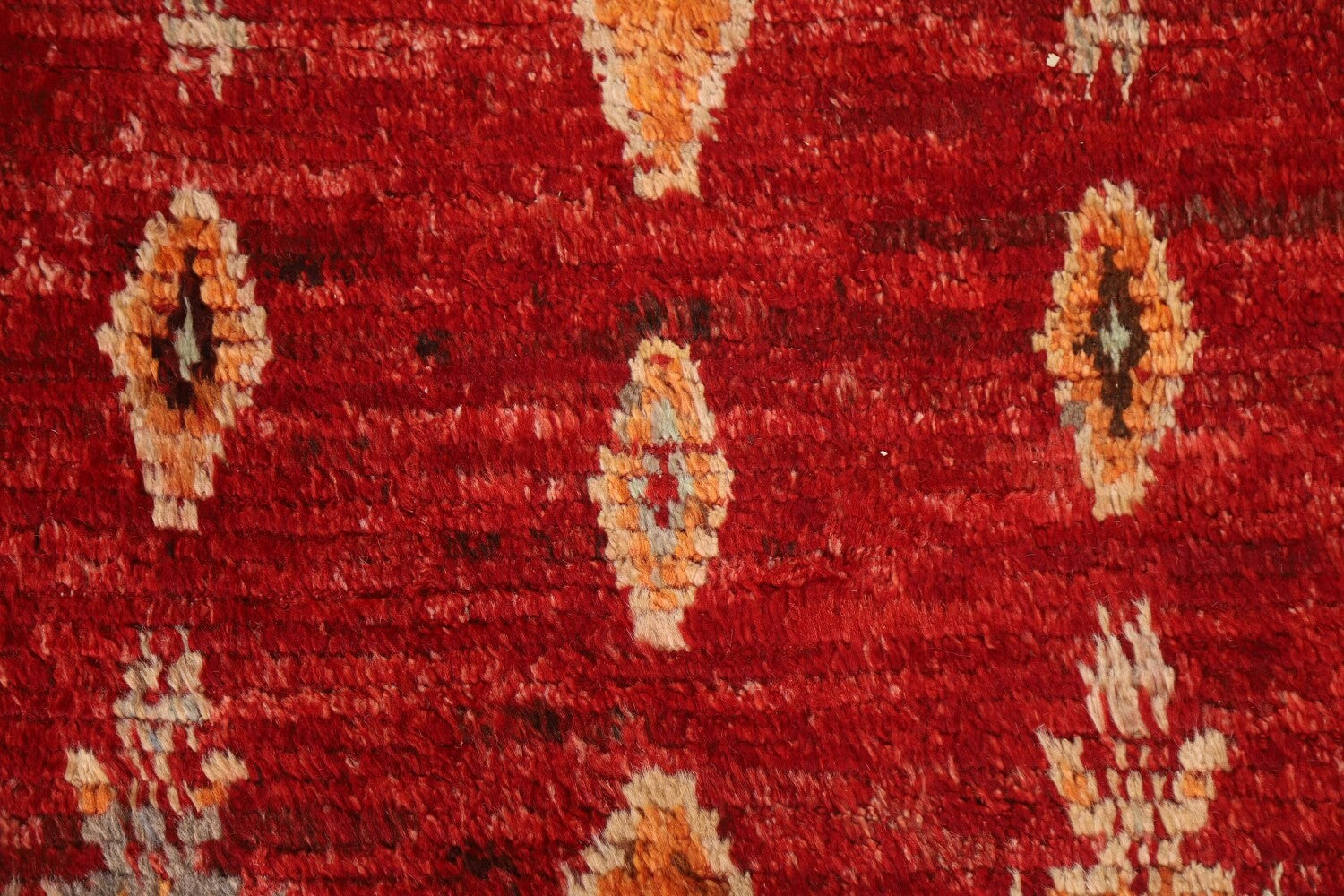 A Beautiful Genuine Pakistan Moroccan rug is Hand Knotted by skillful weavers in Pakistan with 100% Wool Material. This rug is in condition. dimensions are 9' 11'' X 6' 10'' in foot and 302 X 208 in centimeter. the primary color is Red.