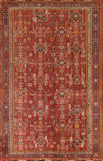 Geometric Red Shiraz Kashkoli Persian Area Rug 5x8