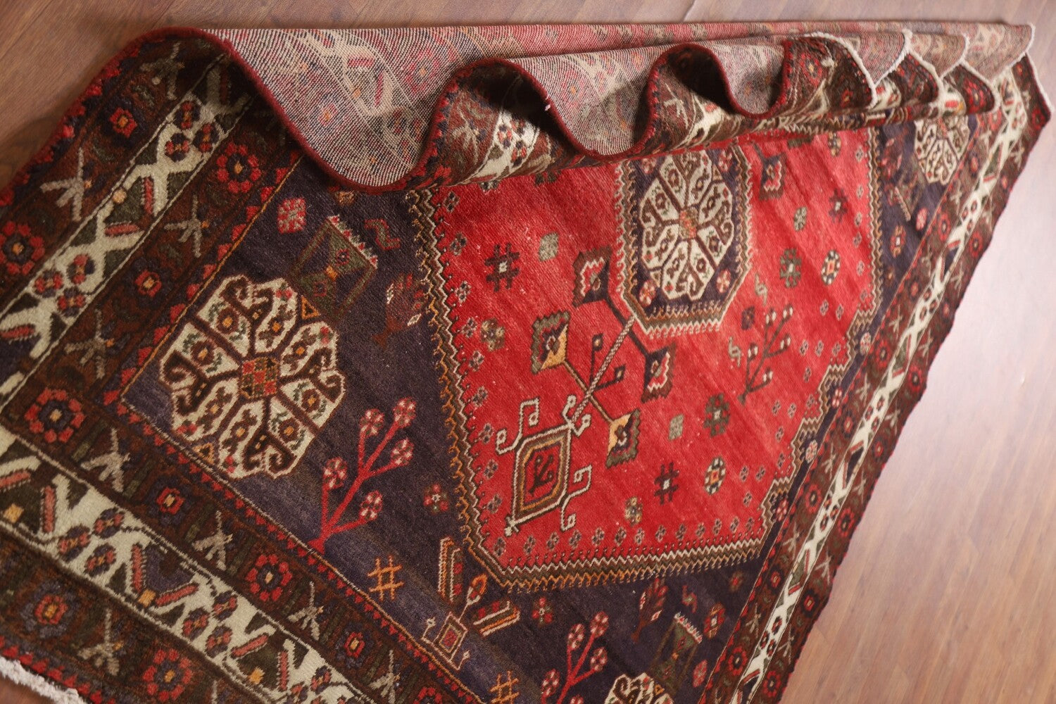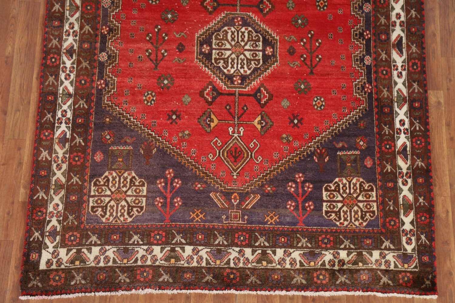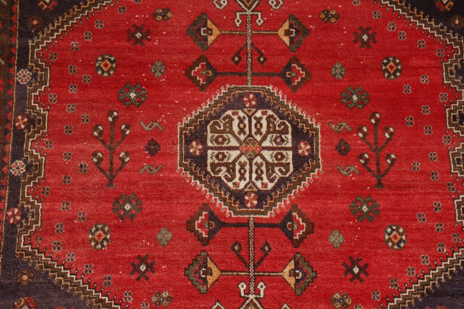 A Beautiful Genuine Persia ( Persia ) Shiraz rug is Hand Knotted by skillful weavers in Persia ( Persia ) with 100% Wool Material. This rug is in Very Good (Abrash) condition. dimensions are 6' 7'' X 5' 2'' in foot and 201 X 157 in centimeter. the primary color is Red.