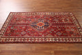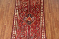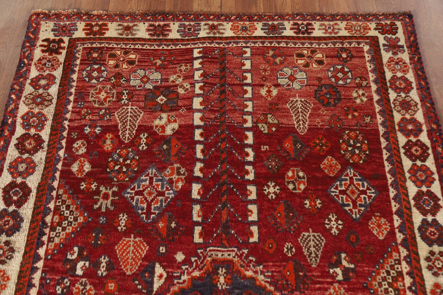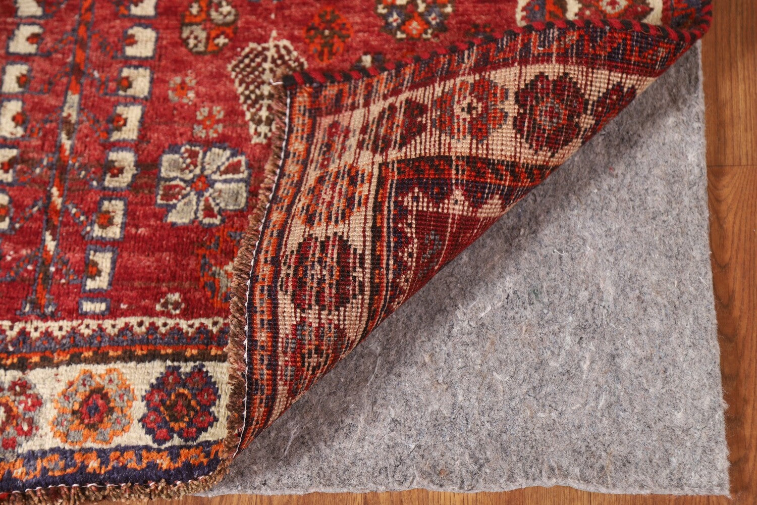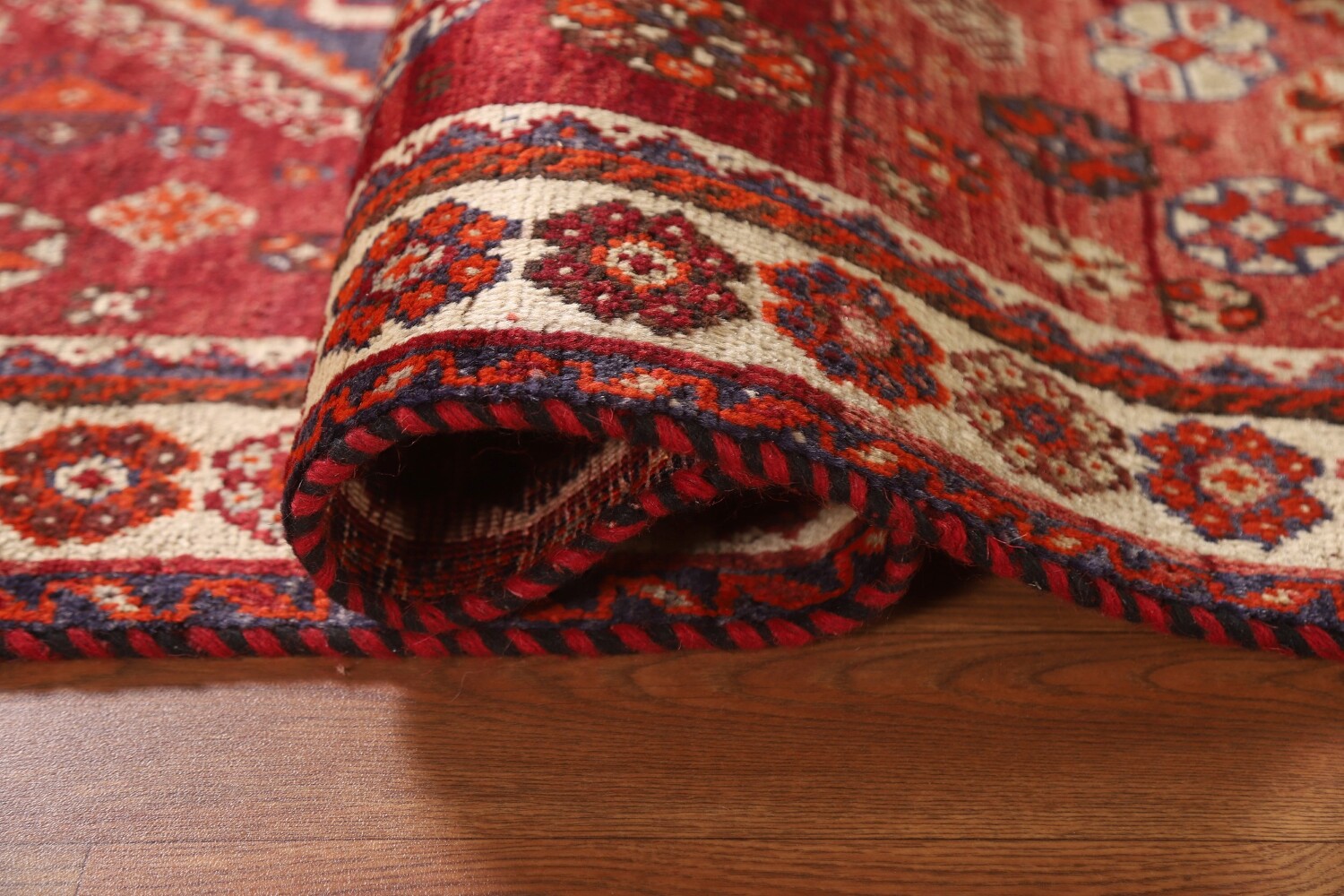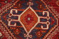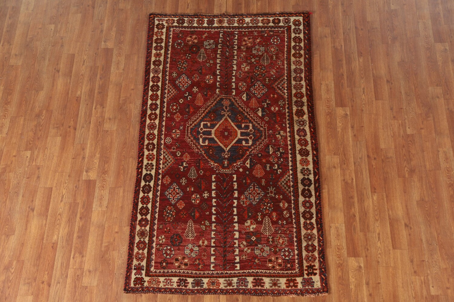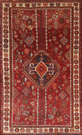 A Beautiful Genuine Persia ( Persia ) Shiraz rug is Hand Knotted by skillful weavers in Persia ( Persia ) with 100% Wool Material. This rug is in Very Good (Abrash-Low Pile) condition. dimensions are 6' 6'' X 3' 7'' in foot and 198 X 109 in centimeter. the primary color is Red.