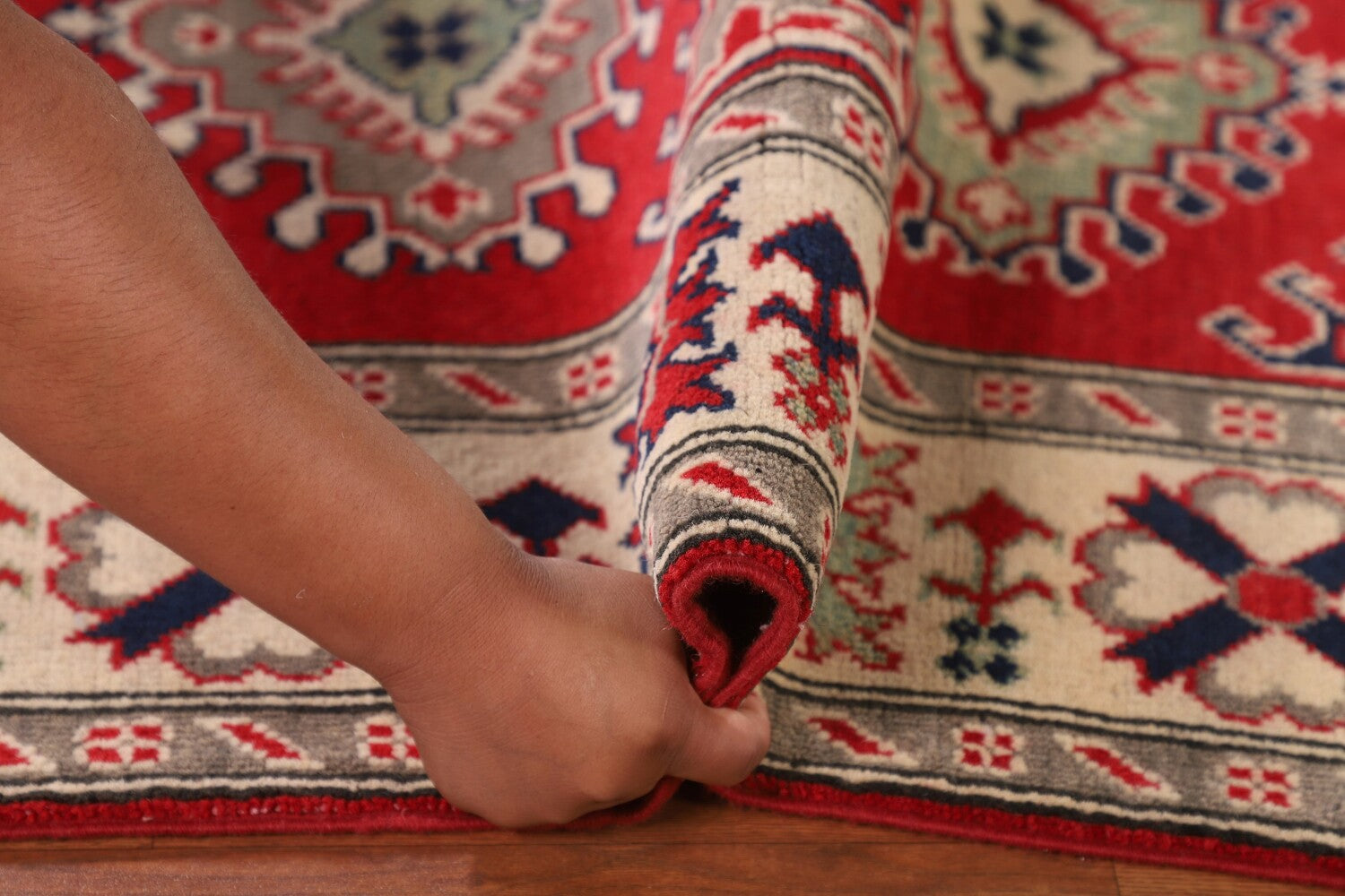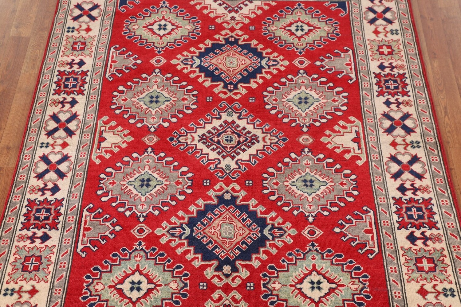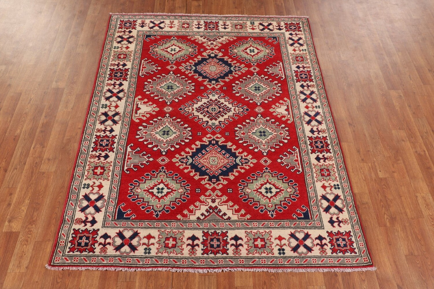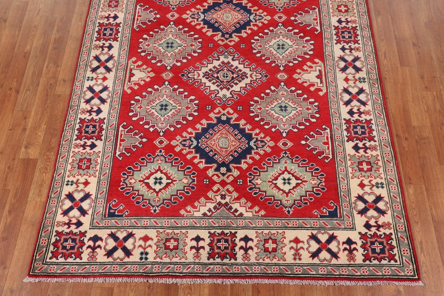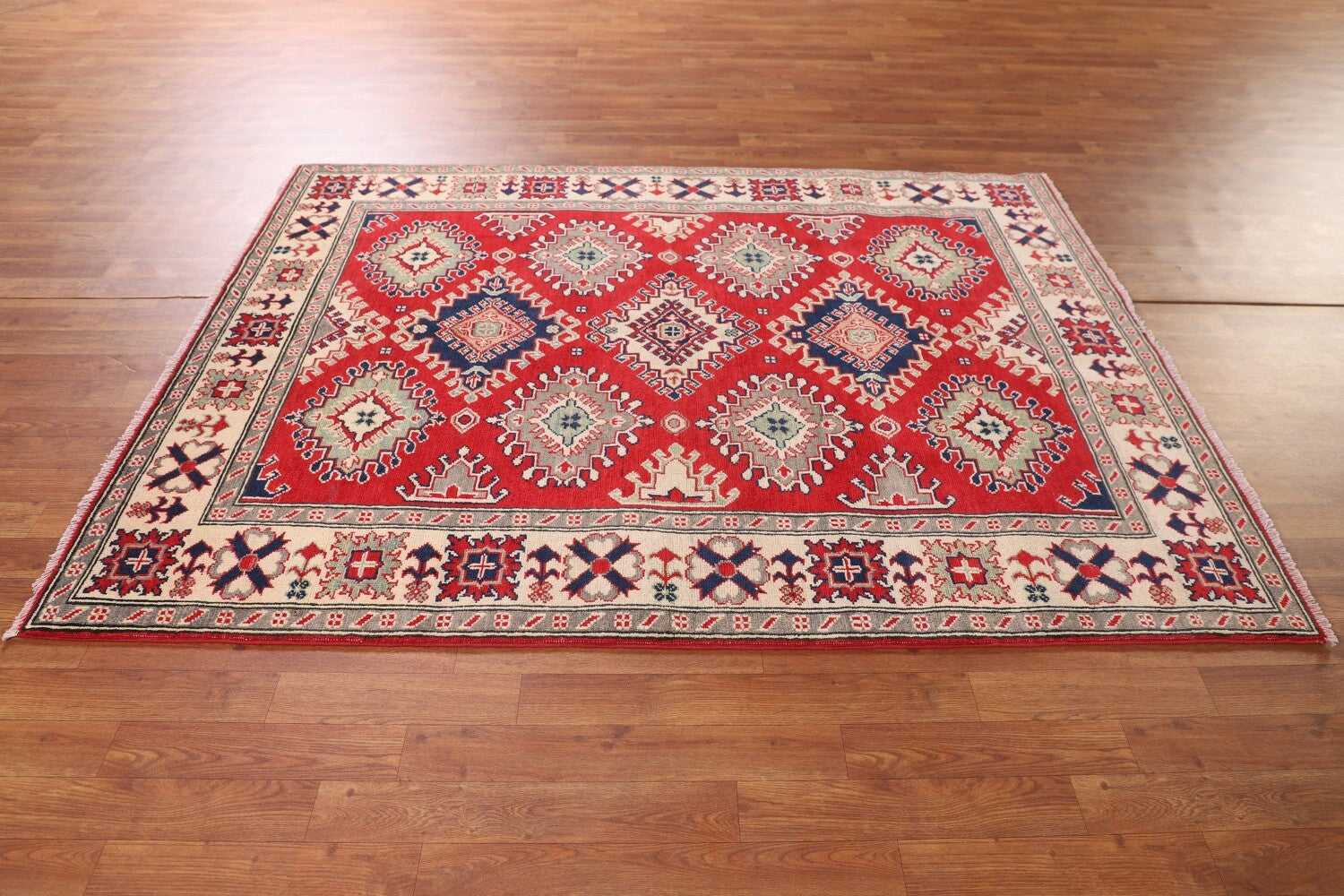 Geometric Red Wool Kazak Oriental Rug 5x7