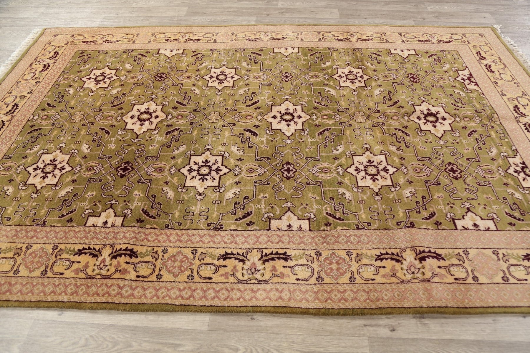 A Beautiful Genuine Persia ( Persia ) Savonnerie rug is Hand Knotted by skillful weavers in Persia ( Persia ) with 100% Wool Material. This rug is in New, First Quality condition. dimensions are 9' 3'' X 6' 0'' in foot and 282 X 183 in centimeter. the primary color is Green.