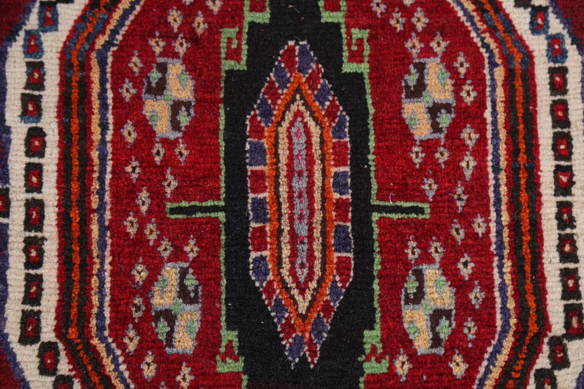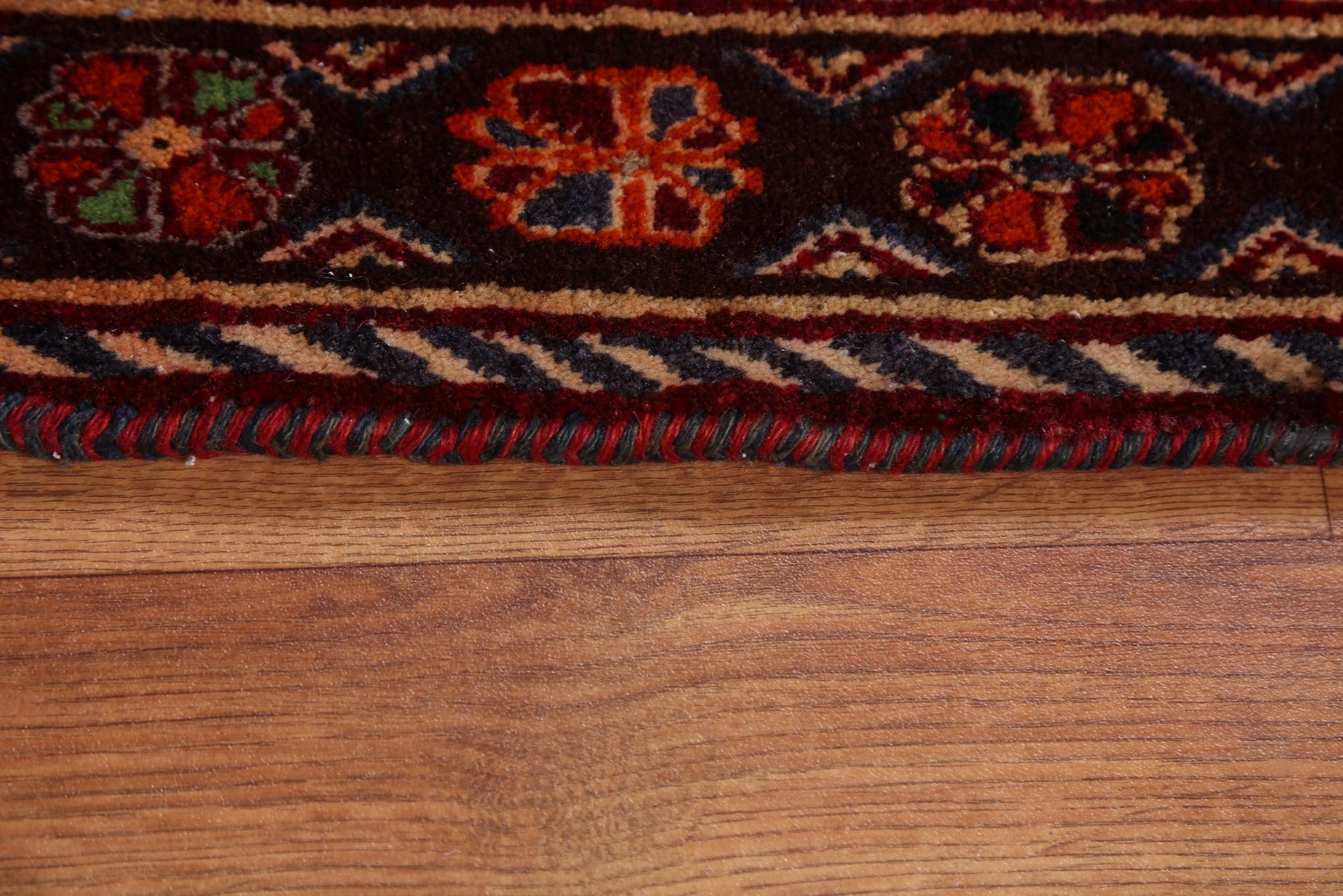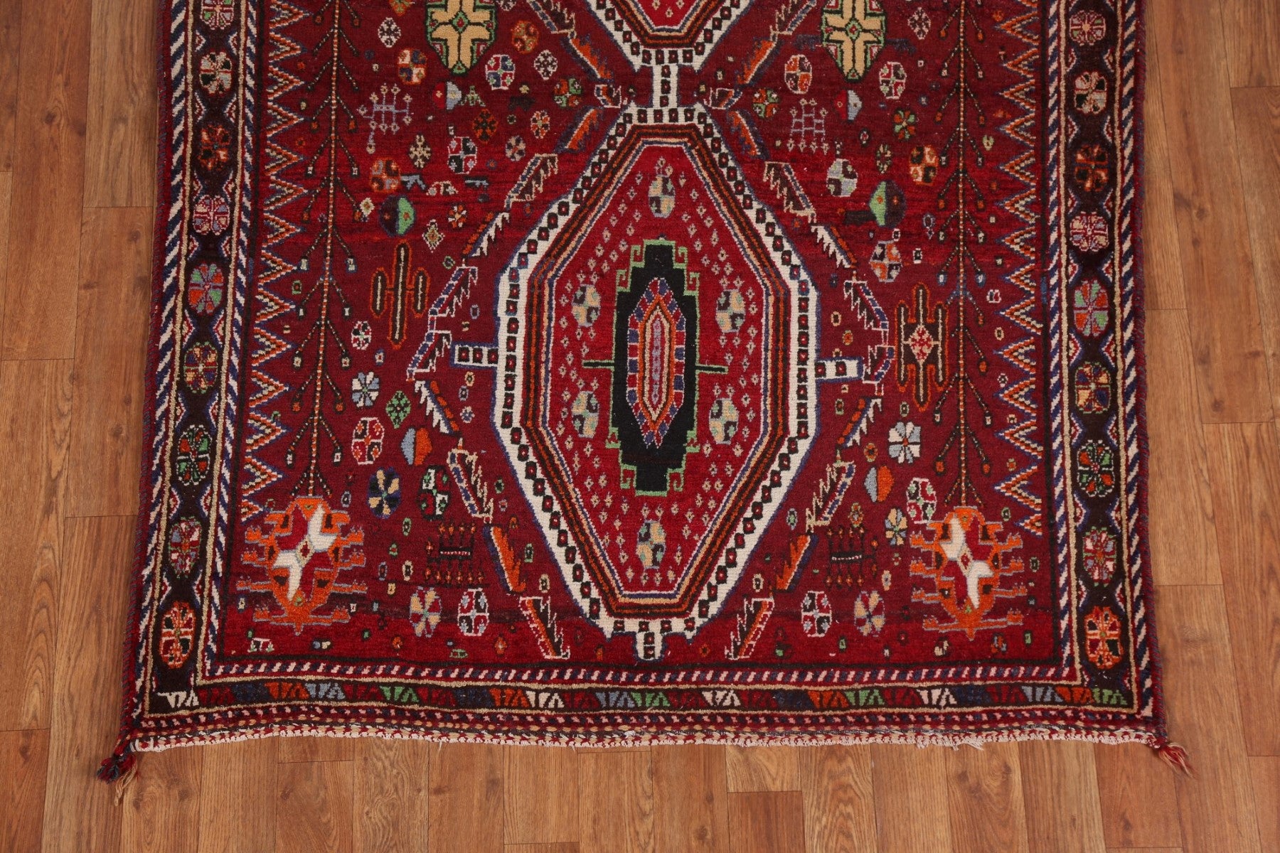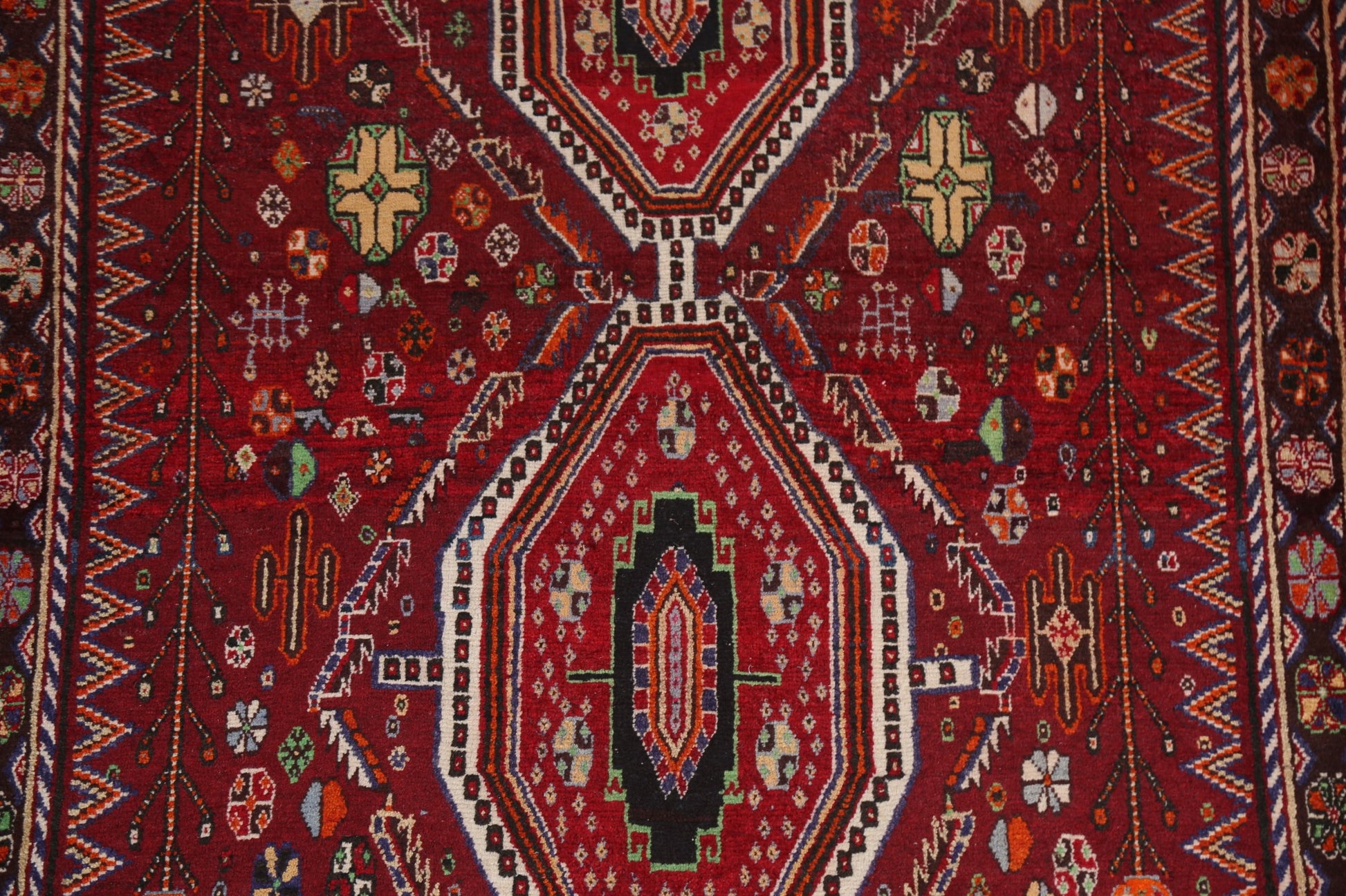 A Beautiful Genuine Persia ( Persia ) Shiraz (Kashkoli) rug is Hand Knotted by skillful weavers in Persia ( Persia ) with 100% Wool Material. This rug is in Very Good (Small Missing Pile) condition. dimensions are 5' 3'' X 4' 0'' in foot and 160 X 122 in centimeter. the primary color is Red.
