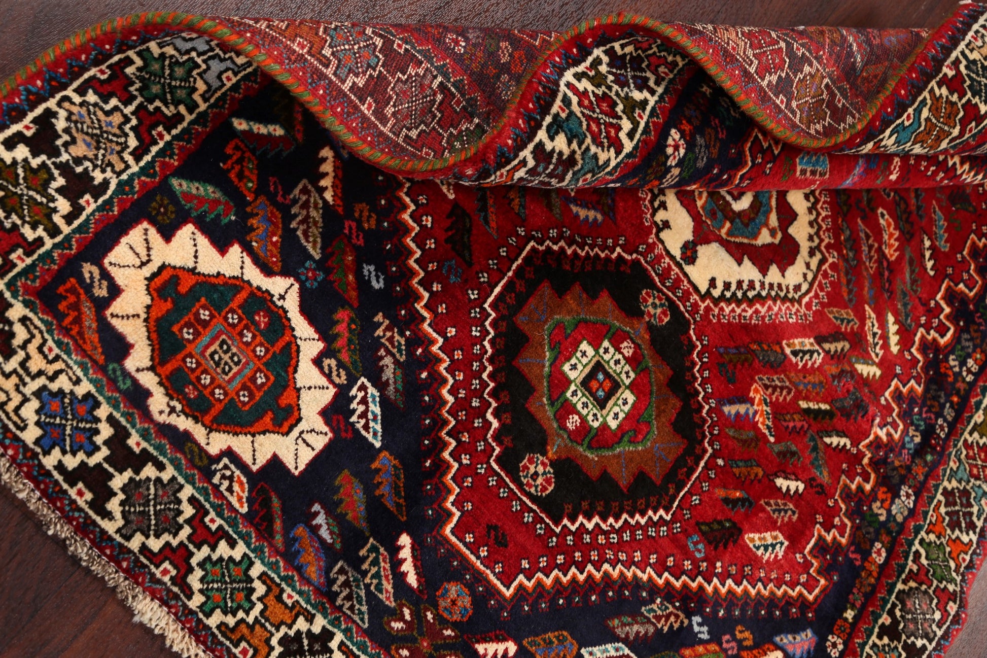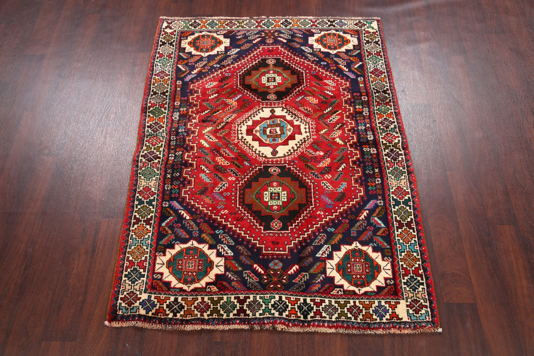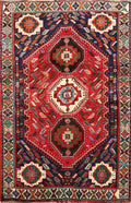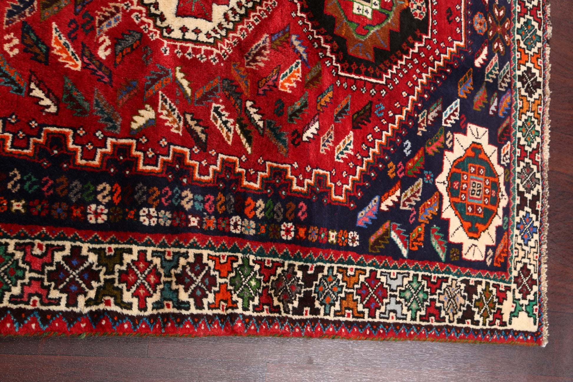 A Beautiful Genuine Persia ( Persia ) Shiraz rug is Hand Knotted by skillful weavers in Persia ( Persia ) with 100% Wool Material. This rug is in New, First Quality condition. dimensions are 5' 8'' X 4' 1'' in foot and 173 X 124 in centimeter. the primary color is Red.