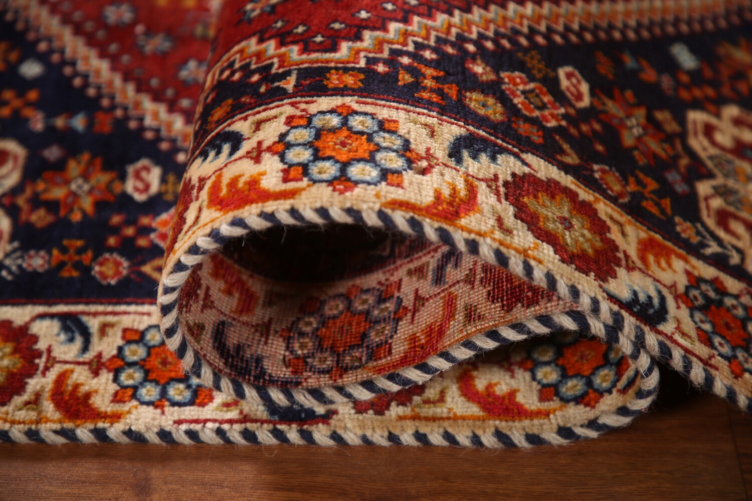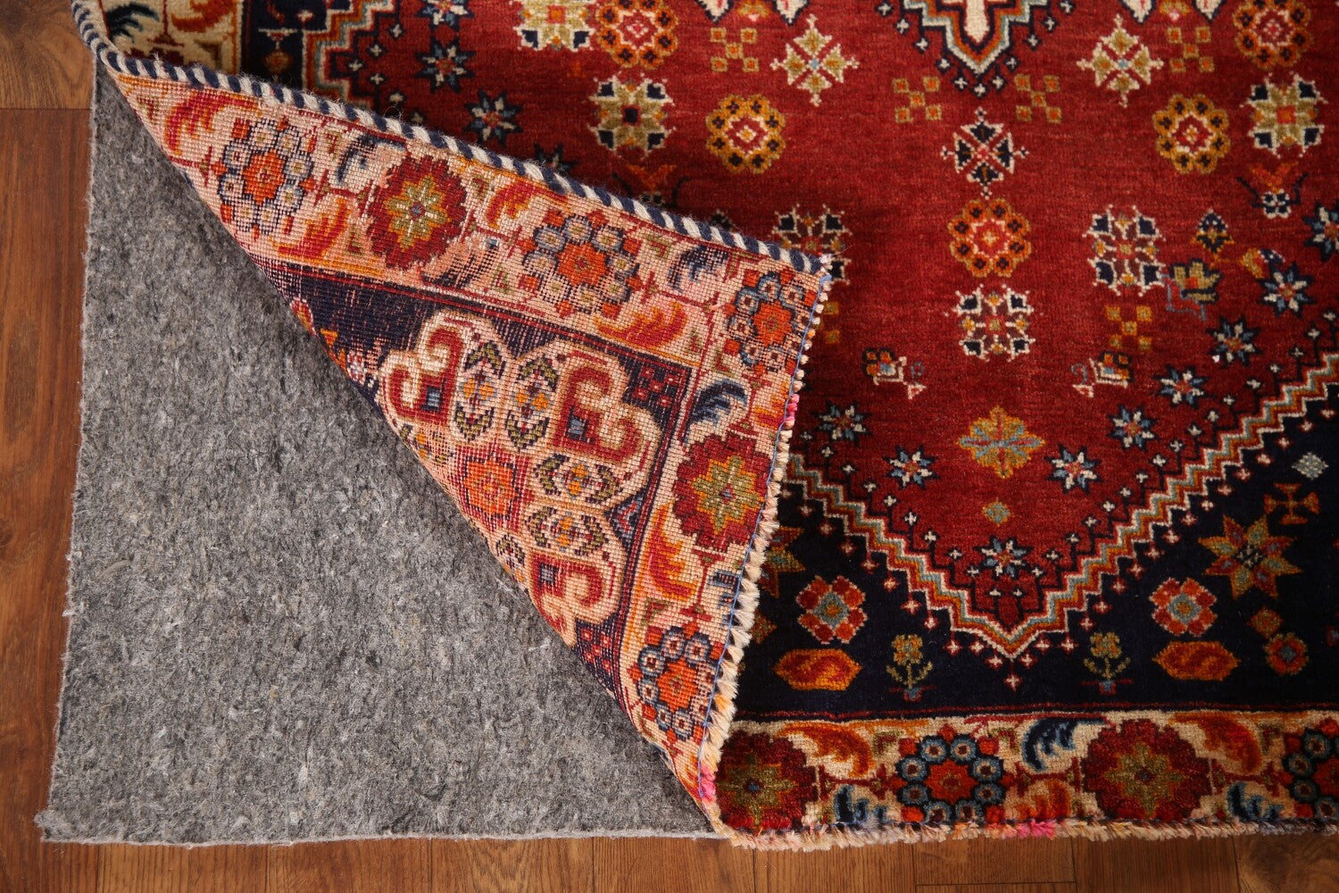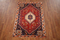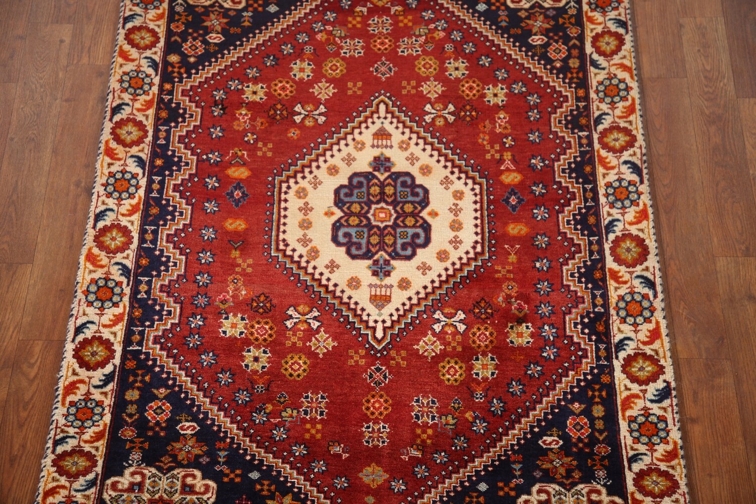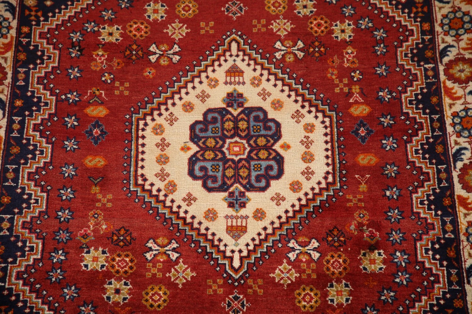 A Beautiful Genuine Persia ( Persia ) Shiraz rug is Hand Knotted by skillful weavers in Persia ( Persia ) with 100% Wool Material. This rug is in Excellent condition. dimensions are 4' 10'' X 3' 2'' in foot and 147 X 97 in centimeter. the primary color is Red.
