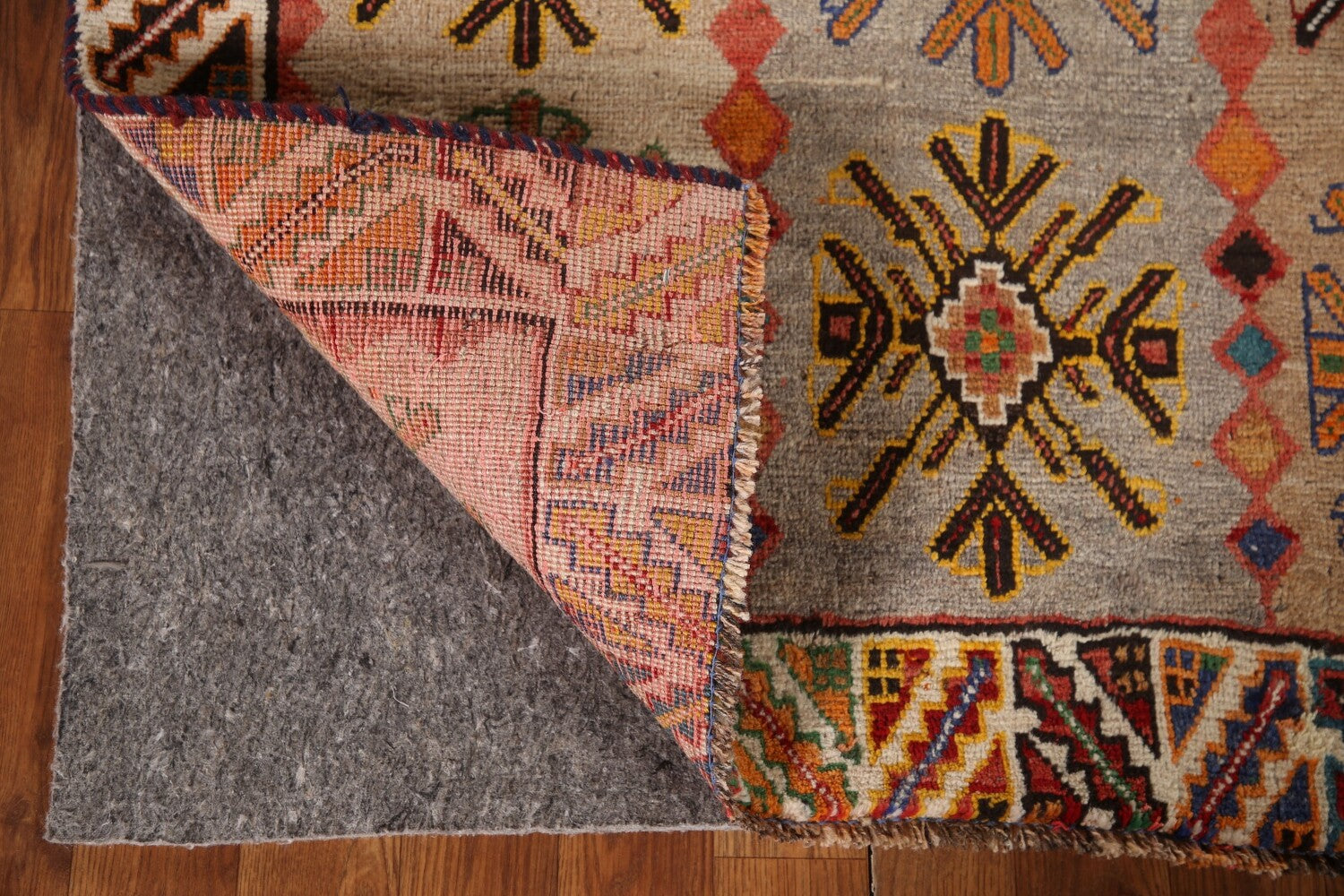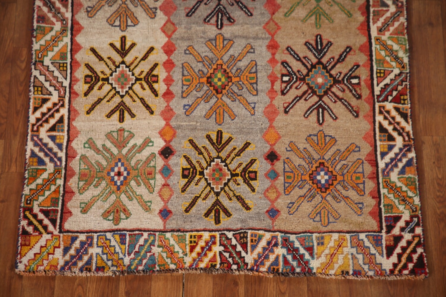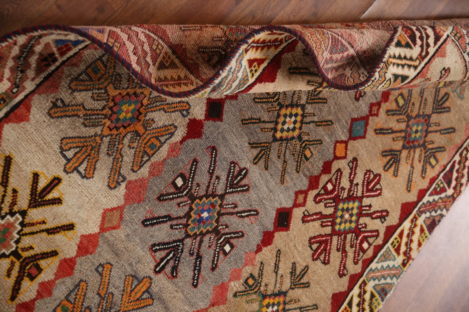 A Beautiful Genuine Persia ( Persia ) Shiraz rug is Hand Knotted by skillful weavers in Persia ( Persia ) with 100% Wool Material. This rug is in Very Good condition. dimensions are 7' 0'' X 3' 8'' in foot and 213 X 112 in centimeter. the primary color is Beige & Ivories.