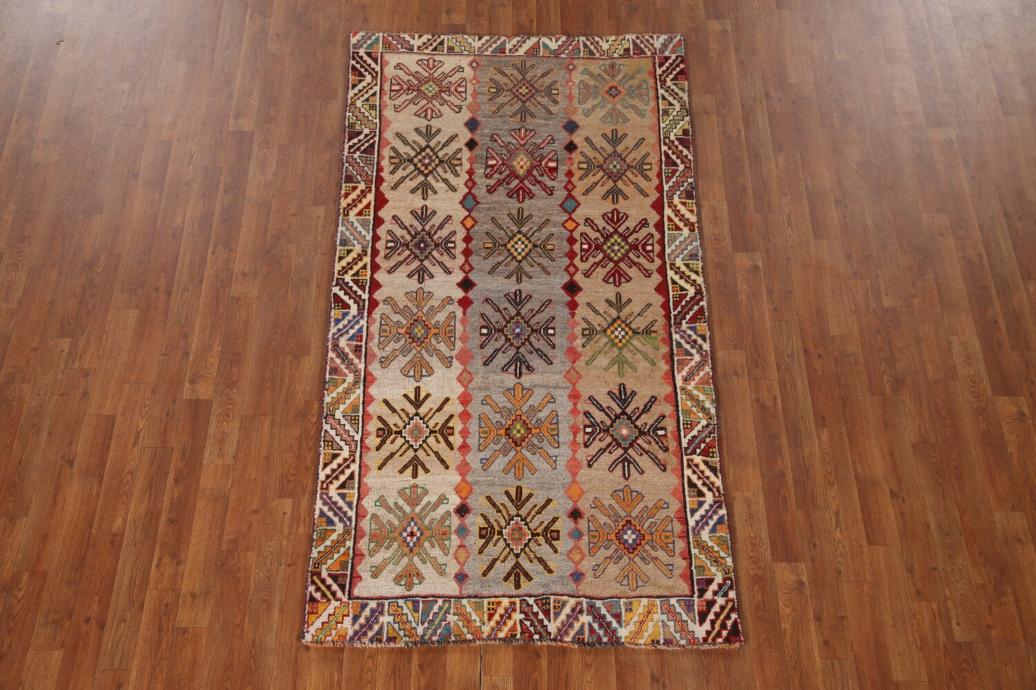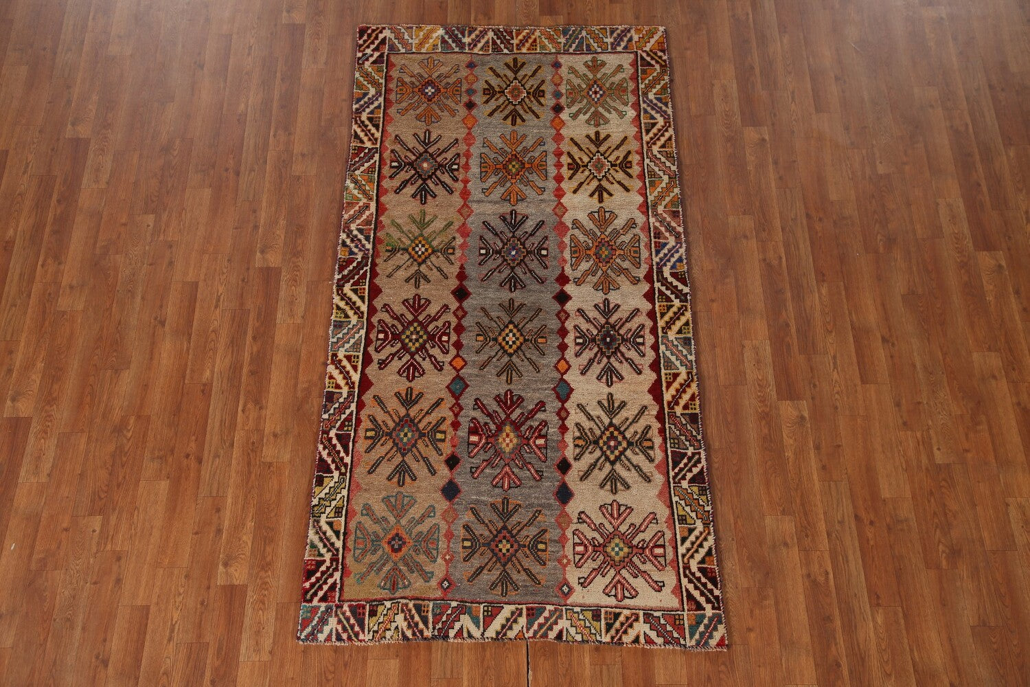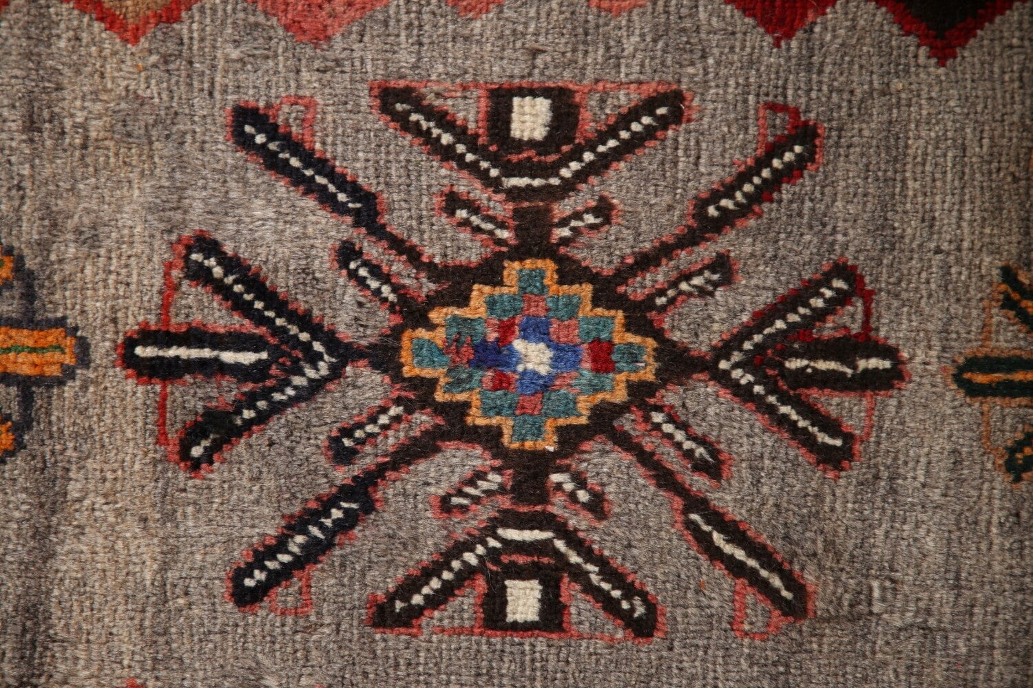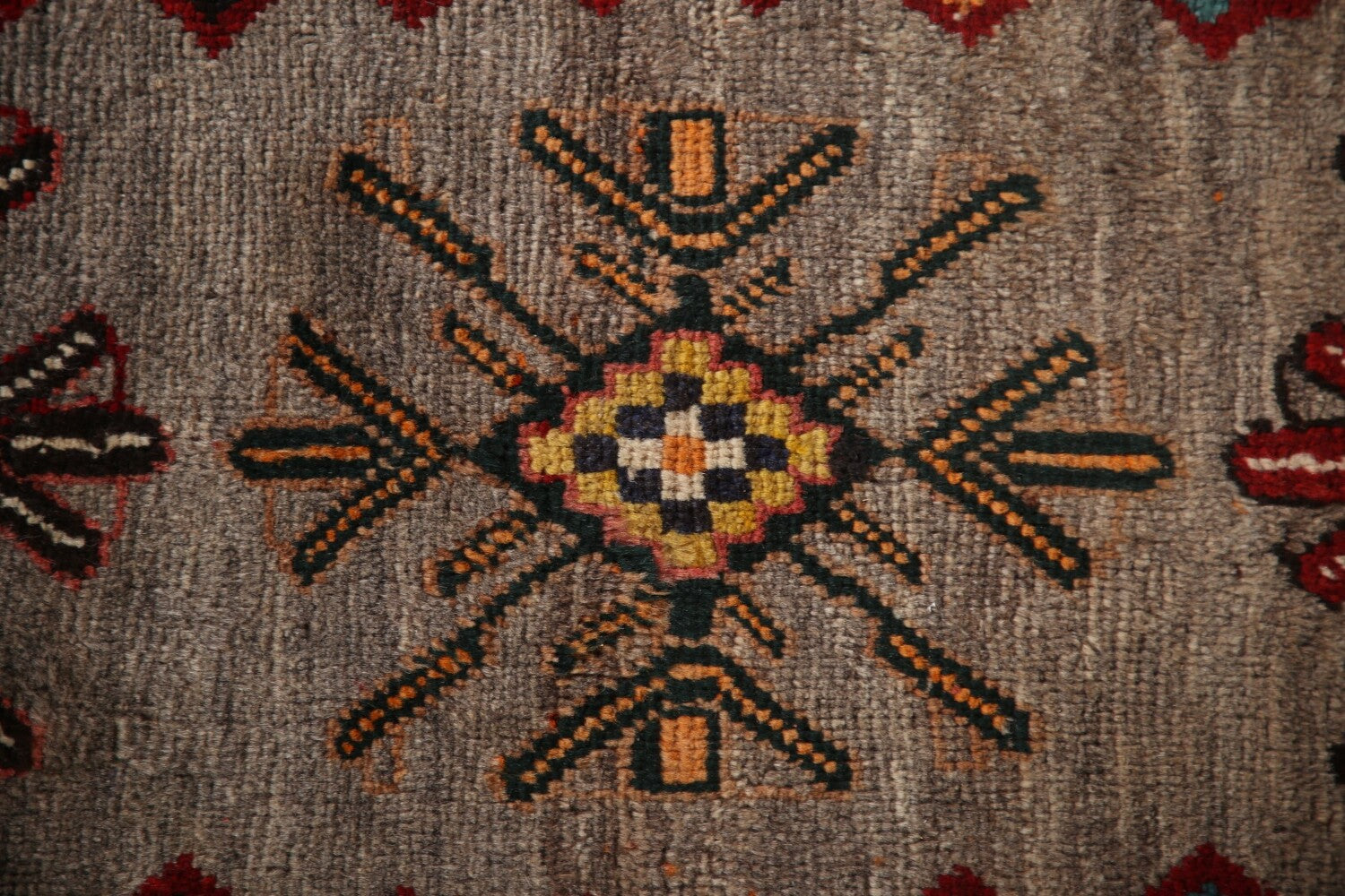 A Beautiful Genuine Persia ( Persia ) Shiraz rug is Hand Knotted by skillful weavers in Persia ( Persia ) with 100% Wool Material. This rug is in Very Good condition. dimensions are 7' 0'' X 3' 8'' in foot and 213 X 112 in centimeter. the primary color is Beige & Ivories.