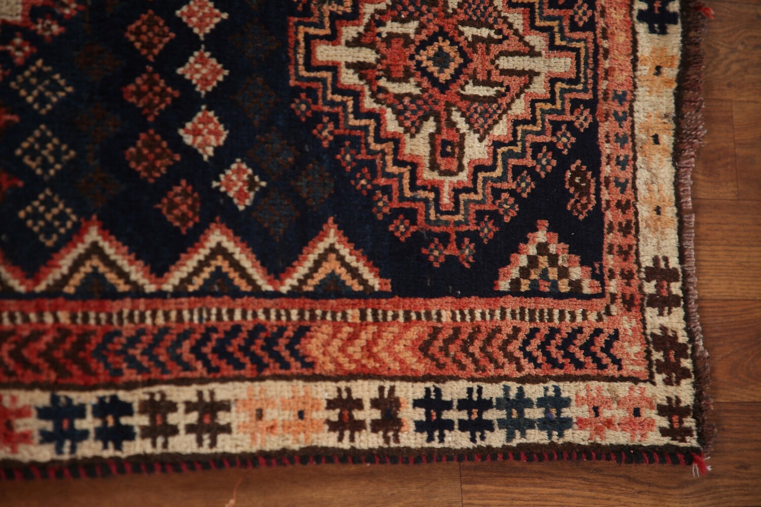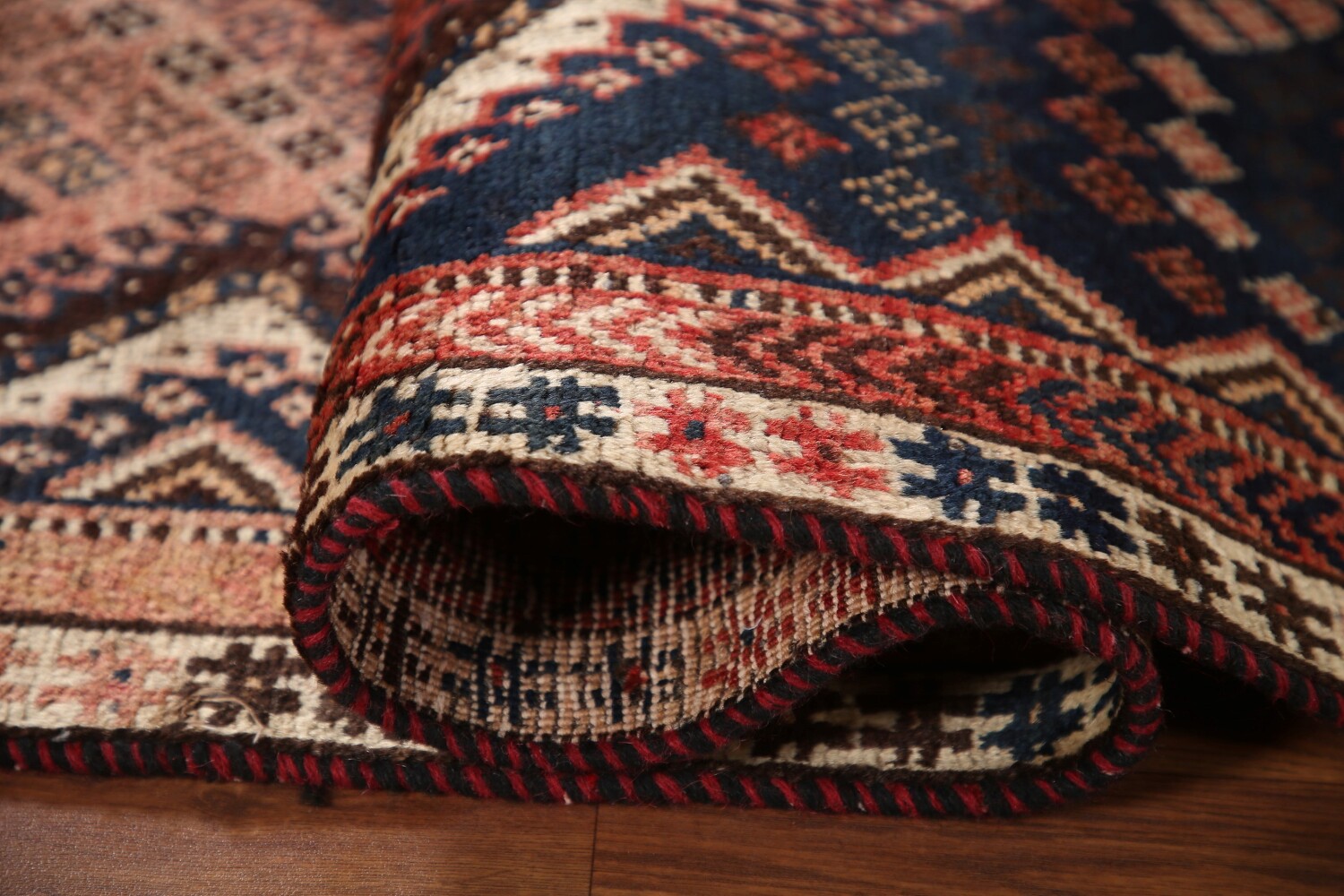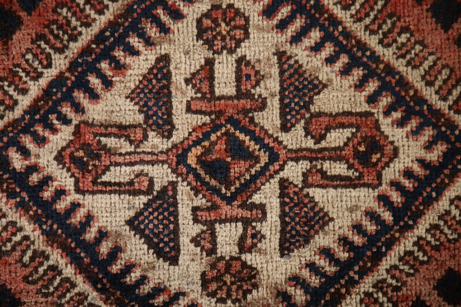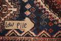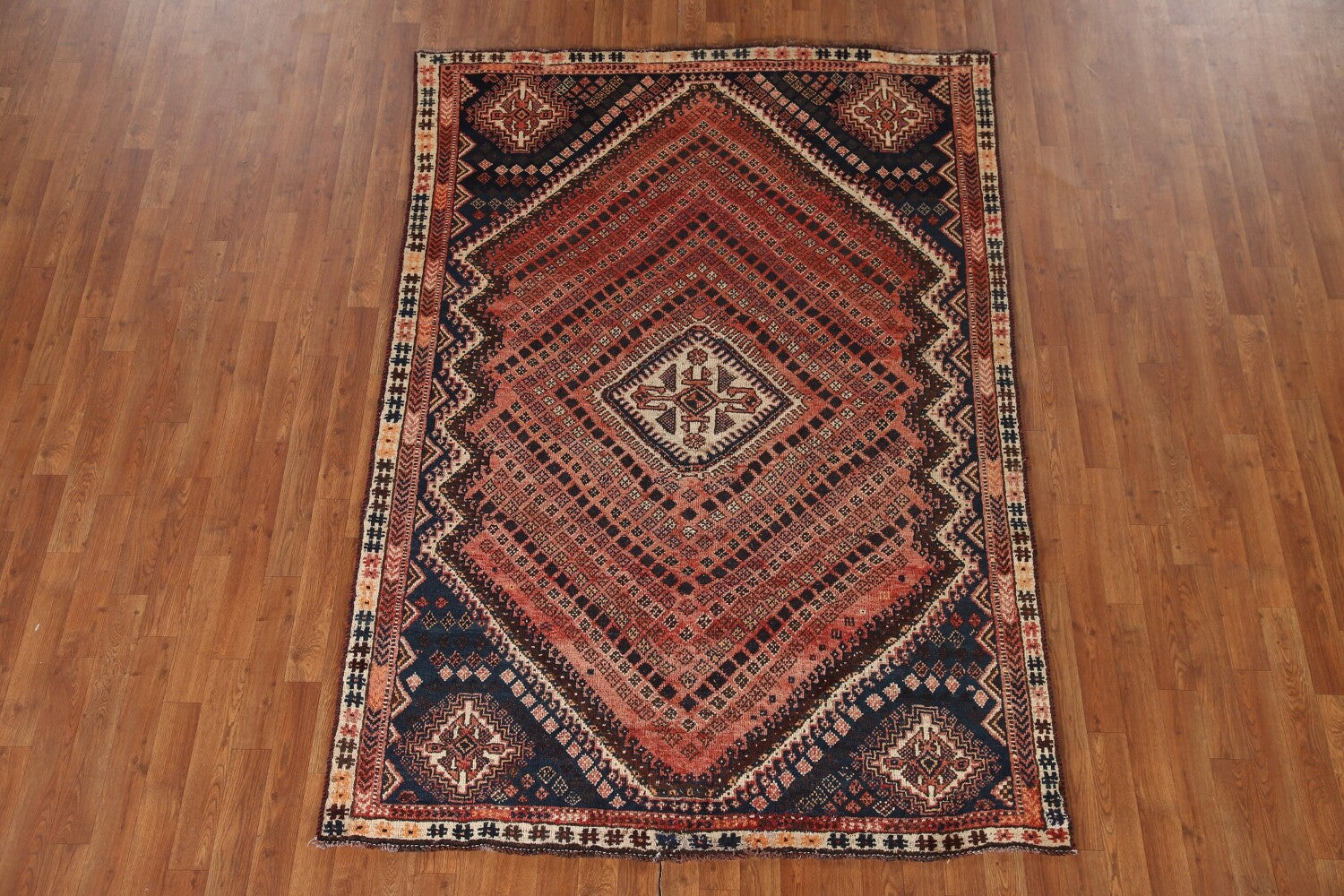 A Beautiful Genuine Persia ( Persia ) Shiraz rug is Hand Knotted by skillful weavers in Persia ( Persia ) with 100% Wool Material. This rug is in Very Good ( Low Pile ) condition. dimensions are 7' 5'' X 5' 2'' in foot and 226 X 157 in centimeter. the primary color is Red.