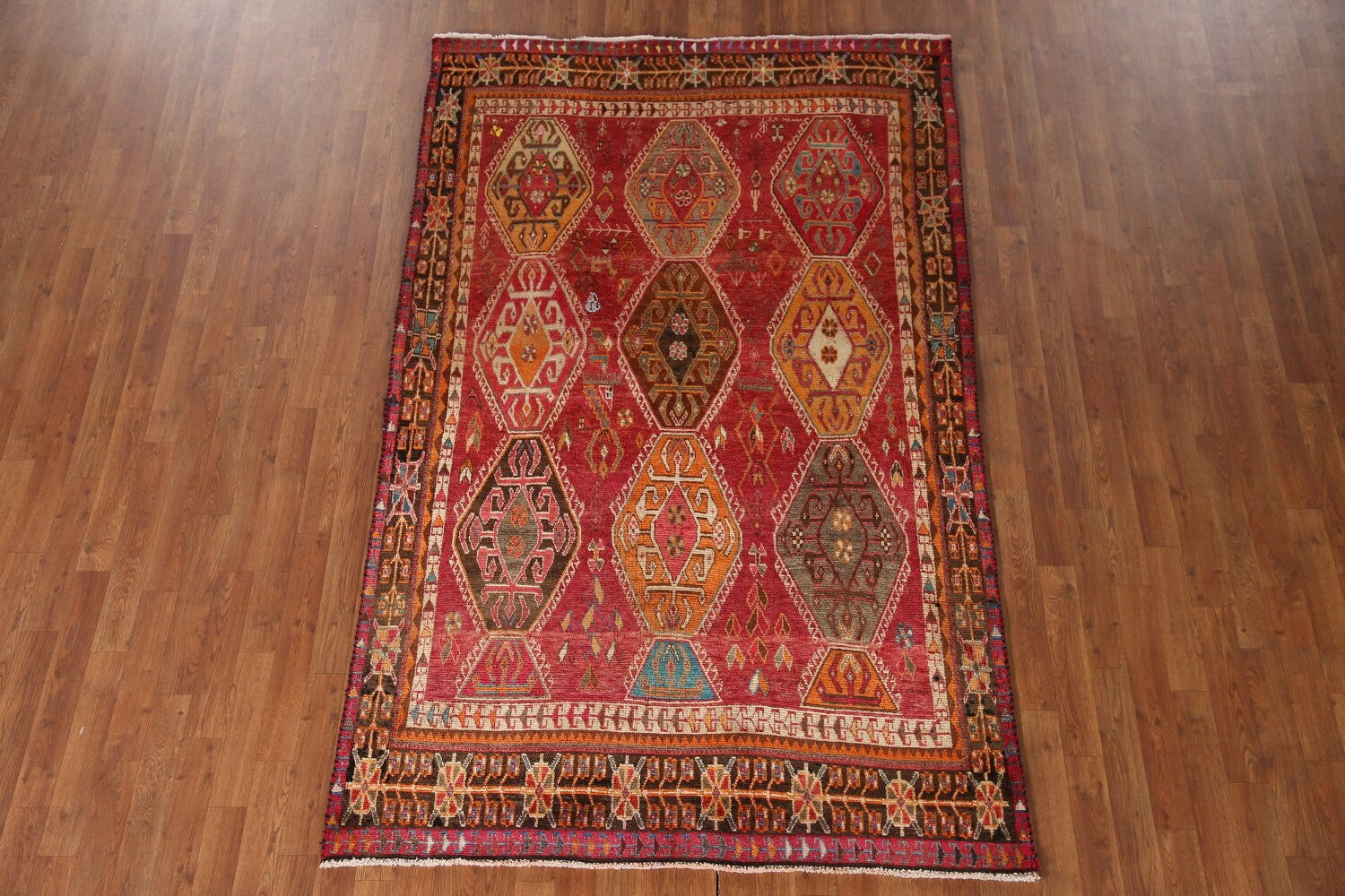 A Beautiful Genuine Persia ( Persia ) Sirjan rug is Hand Knotted by skillful weavers in Persia ( Persia ) with 100% Wool Material. This rug is in Very Good (Low Pile-Worn) condition. dimensions are 7' 10'' X 4' 11'' in foot and 239 X 150 in centimeter. the primary color is Pink.