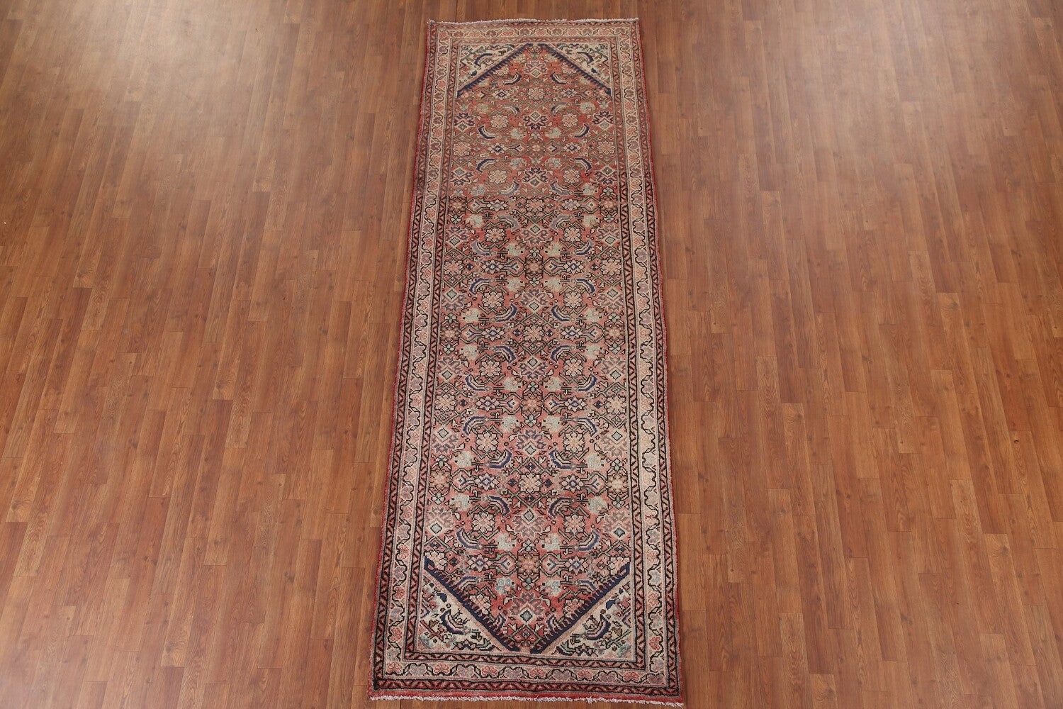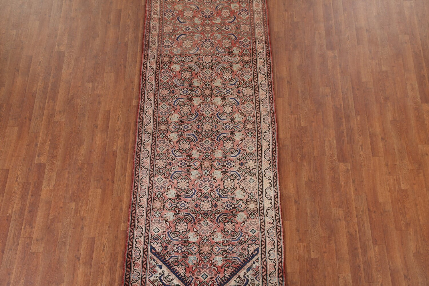 A Beautiful Genuine Persia ( Persia ) Sultanabad rug is Hand Knotted by skillful weavers in Persia ( Persia ) with 100% Wool Material. This rug is in Very Good (Abrash) condition. dimensions are 10' 2'' X 3' 6'' in foot and 310 X 107 in centimeter. the primary color is Pink.