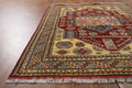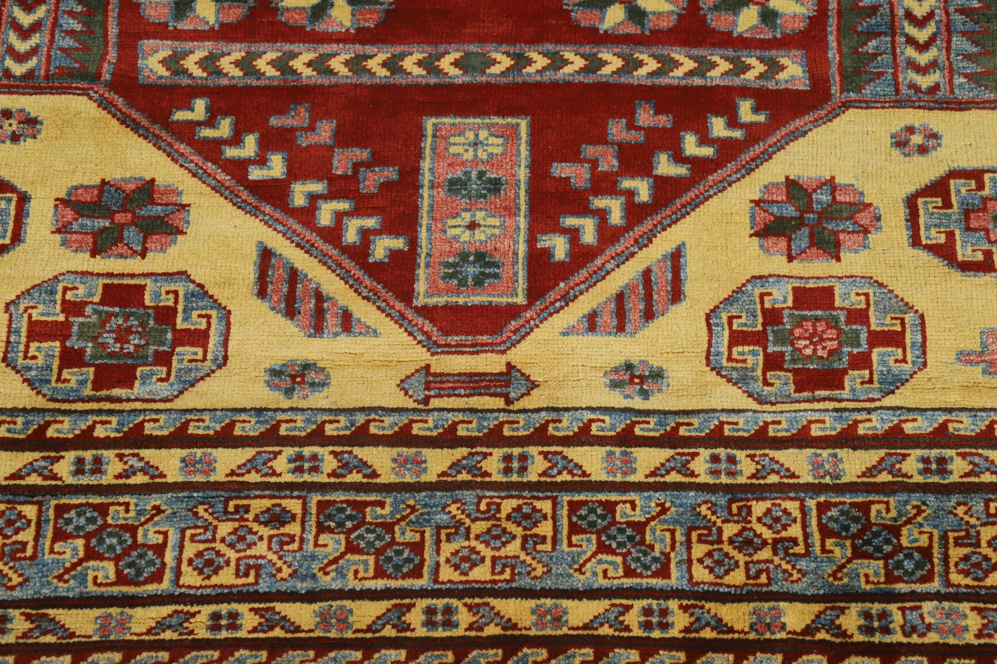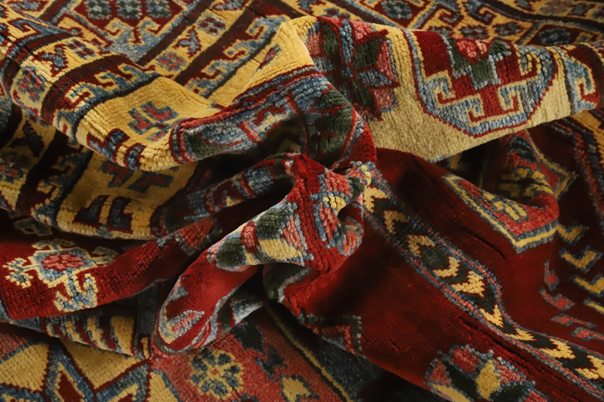 A Beautiful Genuine Pakistan Super Kazak rug is Hand Knotted by skillful weavers in Pakistan with 100% Wool Material. This rug is in New, First Quality condition. dimensions are 6' 7'' X 4' 11'' in foot and 201 X 150 in centimeter. the primary color is Red.