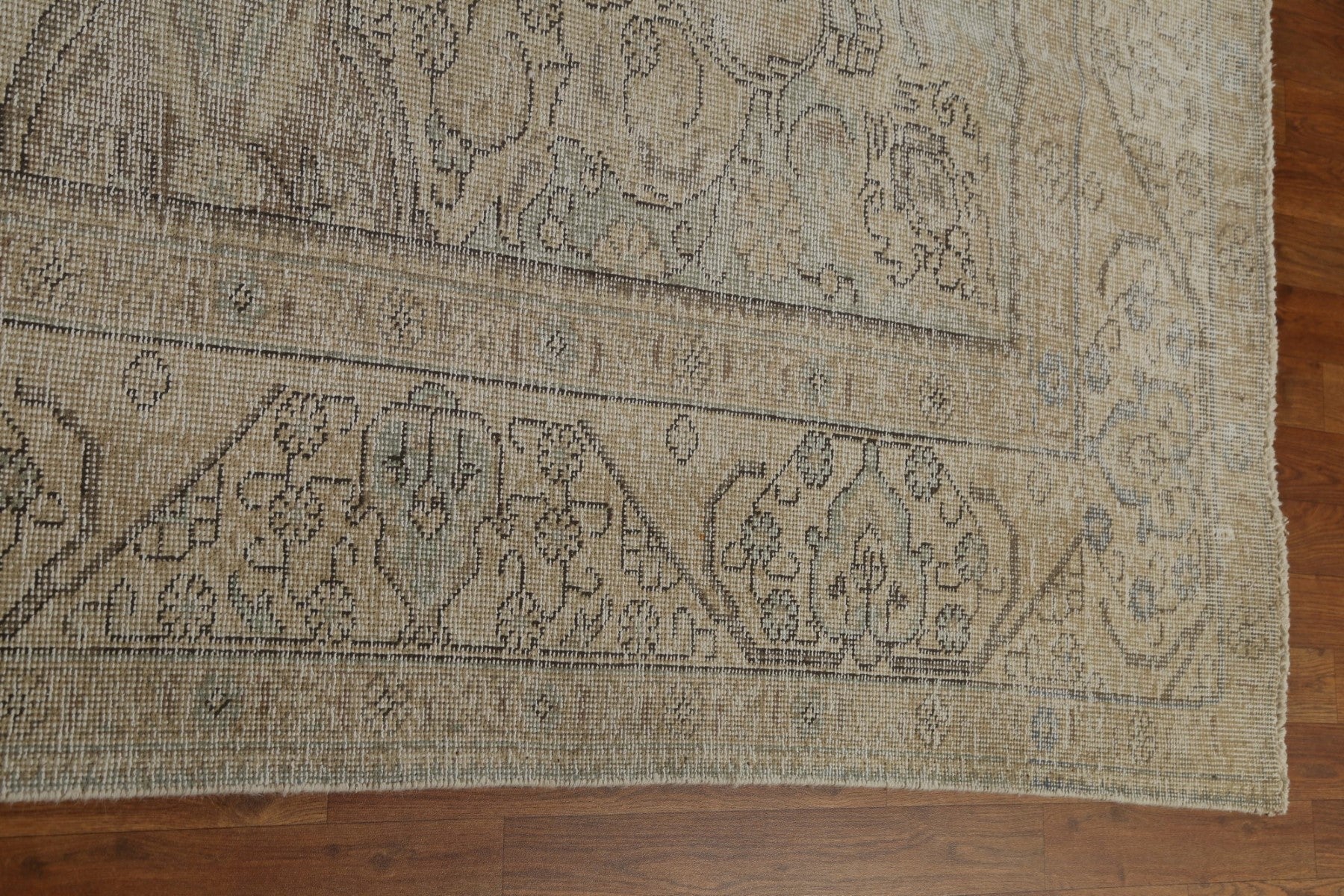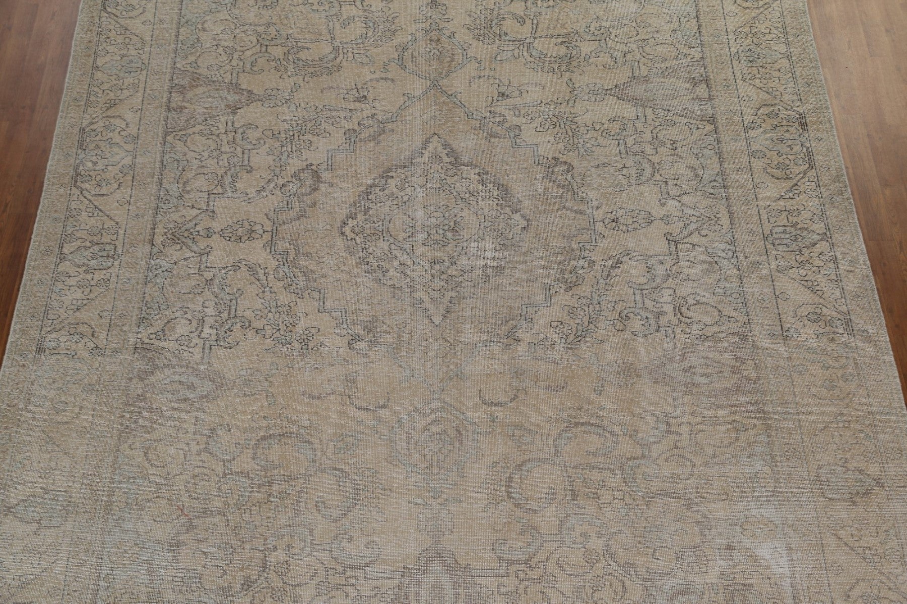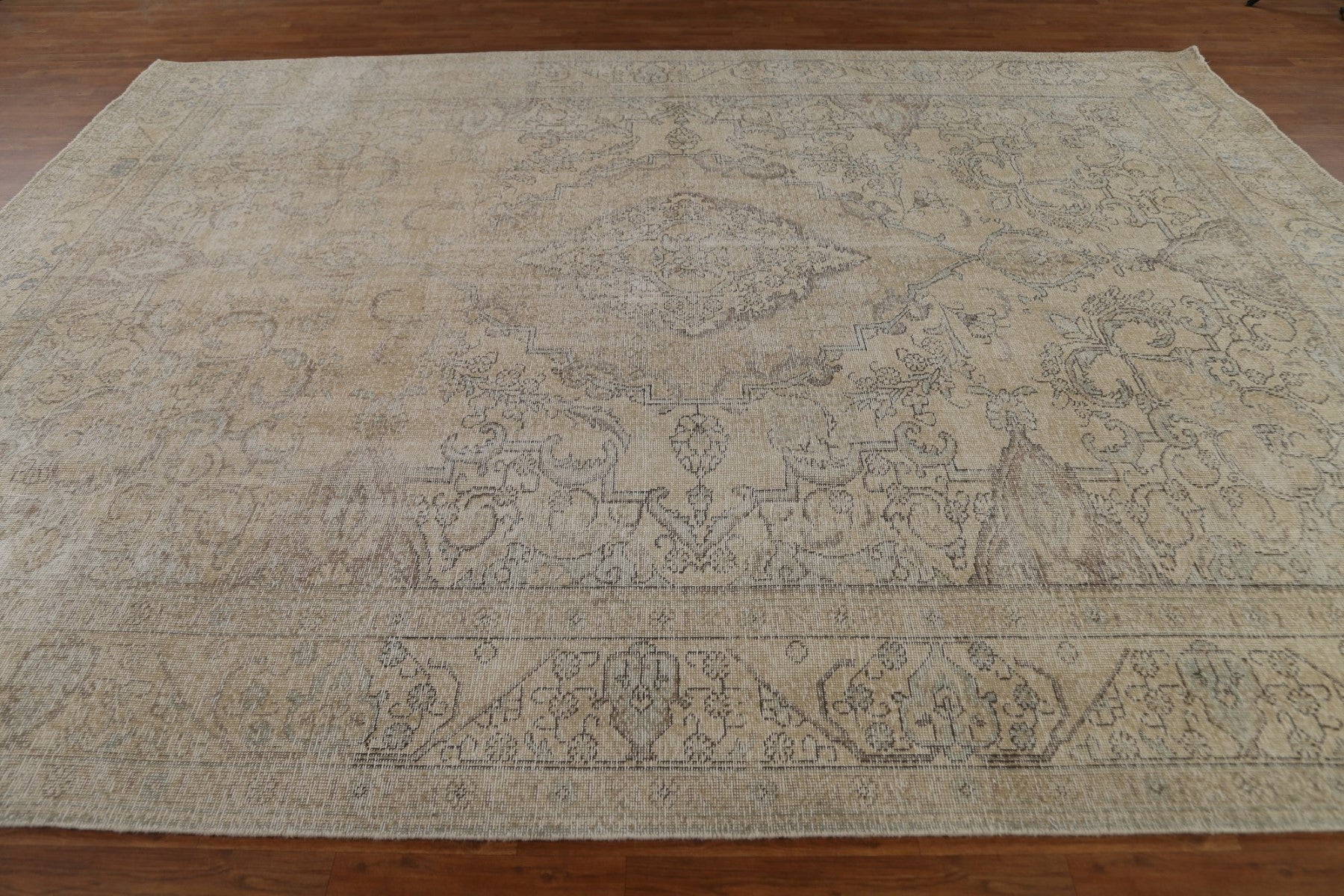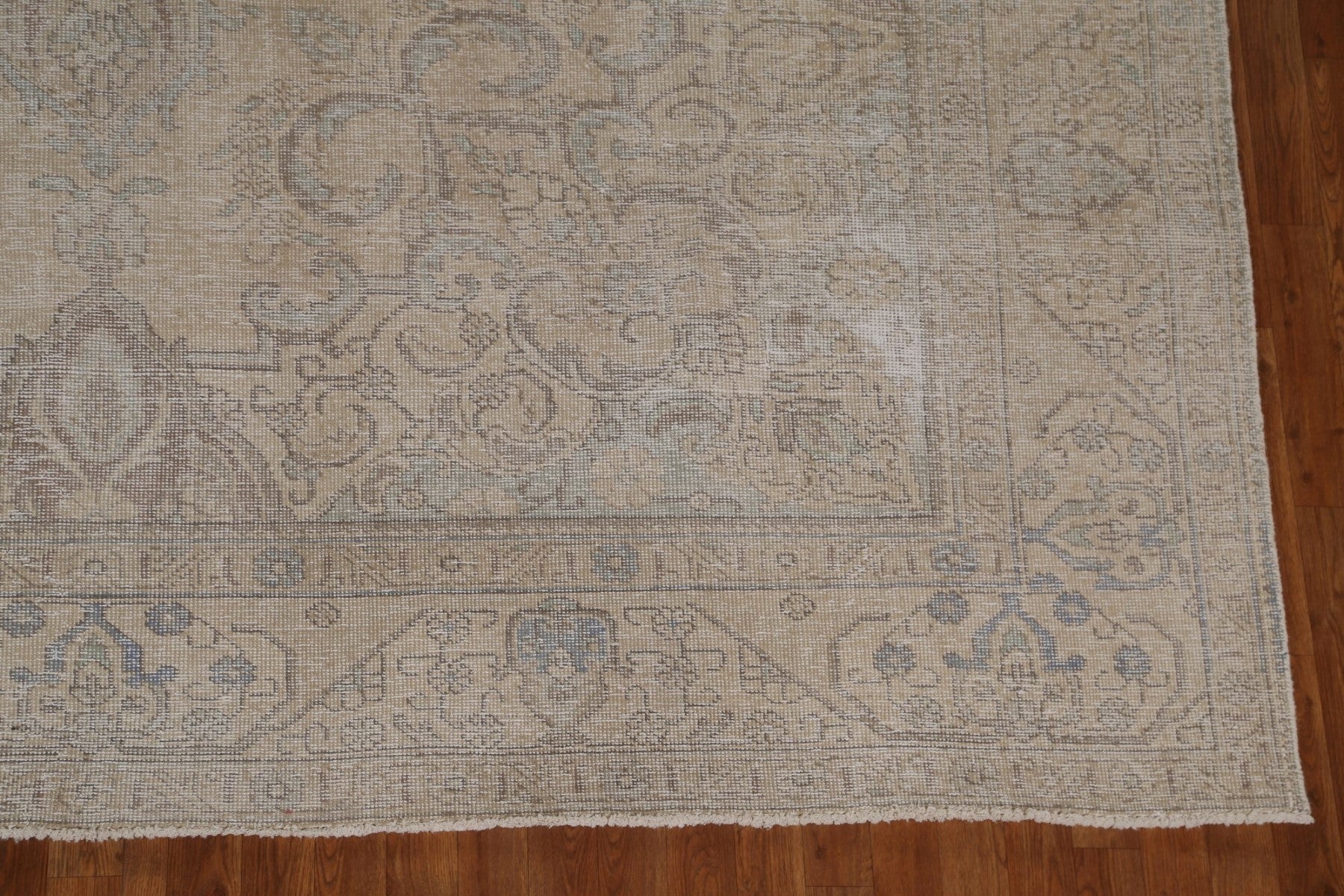 A Beautiful Genuine Persia ( Persia ) Tabriz rug is Hand Knotted by skillful weavers in Persia ( Persia ) with 100% Wool Material. This rug is in Very Good (Evenly Low Pile) condition. dimensions are 12' 5'' X 9' 6'' in foot and 378 X 290 in centimeter. the primary color is Beige & Ivories.