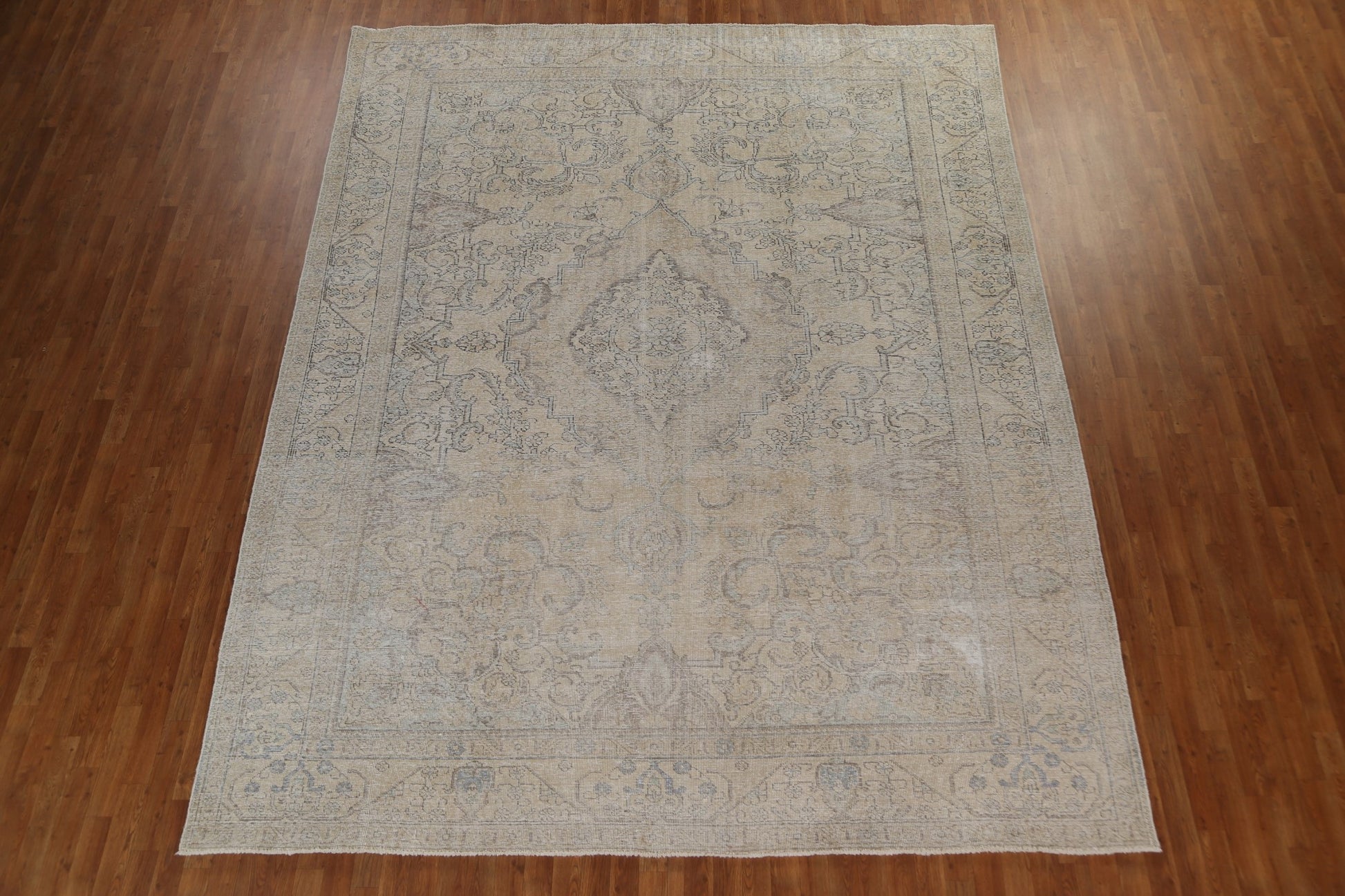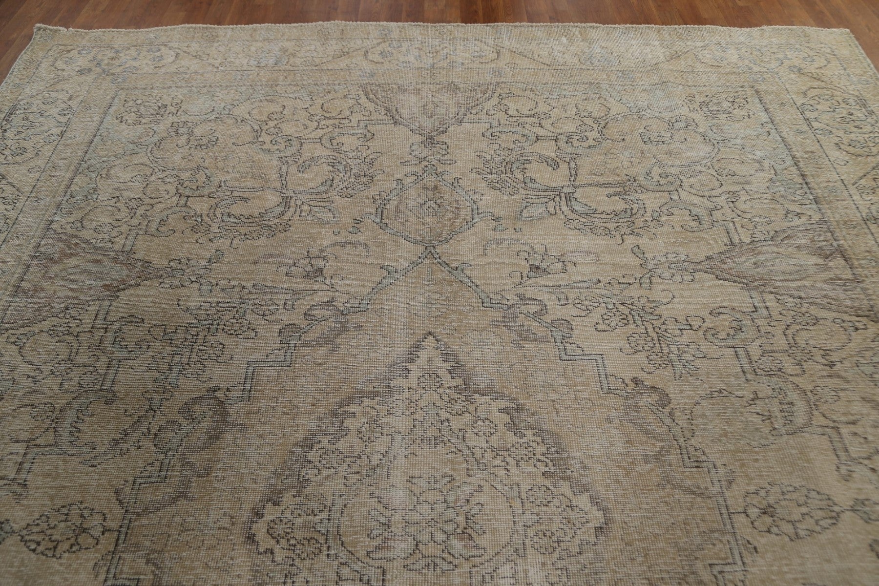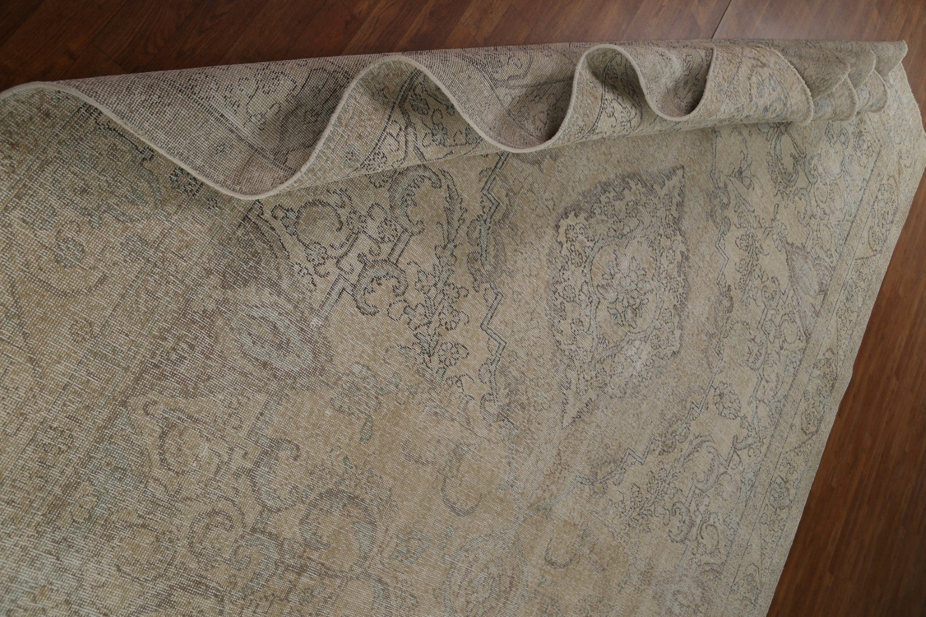 A Beautiful Genuine Persia ( Persia ) Tabriz rug is Hand Knotted by skillful weavers in Persia ( Persia ) with 100% Wool Material. This rug is in Very Good (Evenly Low Pile) condition. dimensions are 12' 5'' X 9' 6'' in foot and 378 X 290 in centimeter. the primary color is Beige & Ivories.