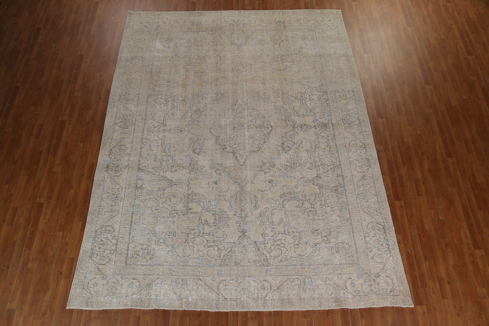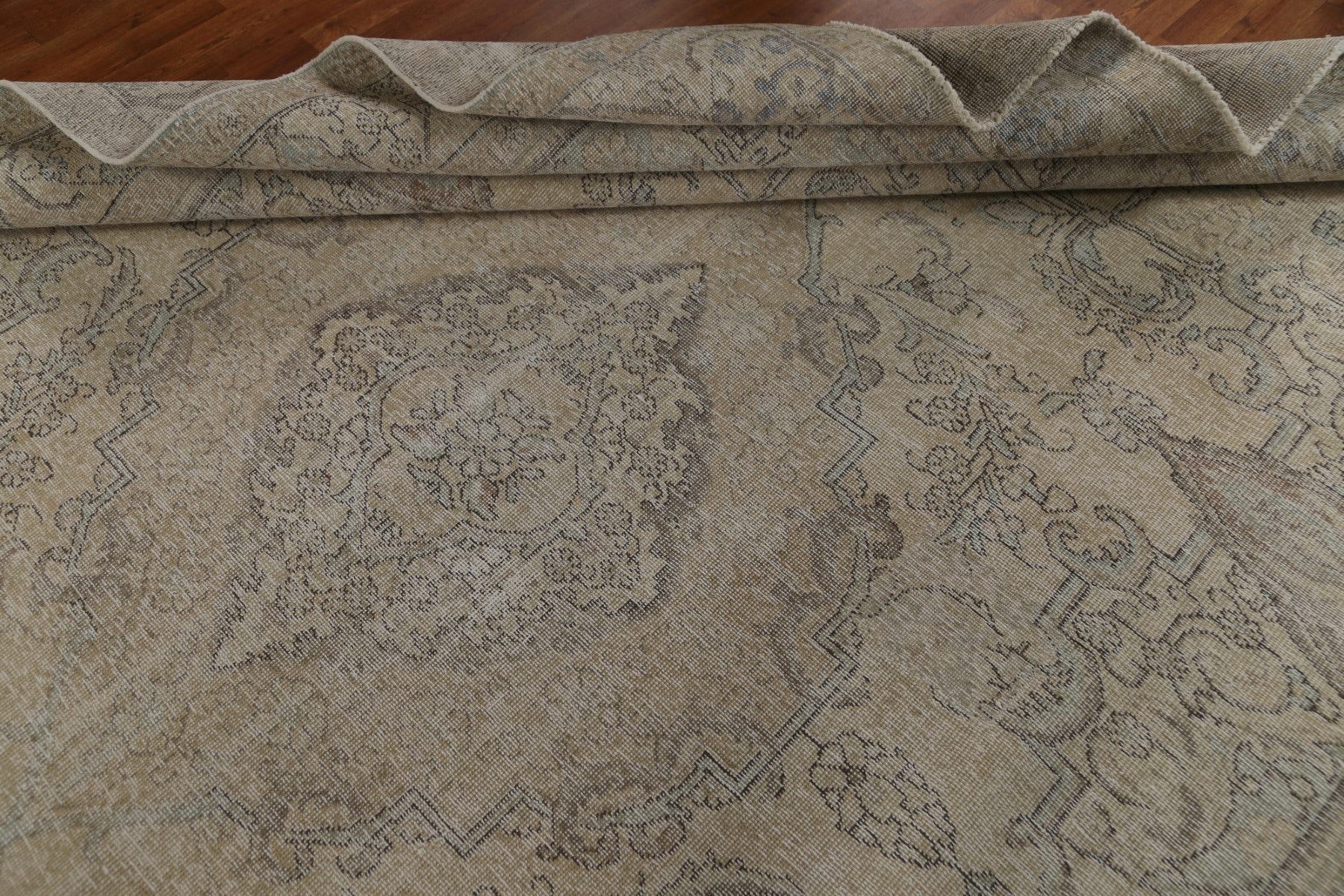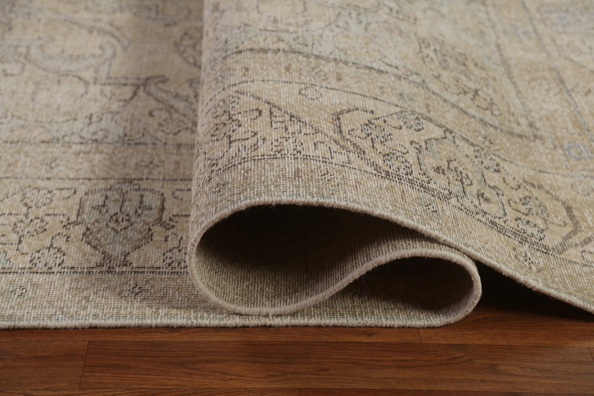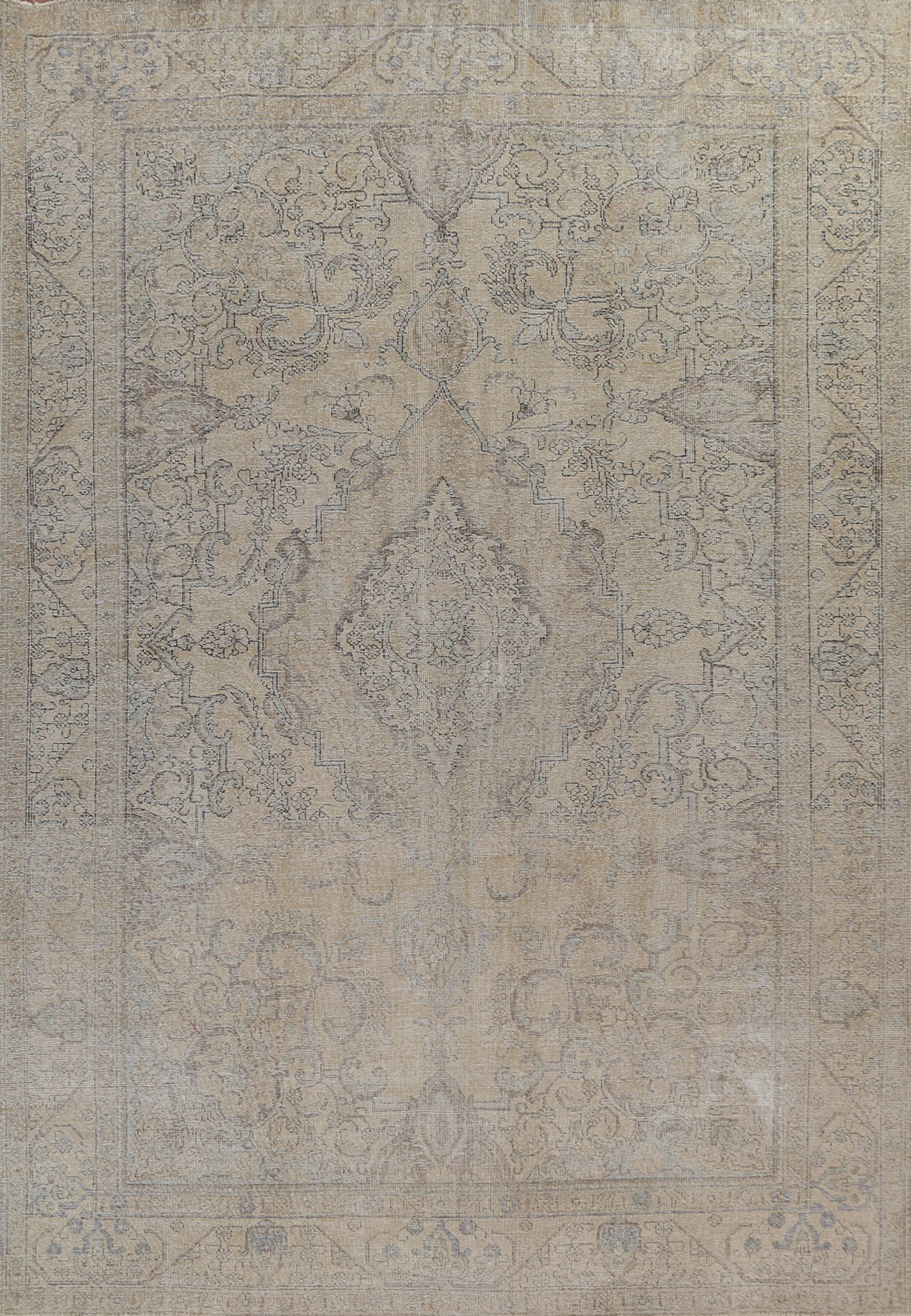 A Beautiful Genuine Persia ( Persia ) Tabriz rug is Hand Knotted by skillful weavers in Persia ( Persia ) with 100% Wool Material. This rug is in Very Good (Evenly Low Pile) condition. dimensions are 12' 5'' X 9' 6'' in foot and 378 X 290 in centimeter. the primary color is Beige & Ivories.
