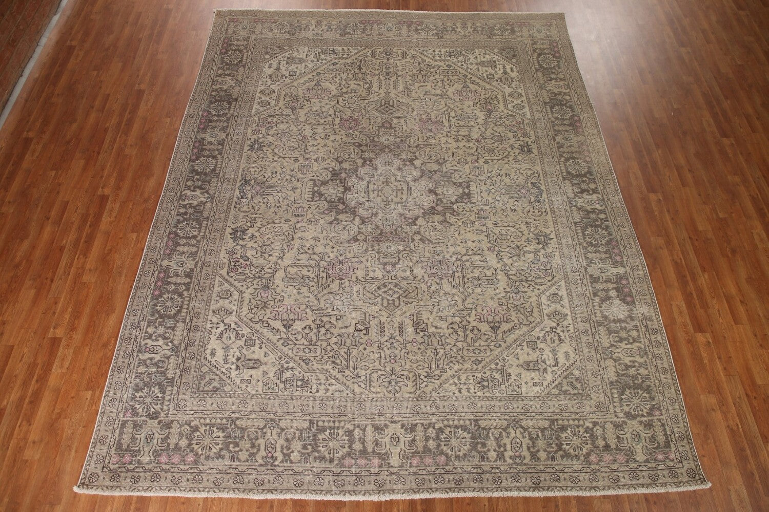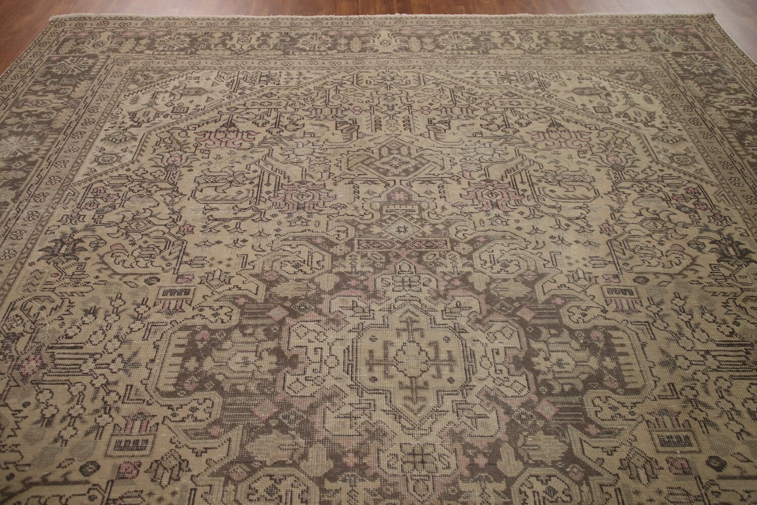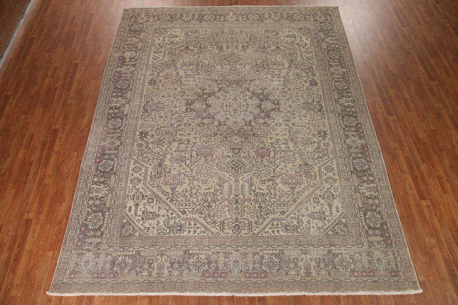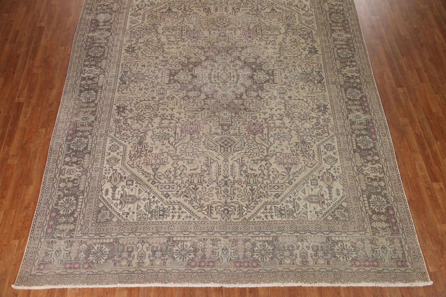 A Beautiful Genuine Persia ( Persia ) Tabriz rug is Hand Knotted by skillful weavers in Persia ( Persia ) with 100% Wool Material. This rug is in Very Good (Evenly Low Pile) condition. dimensions are 12' 6'' X 9' 9'' in foot and 381 X 297 in centimeter. the primary color is Beige & Ivories.