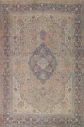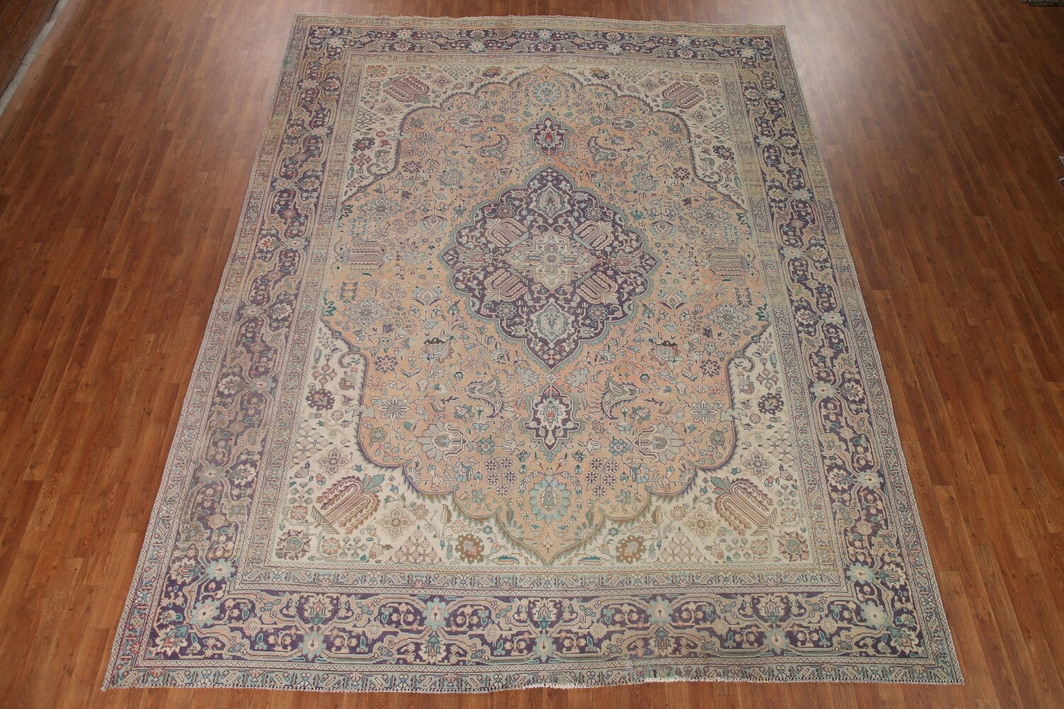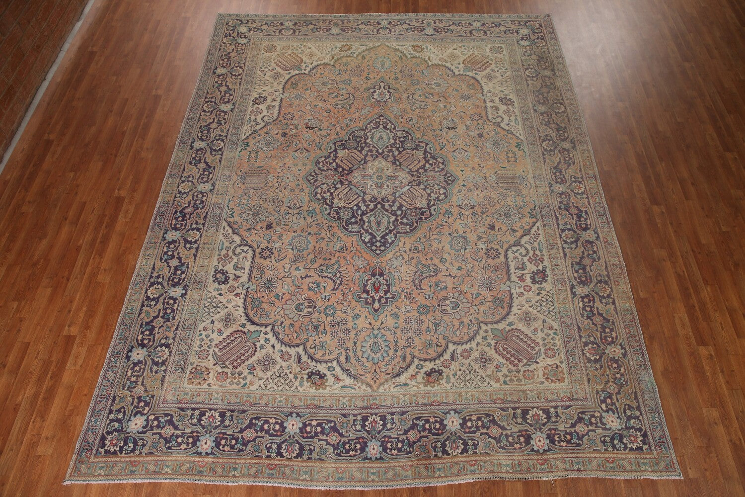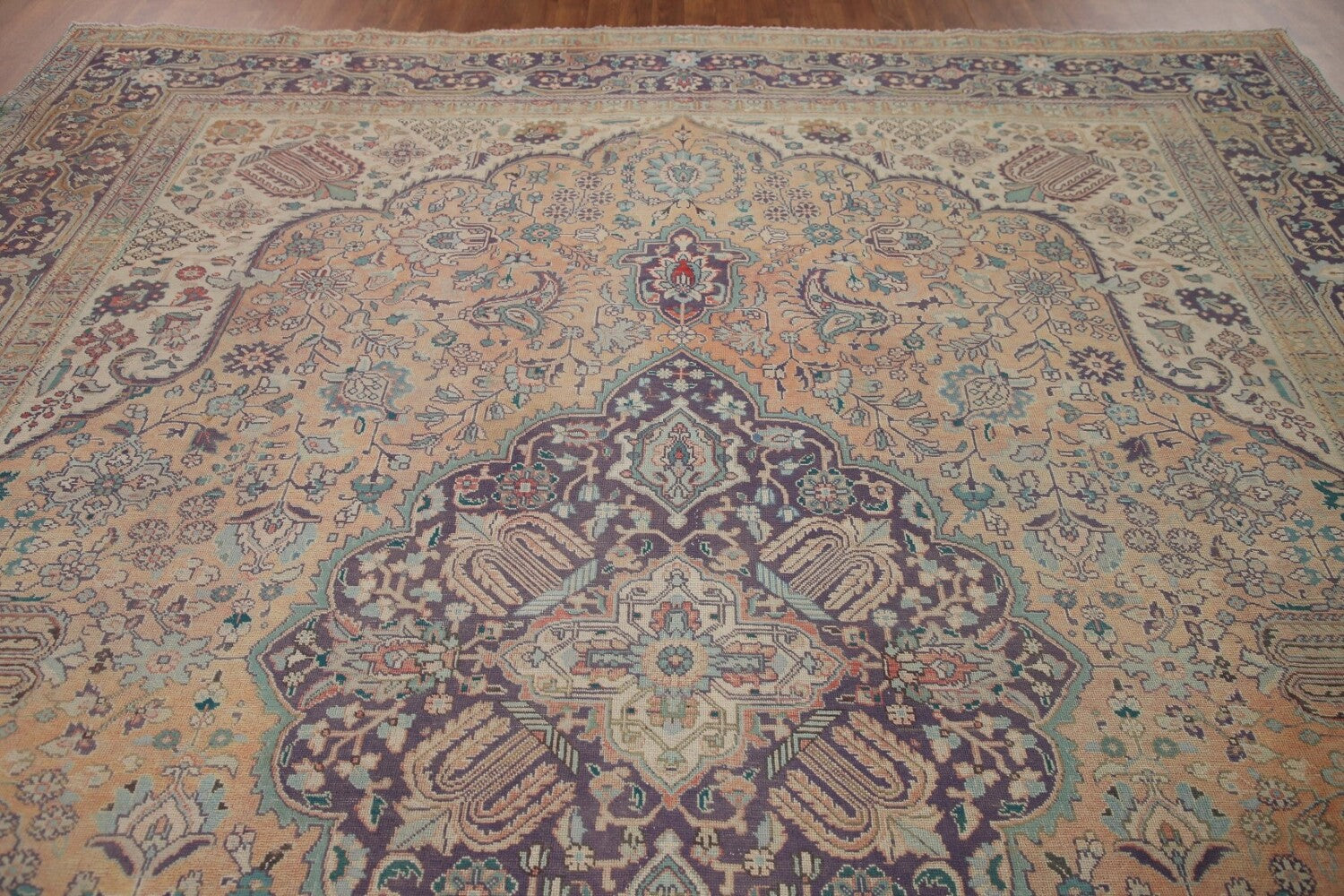 A Beautiful Genuine Persia ( Persia ) Tabriz rug is Hand Knotted by skillful weavers in Persia ( Persia ) with 100% Wool Material. This rug is in Very Good (Evenly Low Pile-Repair) condition. dimensions are 12' 6'' X 9' 9'' in foot and 381 X 297 in centimeter. the primary color is Coral.
