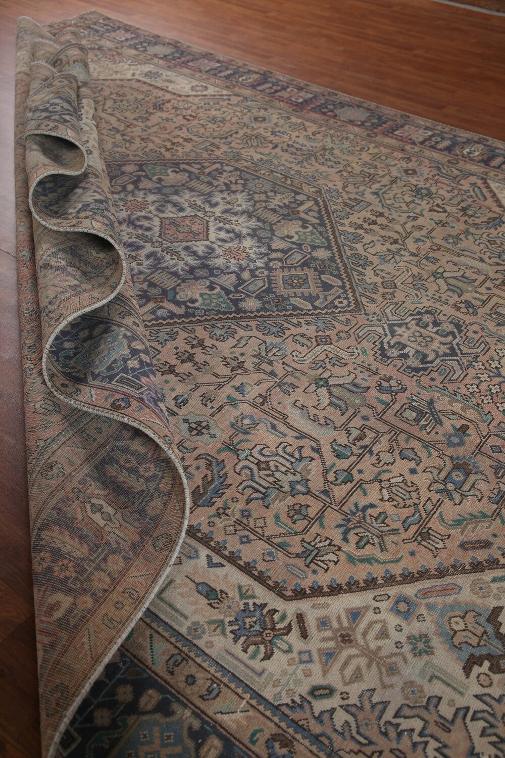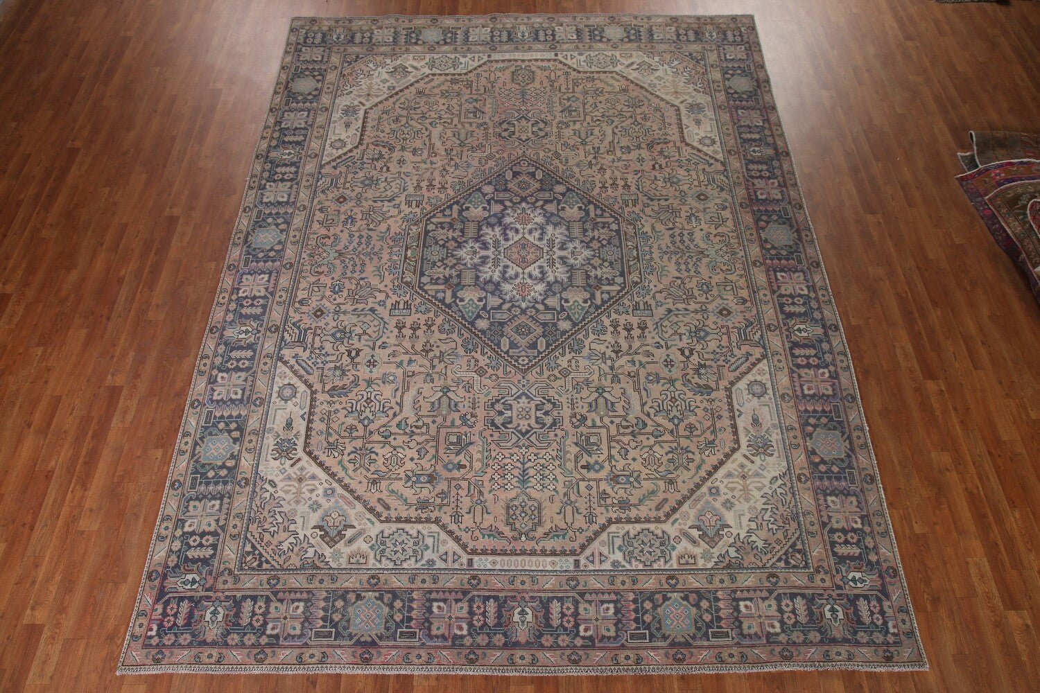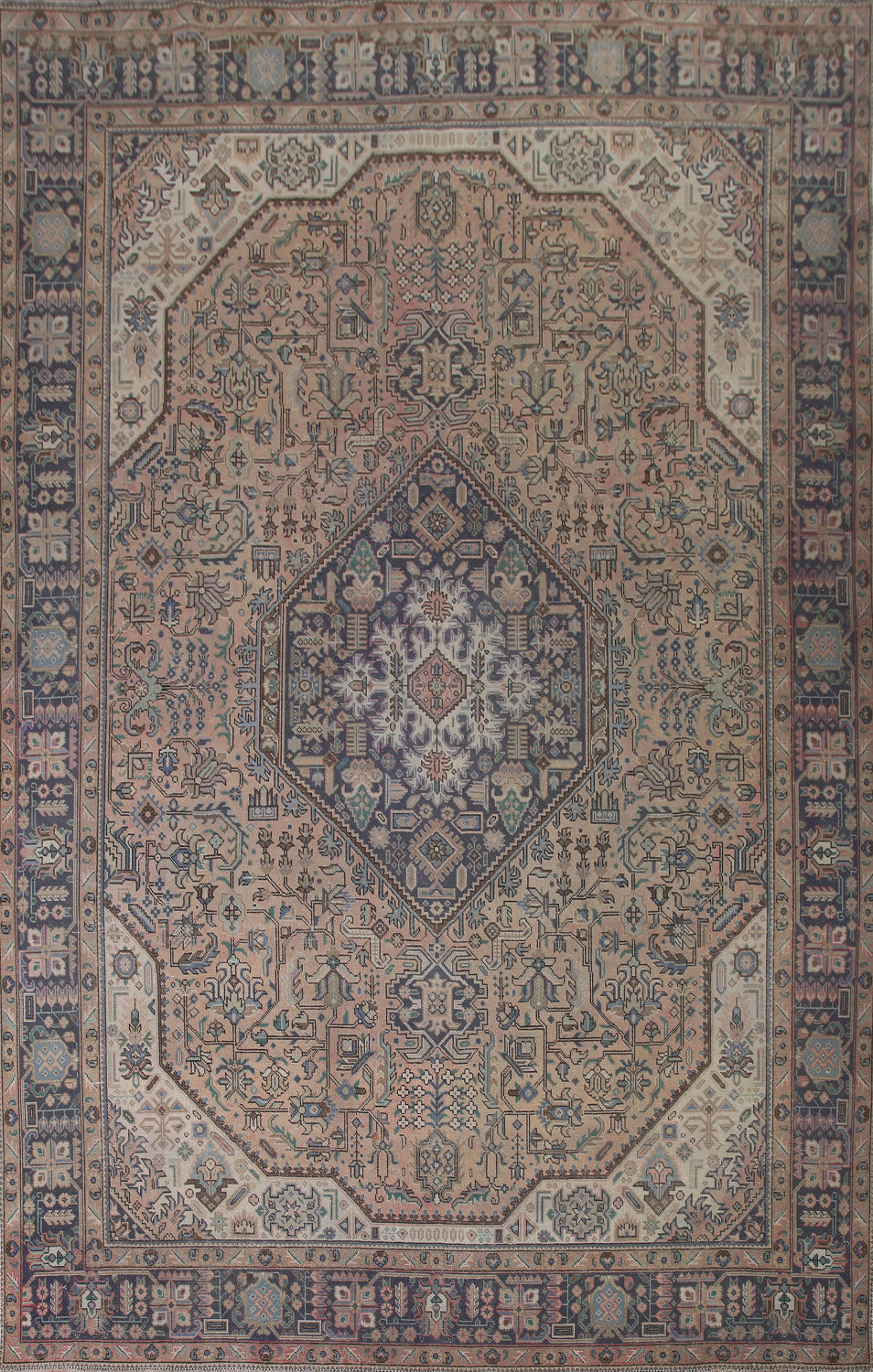 A Beautiful Genuine Persia ( Persia ) Tabriz rug is Hand Knotted by skillful weavers in Persia ( Persia ) with 100% Wool Material. This rug is in Very Good (Evenly Low Pile) condition. dimensions are 12' 9'' X 9' 6'' in foot and 389 X 290 in centimeter. the primary color is Pink.