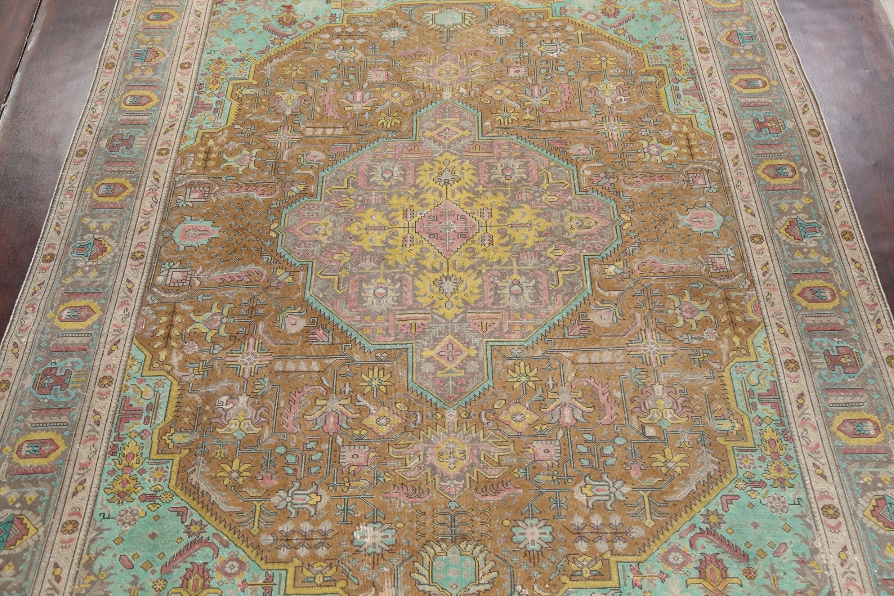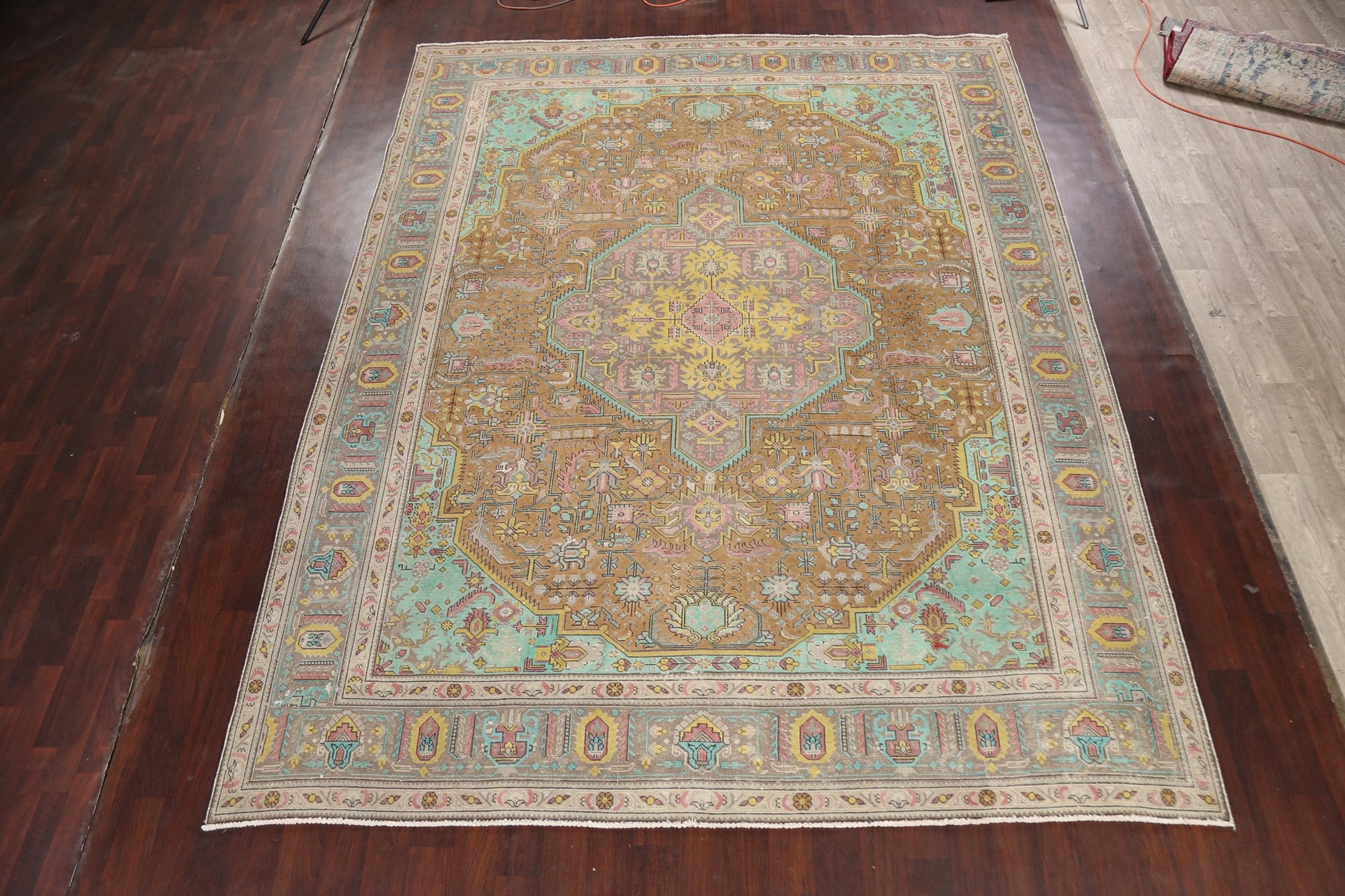 A Beautiful Genuine Persia ( Persia ) Tabriz rug is Hand Knotted by skillful weavers in Persia ( Persia ) with 100% Wool Material. This rug is in Very Good (Evenly Low Pile) condition. dimensions are 12' 6'' X 9' 10'' in foot and 381 X 300 in centimeter. the primary color is Brown.