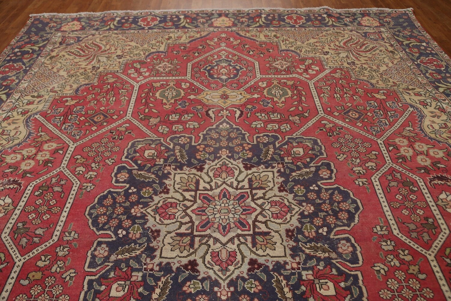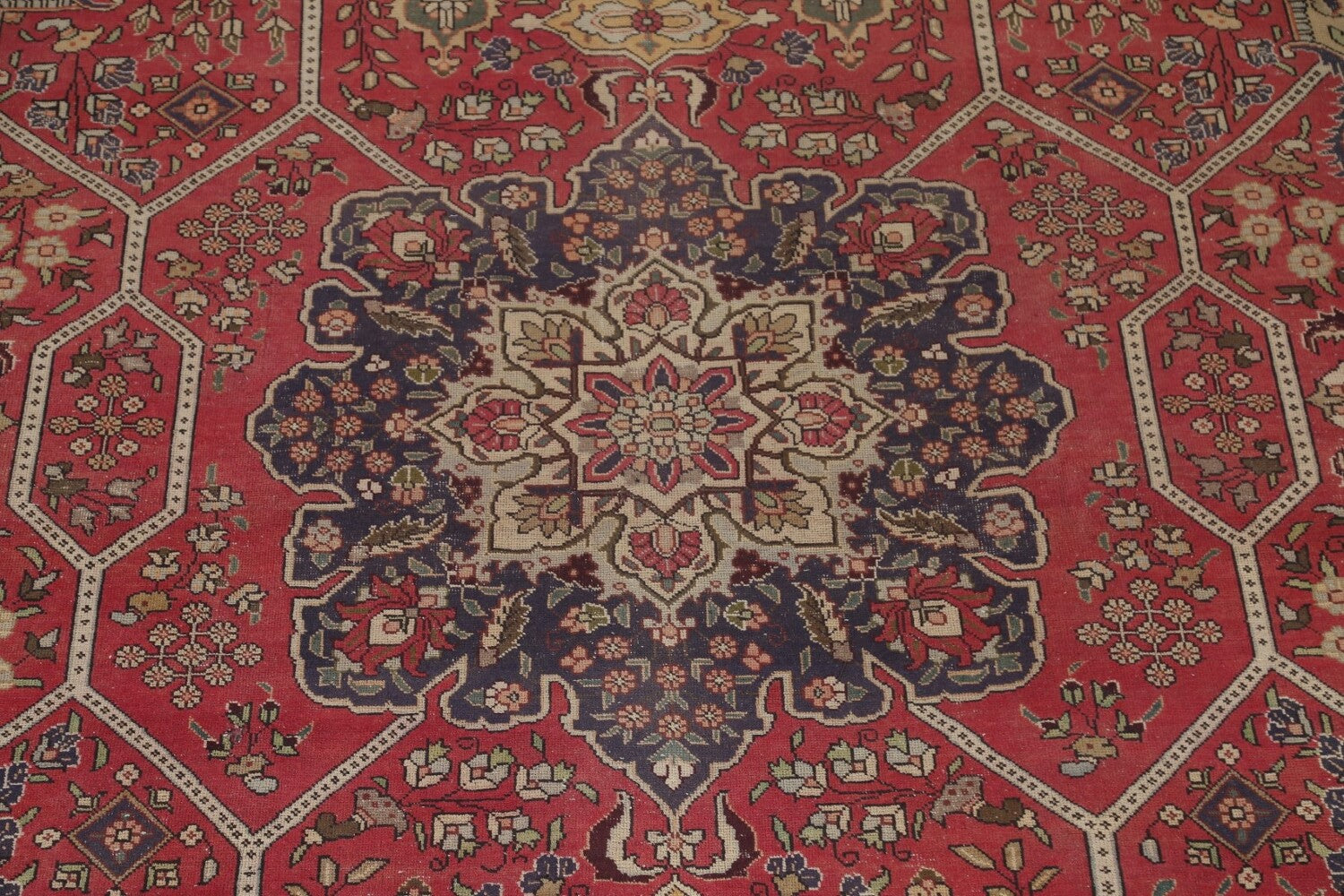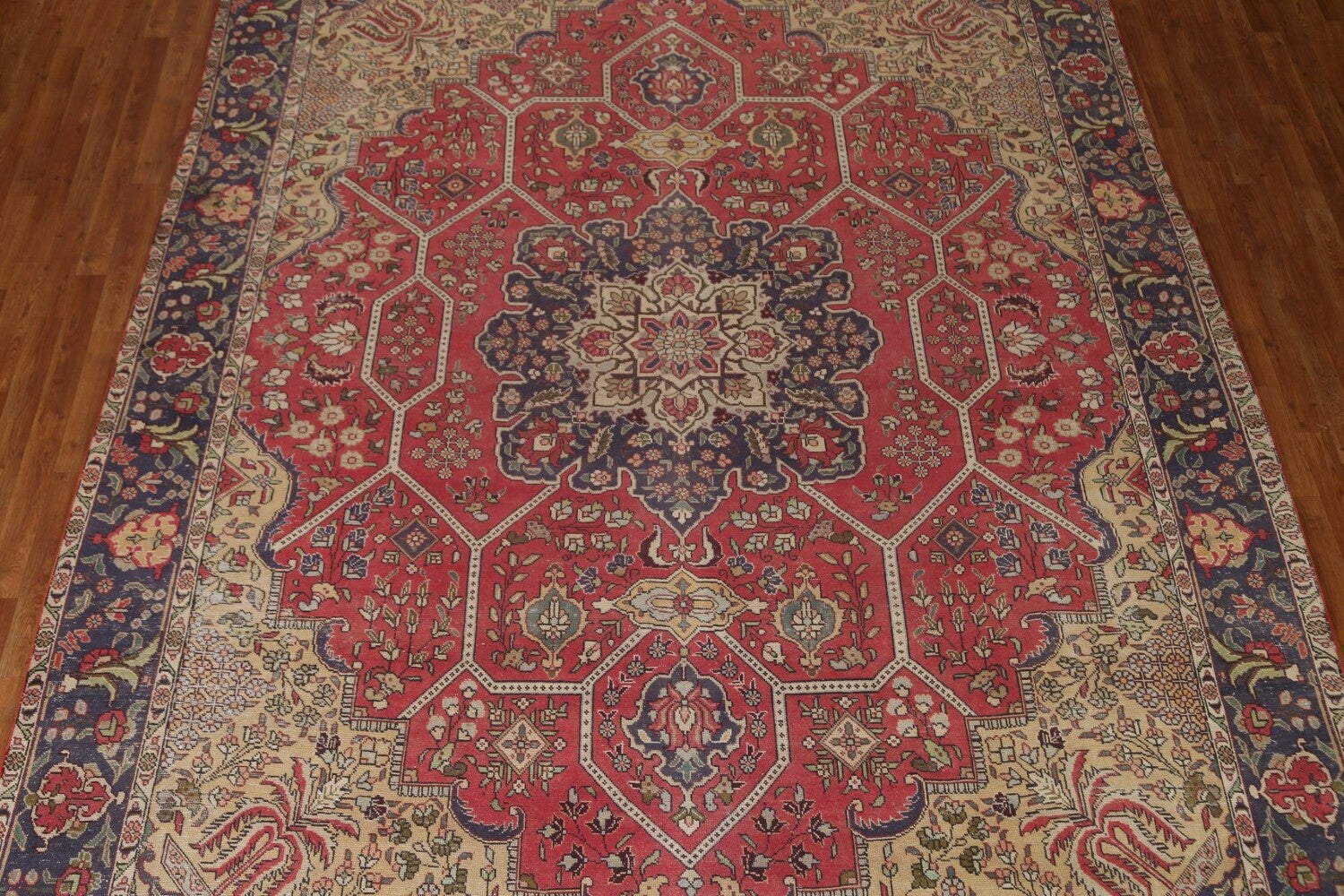 A Beautiful Genuine Persia ( Persia ) Tabriz rug is Hand Knotted by skillful weavers in Persia ( Persia ) with 100% Wool Material. This rug is in Very Good (Low Pile) condition. dimensions are 13' 3'' X 9' 10'' in foot and 404 X 300 in centimeter. the primary color is Pink.