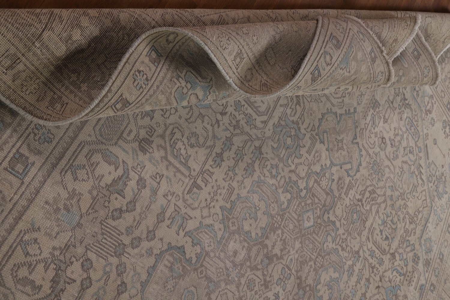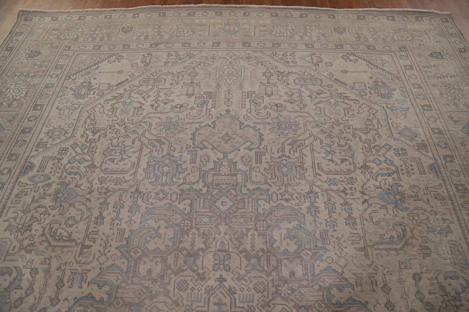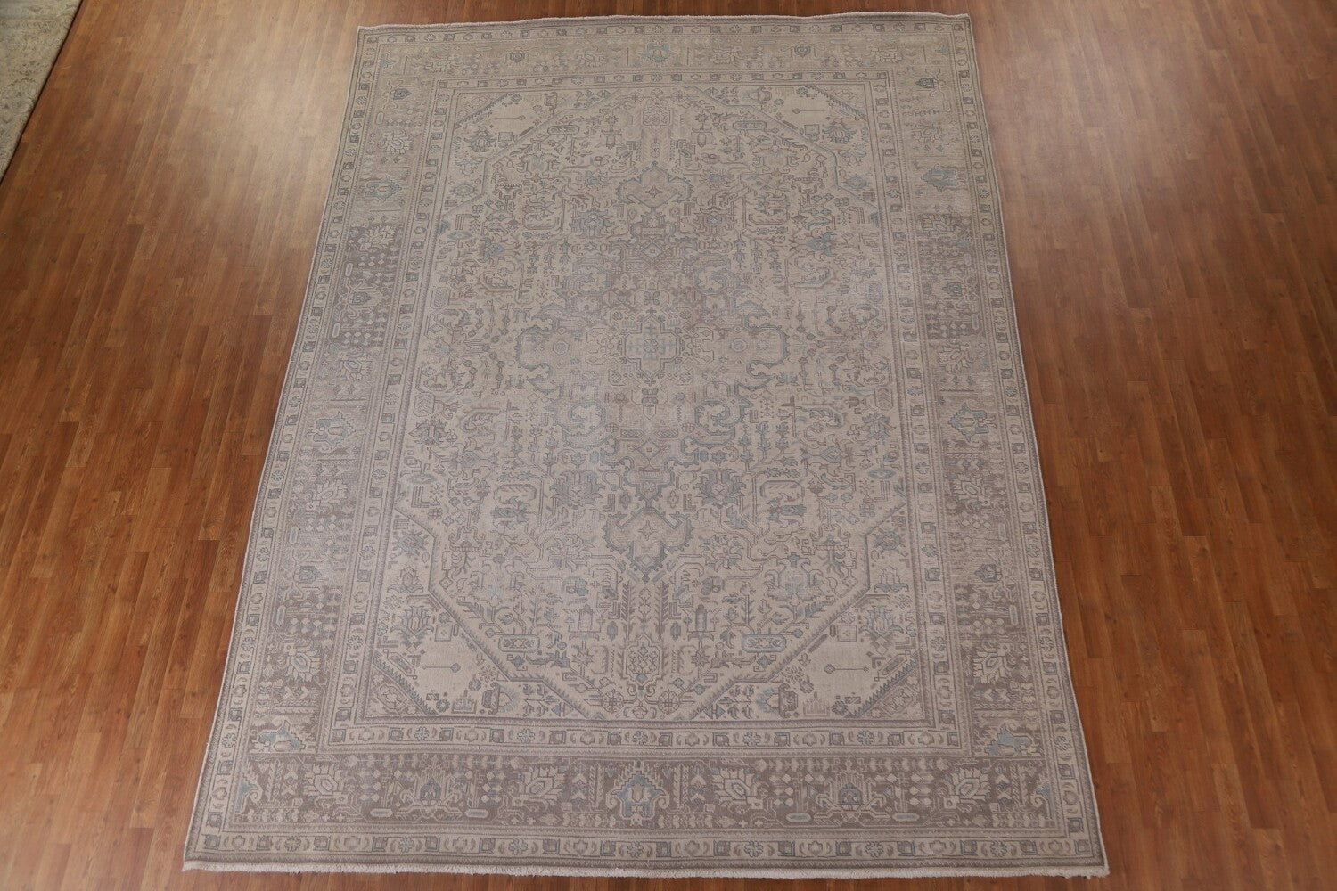 A Beautiful Genuine Persia ( Persia ) Tabriz rug is Hand Knotted by skillful weavers in Persia ( Persia ) with 100% Wool Material. This rug is in Very Good (Evenly Low Pile) condition. dimensions are 12' 8'' X 9' 6'' in foot and 386 X 290 in centimeter. the primary color is Beige & Ivories.