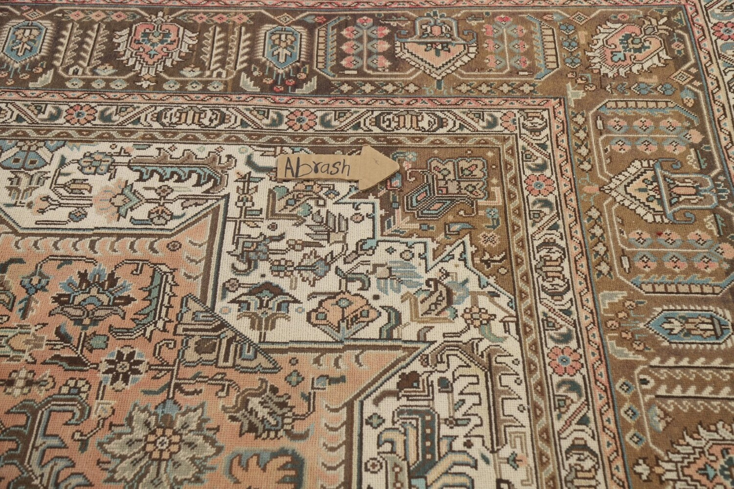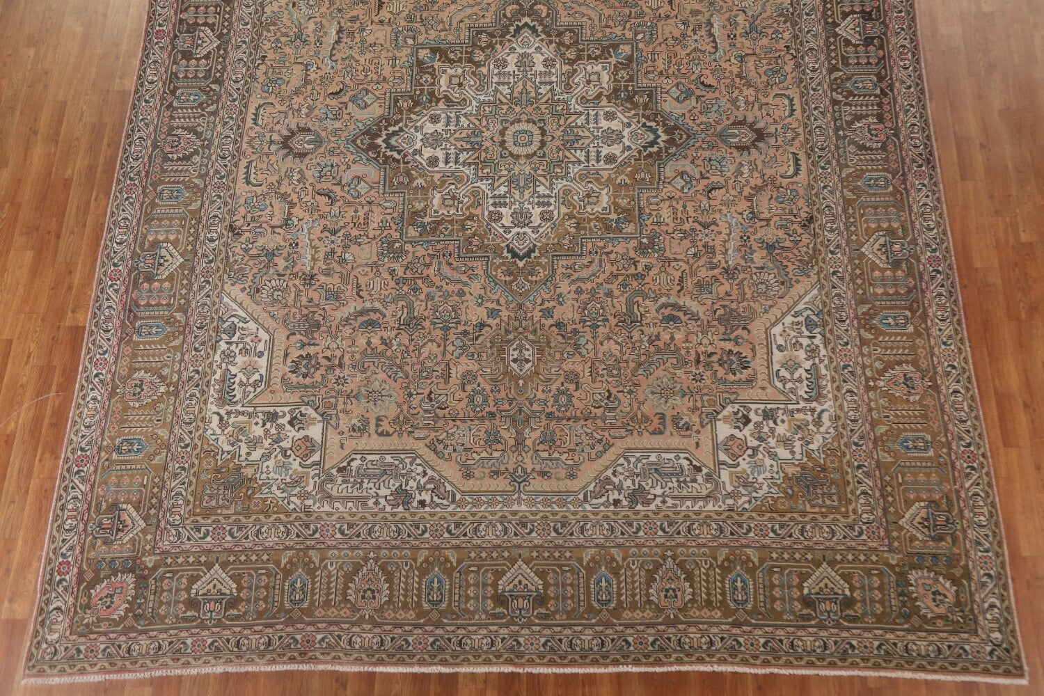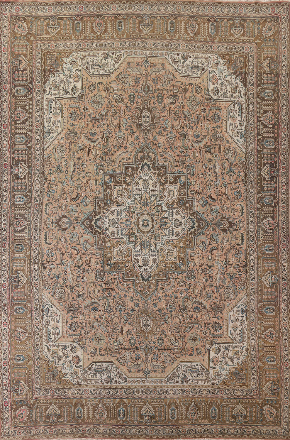 A Beautiful Genuine Persia ( Persia ) Tabriz rug is Hand Knotted by skillful weavers in Persia ( Persia ) with 100% Wool Material. This rug is in Very Good (Abrash) condition. dimensions are 13' 0'' X 9' 10'' in foot and 396 X 300 in centimeter. the primary color is Coral.
