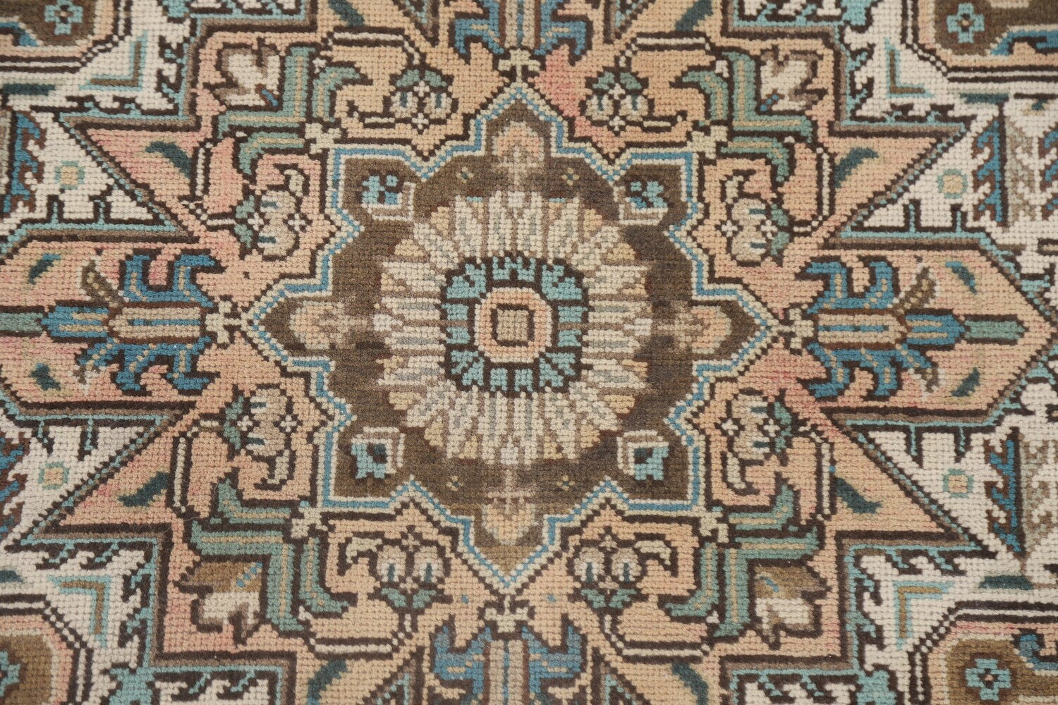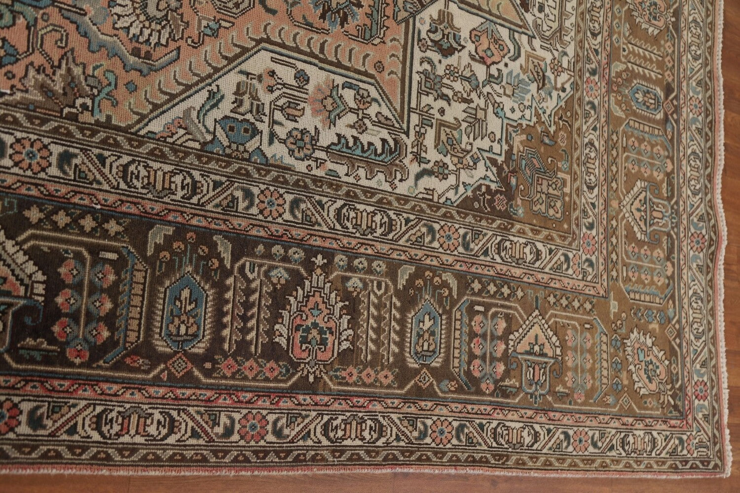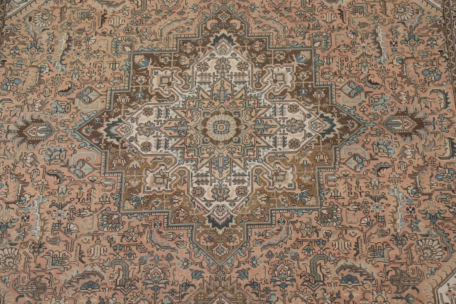 A Beautiful Genuine Persia ( Persia ) Tabriz rug is Hand Knotted by skillful weavers in Persia ( Persia ) with 100% Wool Material. This rug is in Very Good (Abrash) condition. dimensions are 13' 0'' X 9' 10'' in foot and 396 X 300 in centimeter. the primary color is Coral.