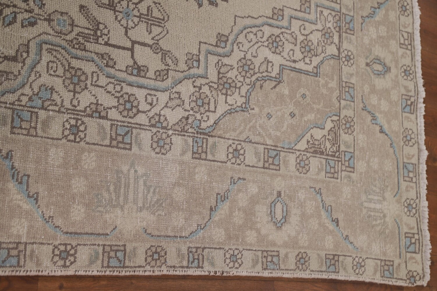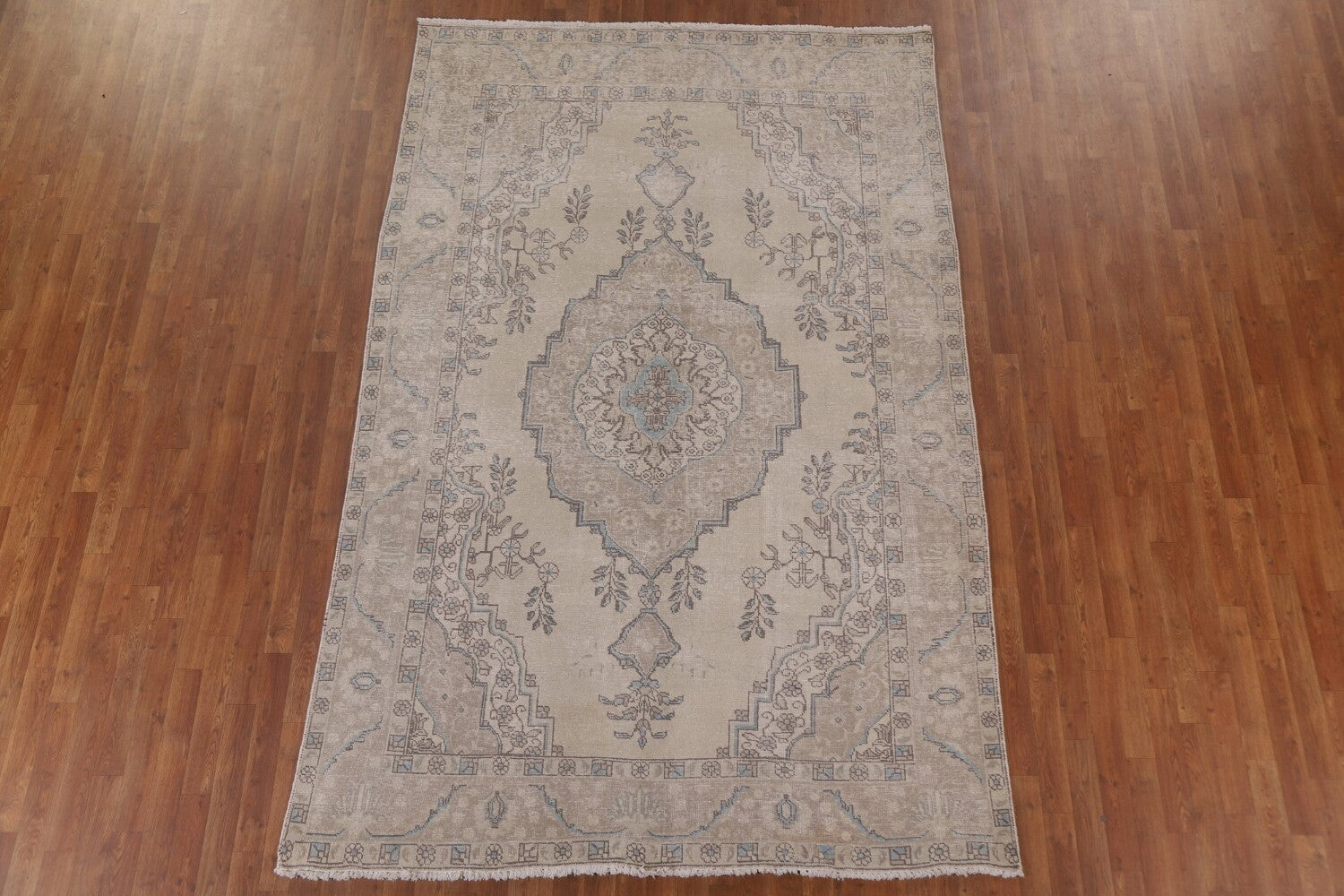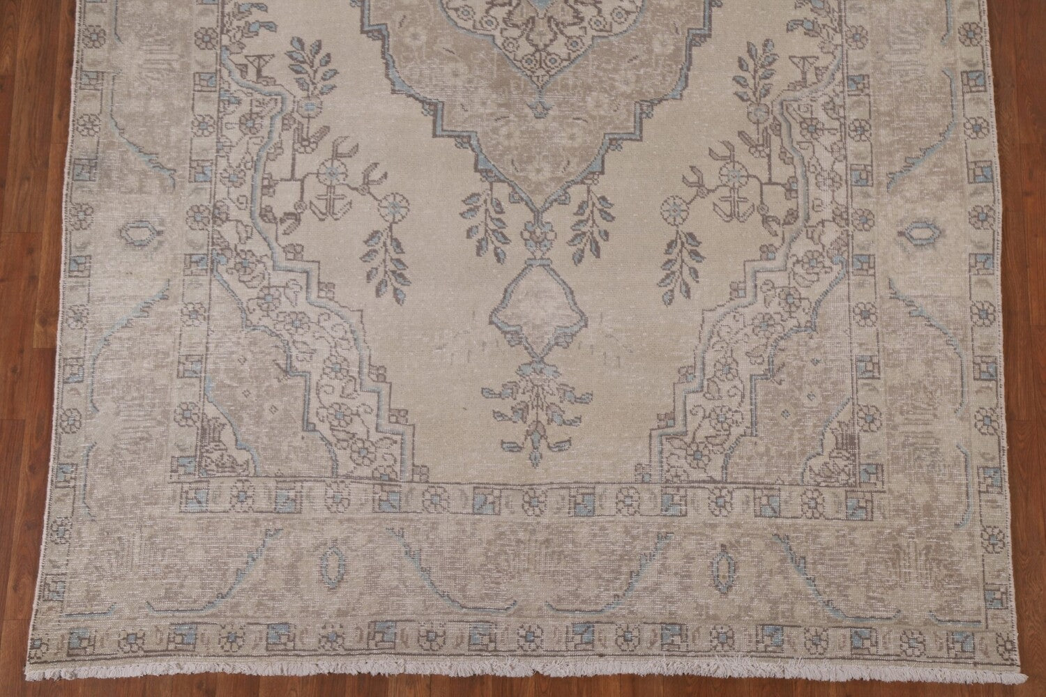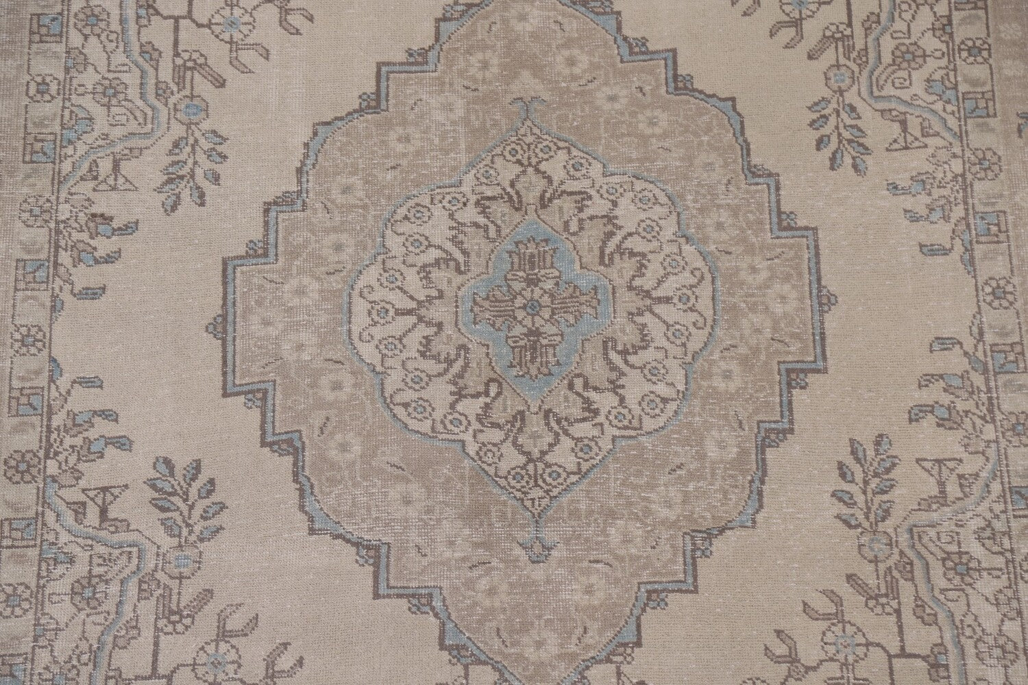 A Beautiful Genuine Persia ( Persia ) Tabriz rug is Hand Knotted by skillful weavers in Persia ( Persia ) with 100% Wool Material. This rug is in Very Good (Evenly Low Pile-Repair) condition. dimensions are 9' 10'' X 6' 5'' in foot and 300 X 196 in centimeter. the primary color is Beige & Ivories.