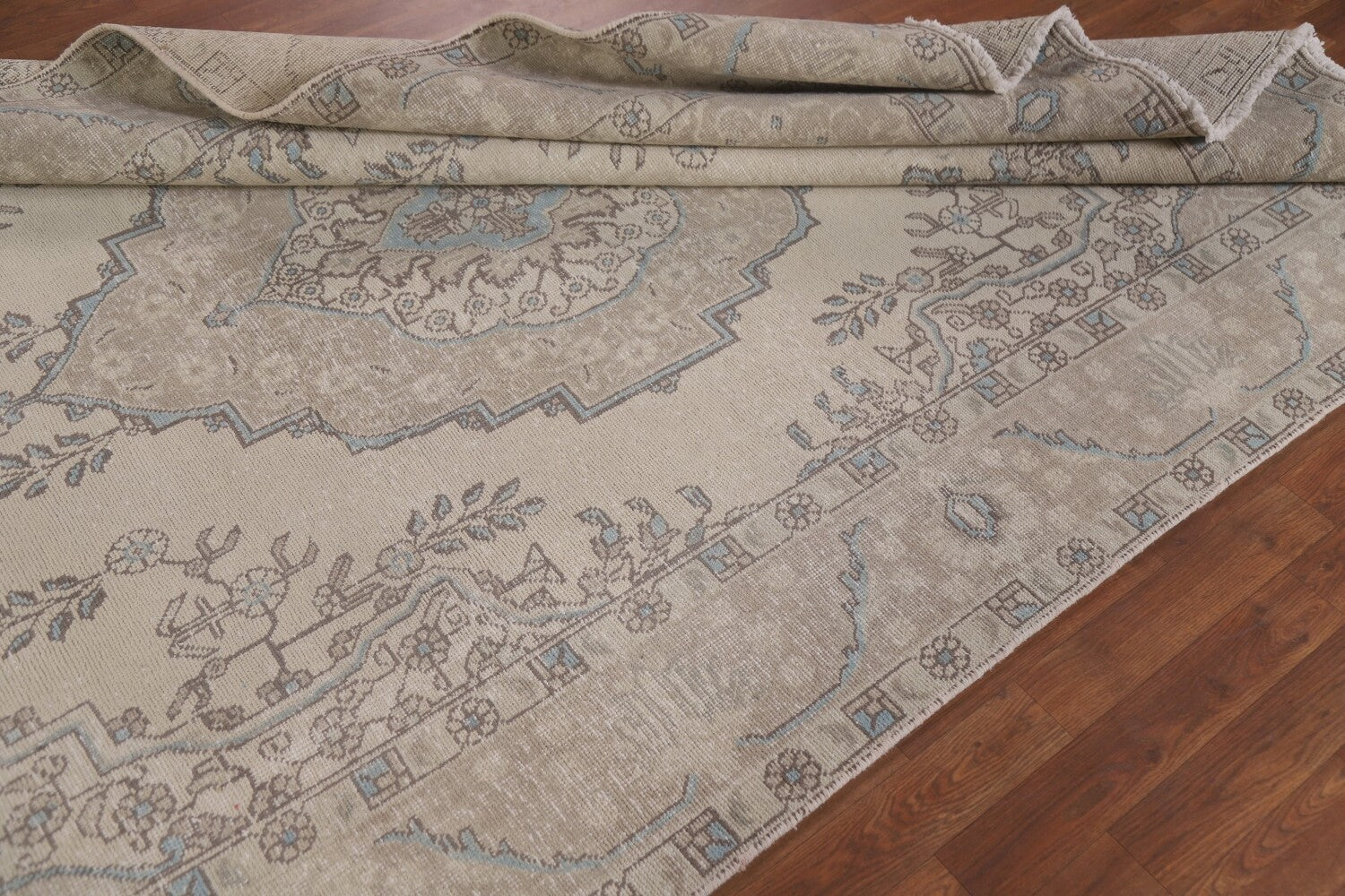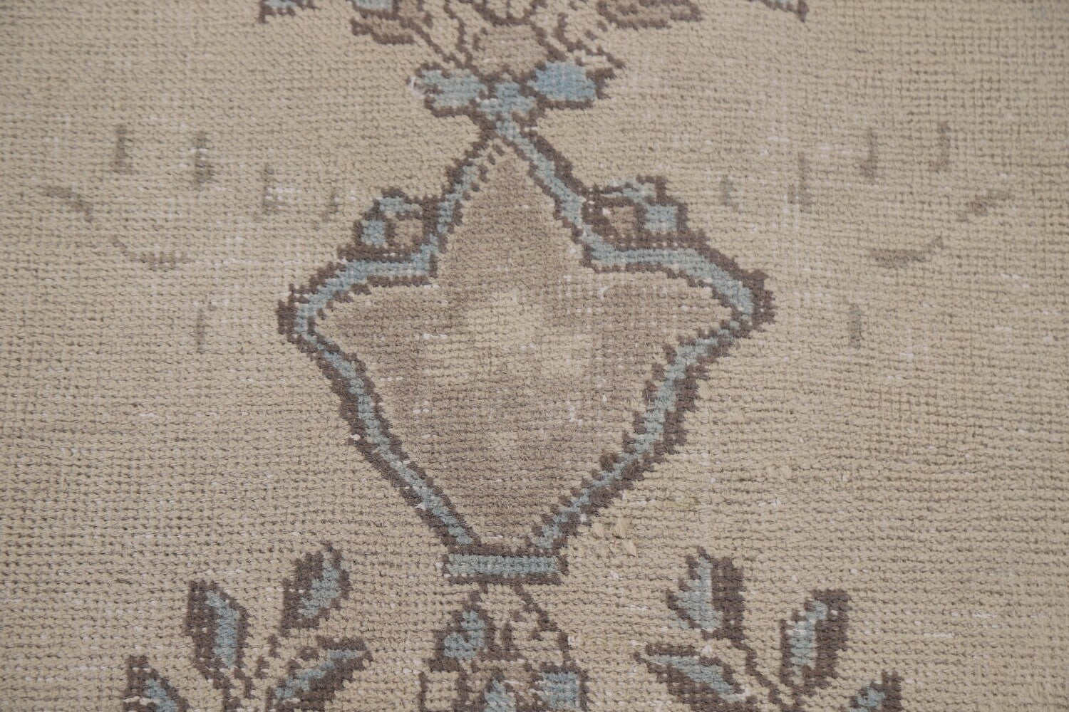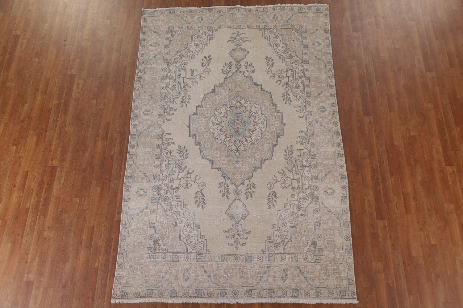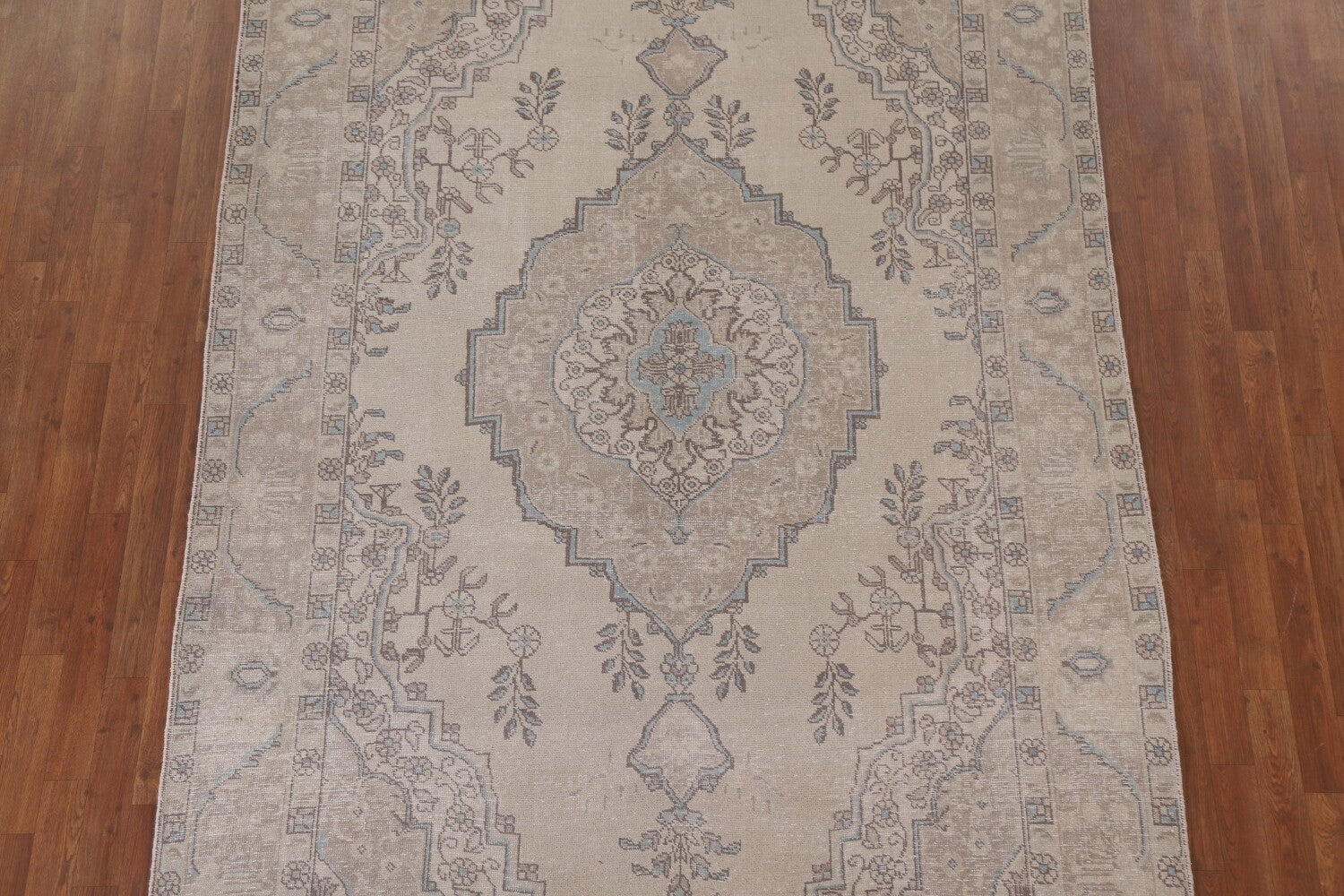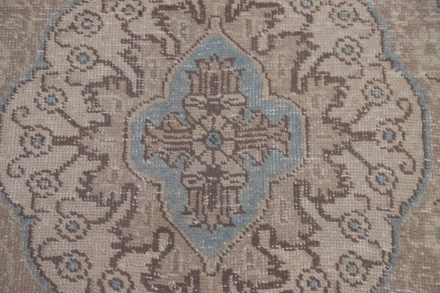 A Beautiful Genuine Persia ( Persia ) Tabriz rug is Hand Knotted by skillful weavers in Persia ( Persia ) with 100% Wool Material. This rug is in Very Good (Evenly Low Pile-Repair) condition. dimensions are 9' 10'' X 6' 5'' in foot and 300 X 196 in centimeter. the primary color is Beige & Ivories.