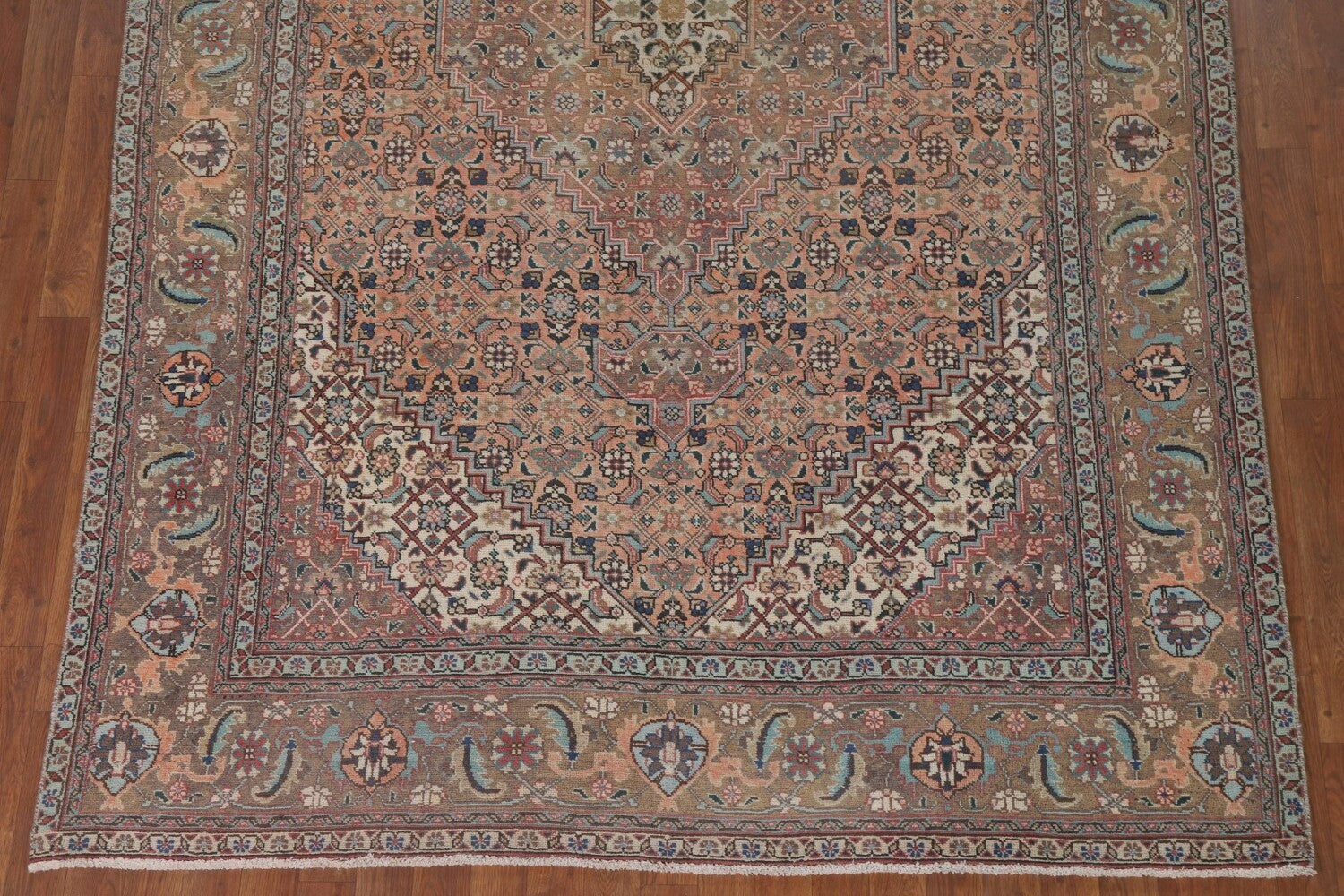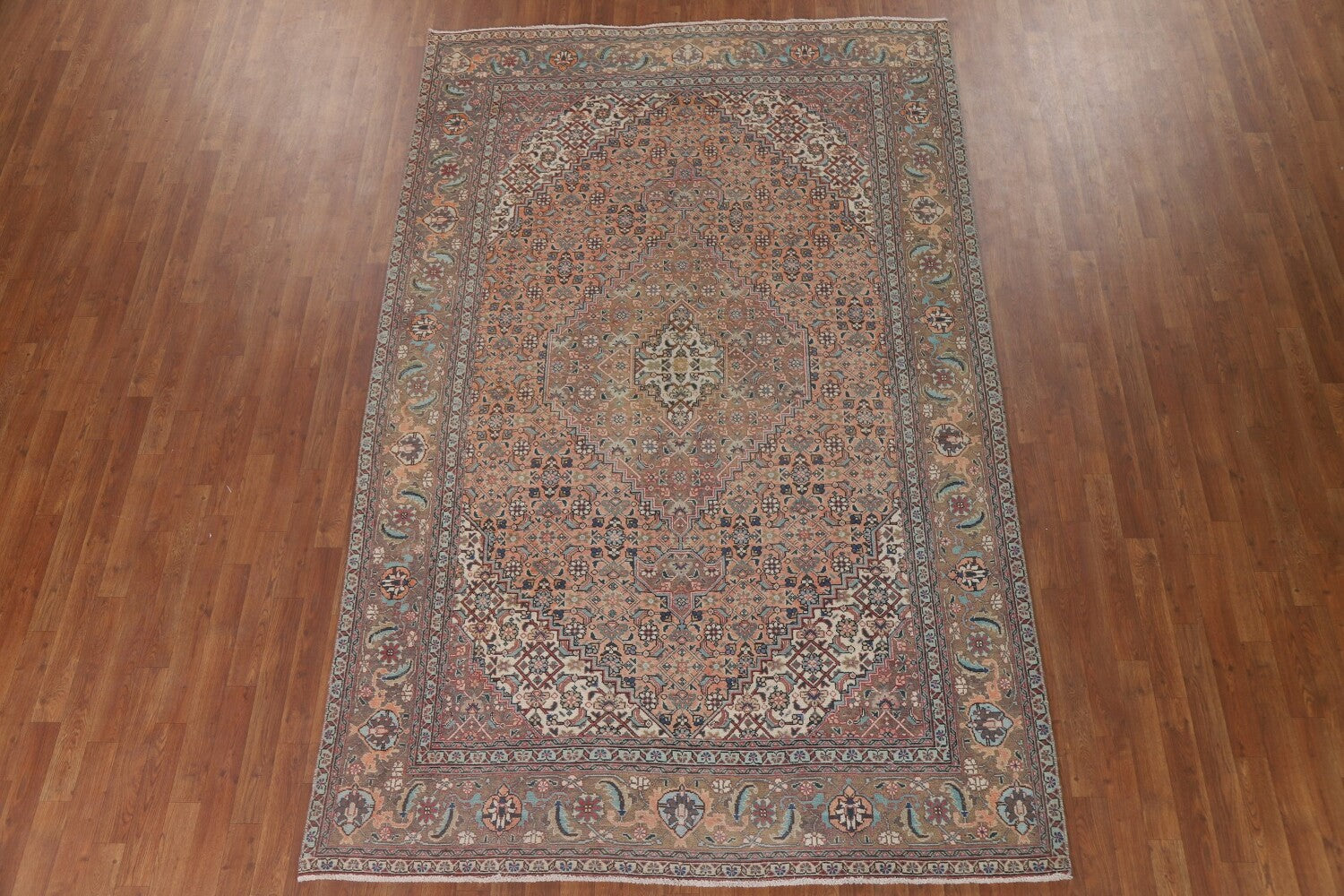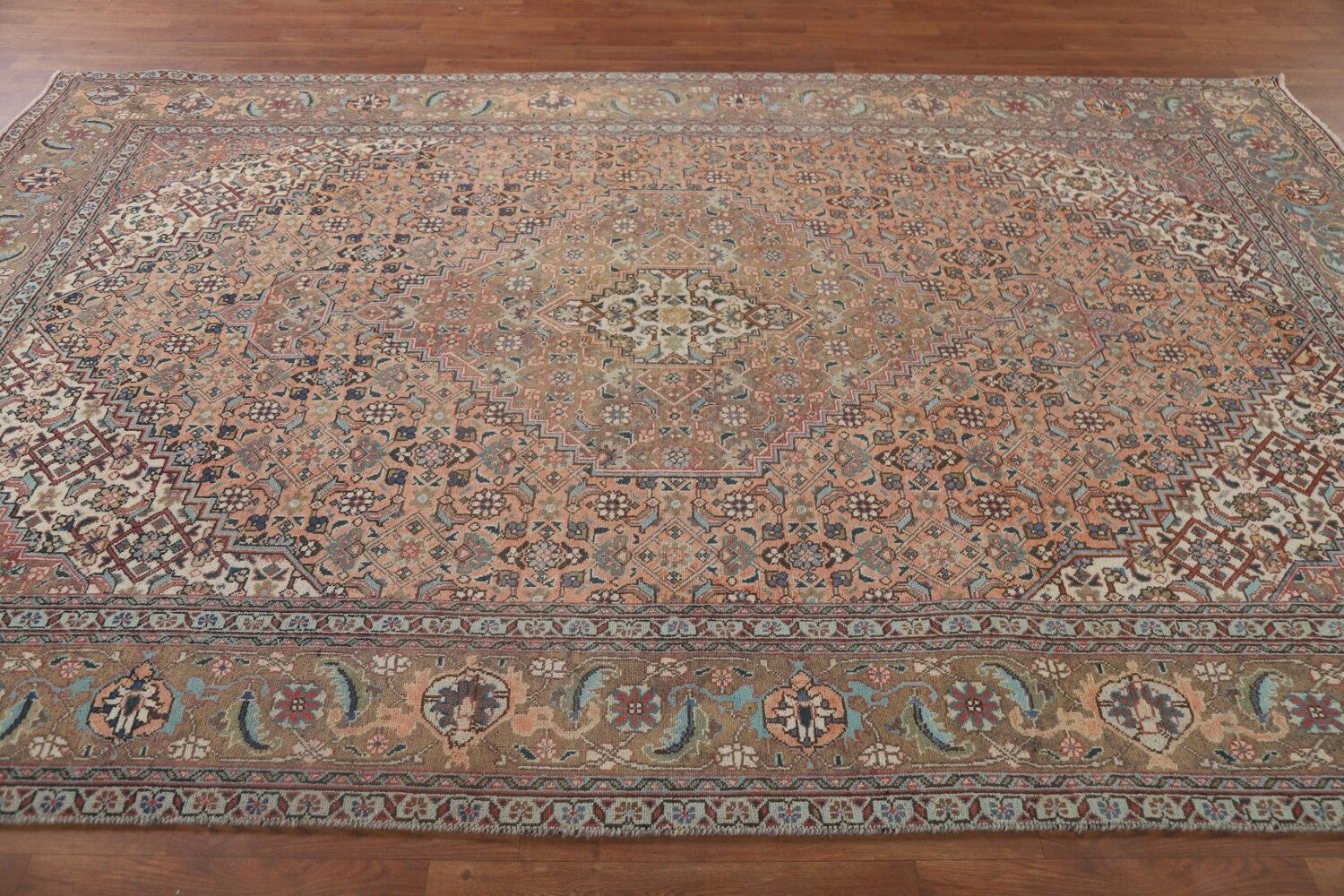 A Beautiful Genuine Persia ( Persia ) Tabriz rug is Hand Knotted by skillful weavers in Persia ( Persia ) with 100% Wool Material. This rug is in Very Good (Low Pile) condition. dimensions are 9' 10'' X 6' 2'' in foot and 300 X 188 in centimeter. the primary color is Coral.