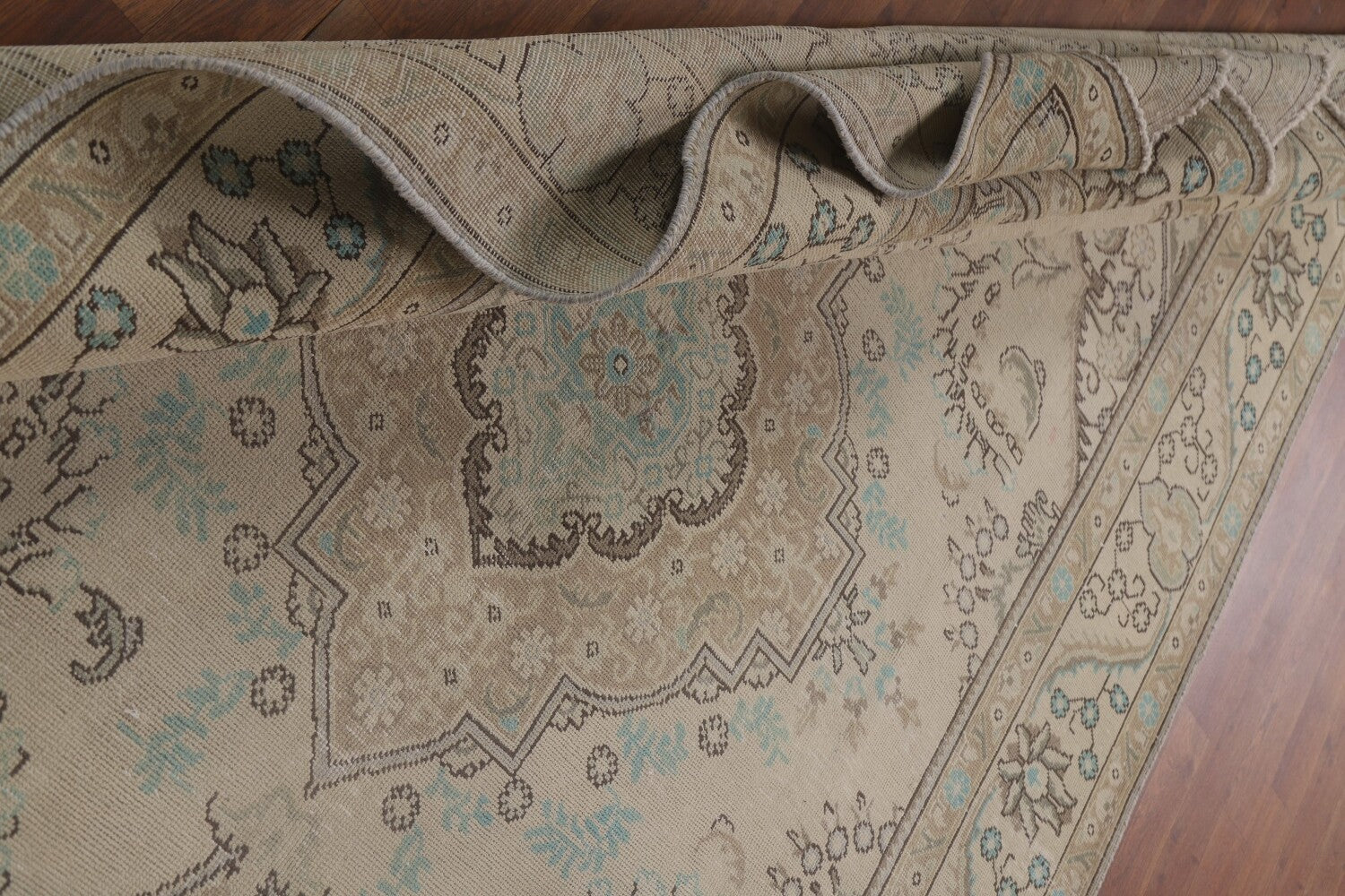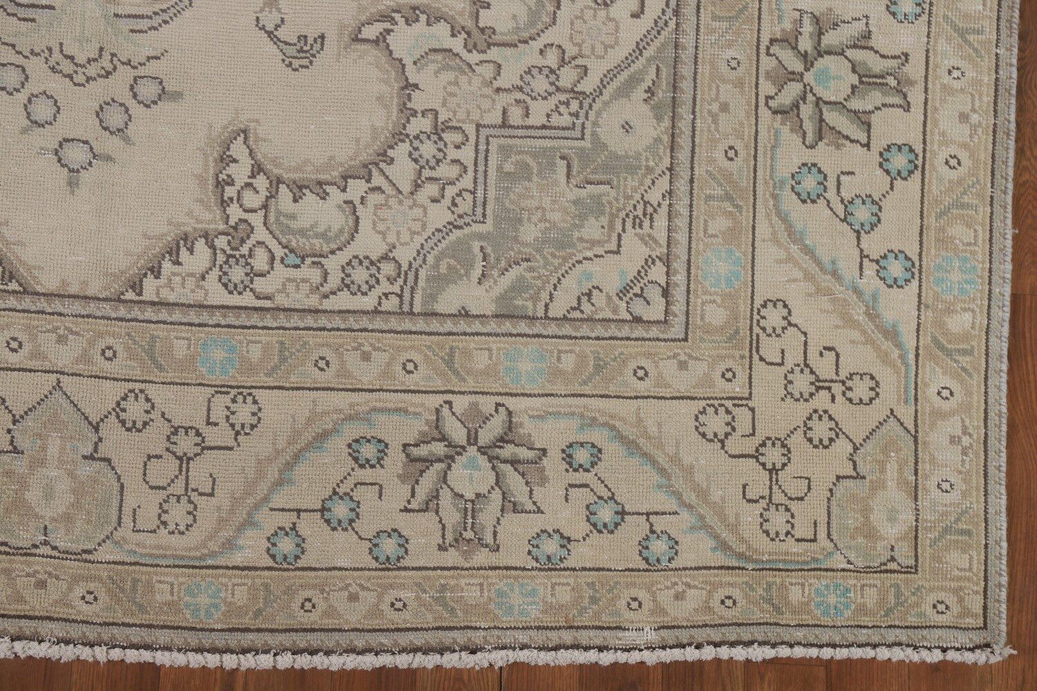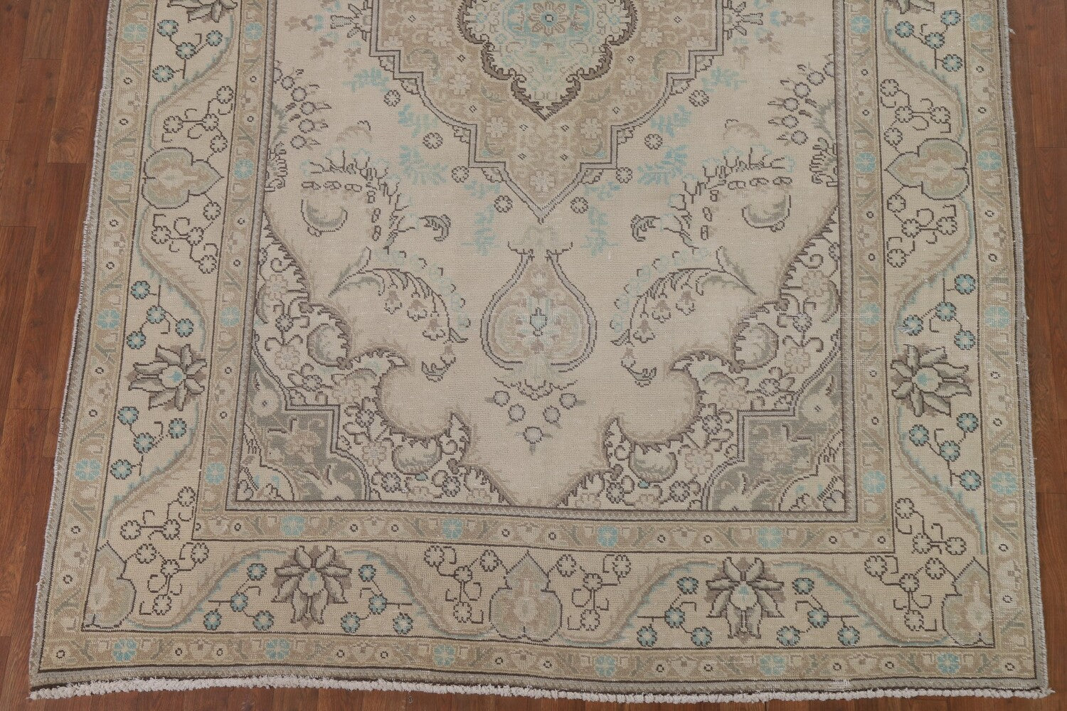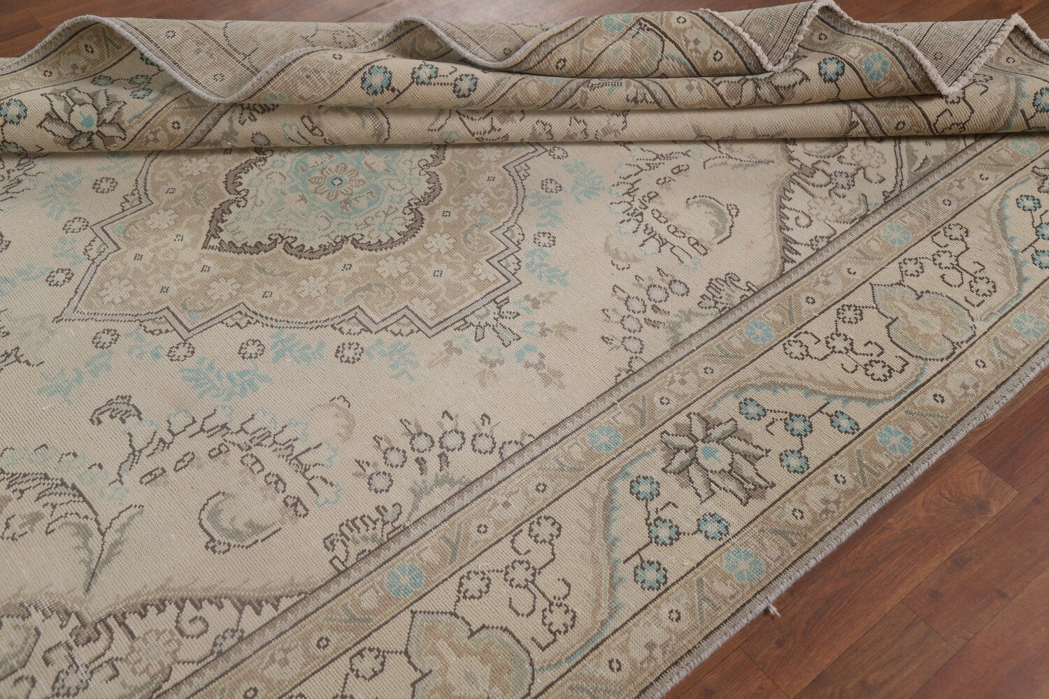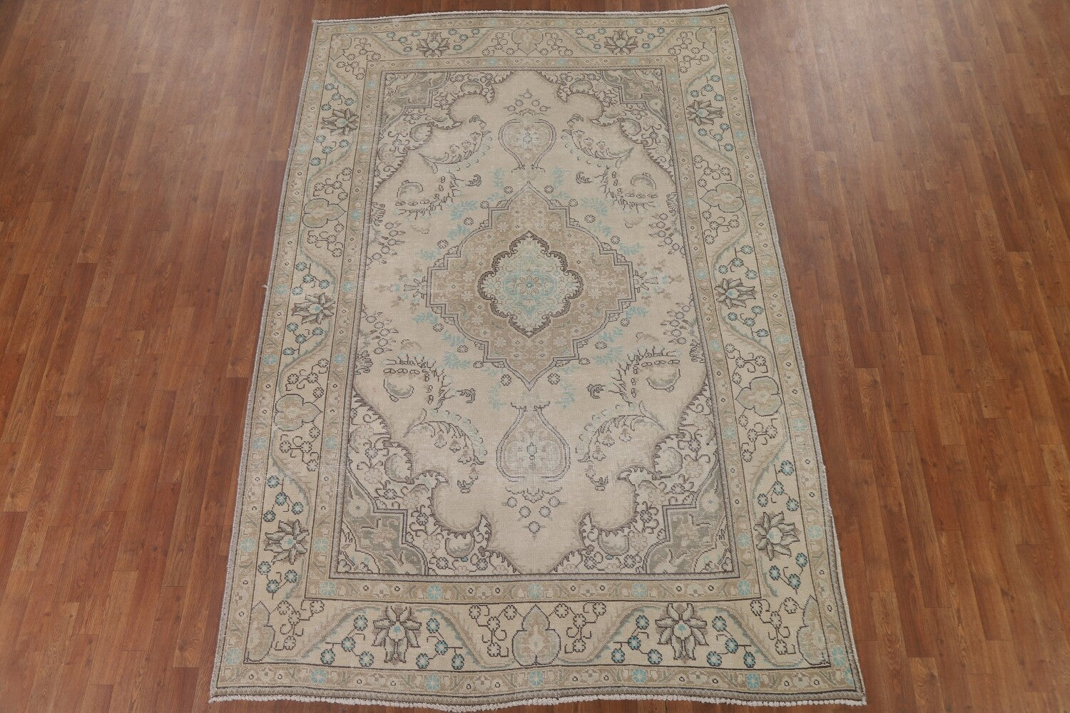 A Beautiful Genuine Persia ( Persia ) Tabriz rug is Hand Knotted by skillful weavers in Persia ( Persia ) with 100% Wool Material. This rug is in Very Good (Low Pile) condition. dimensions are 9' 8'' X 6' 5'' in foot and 295 X 196 in centimeter. the primary color is Beige & Ivories.