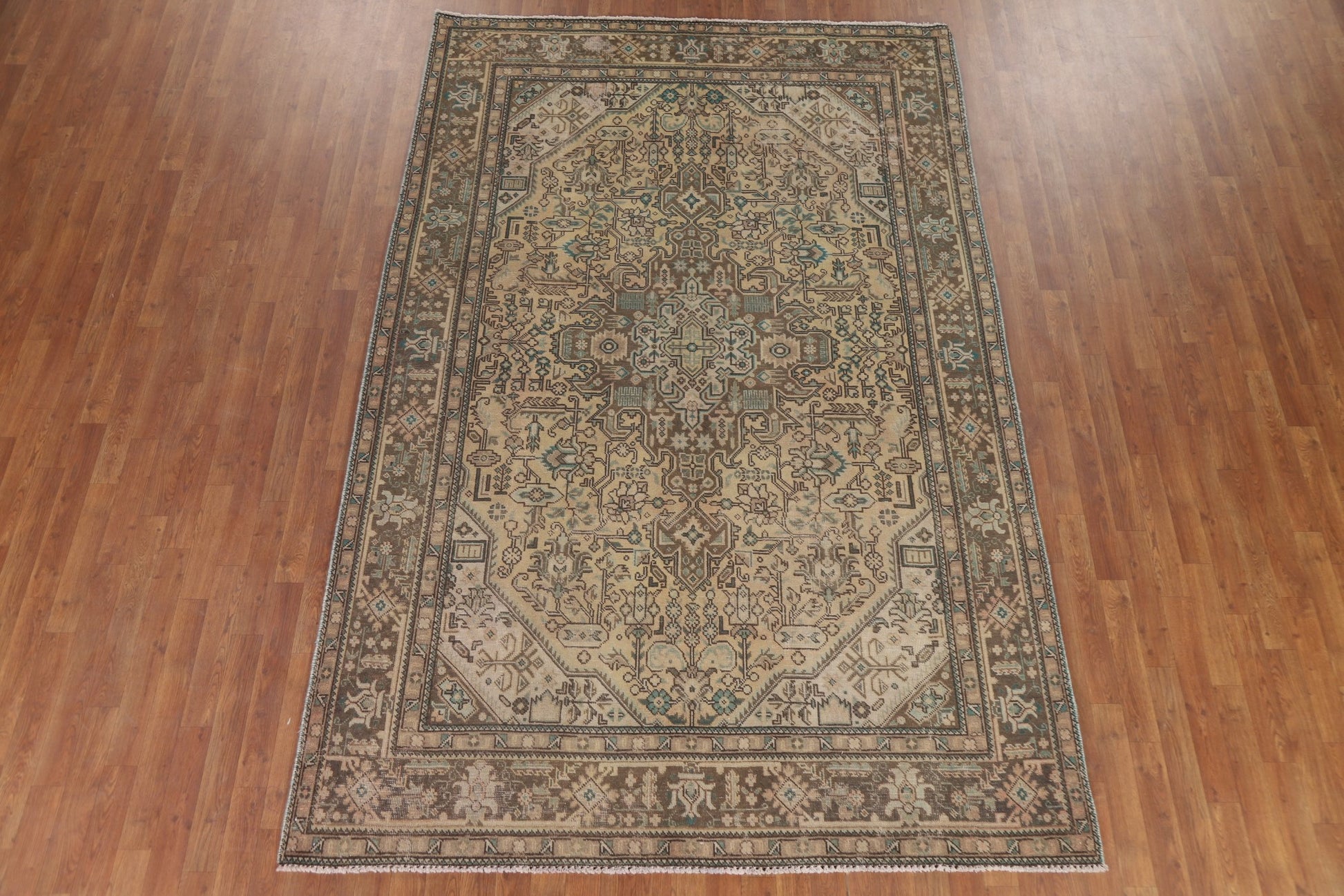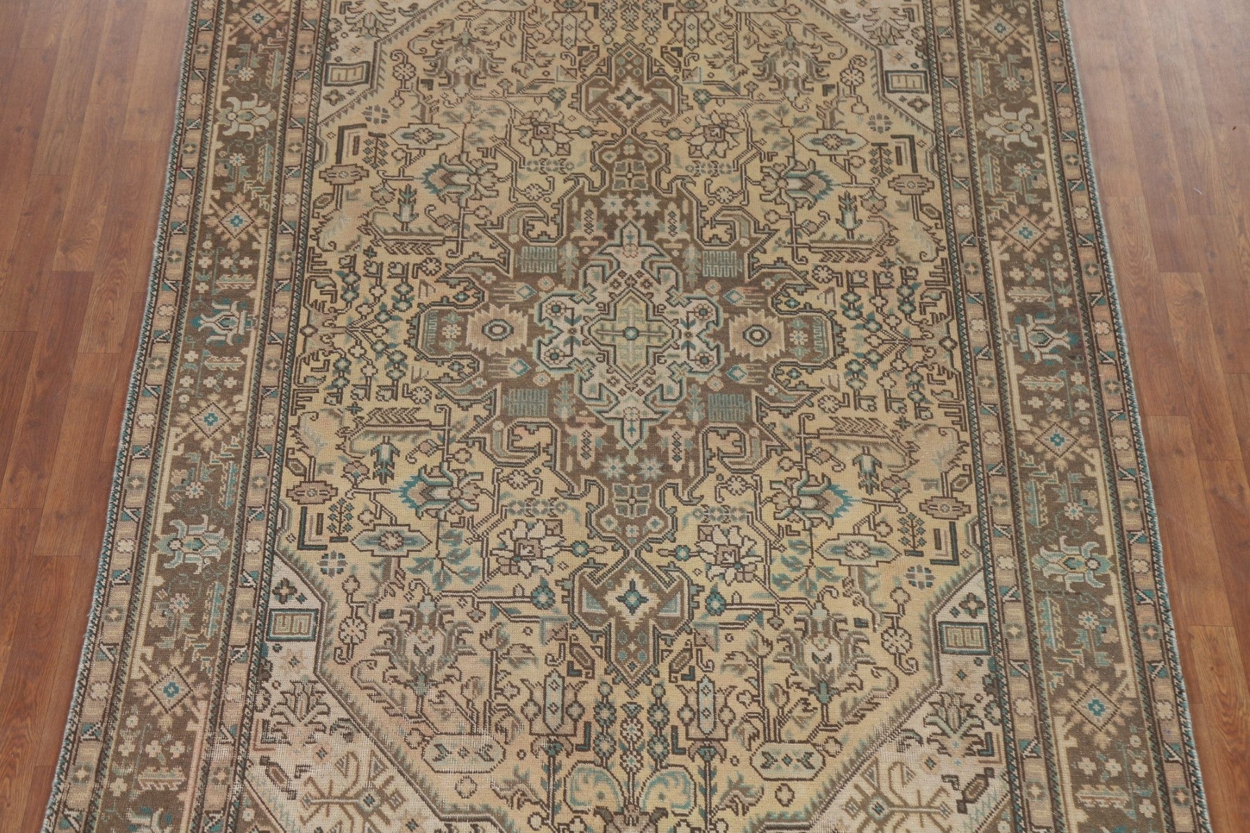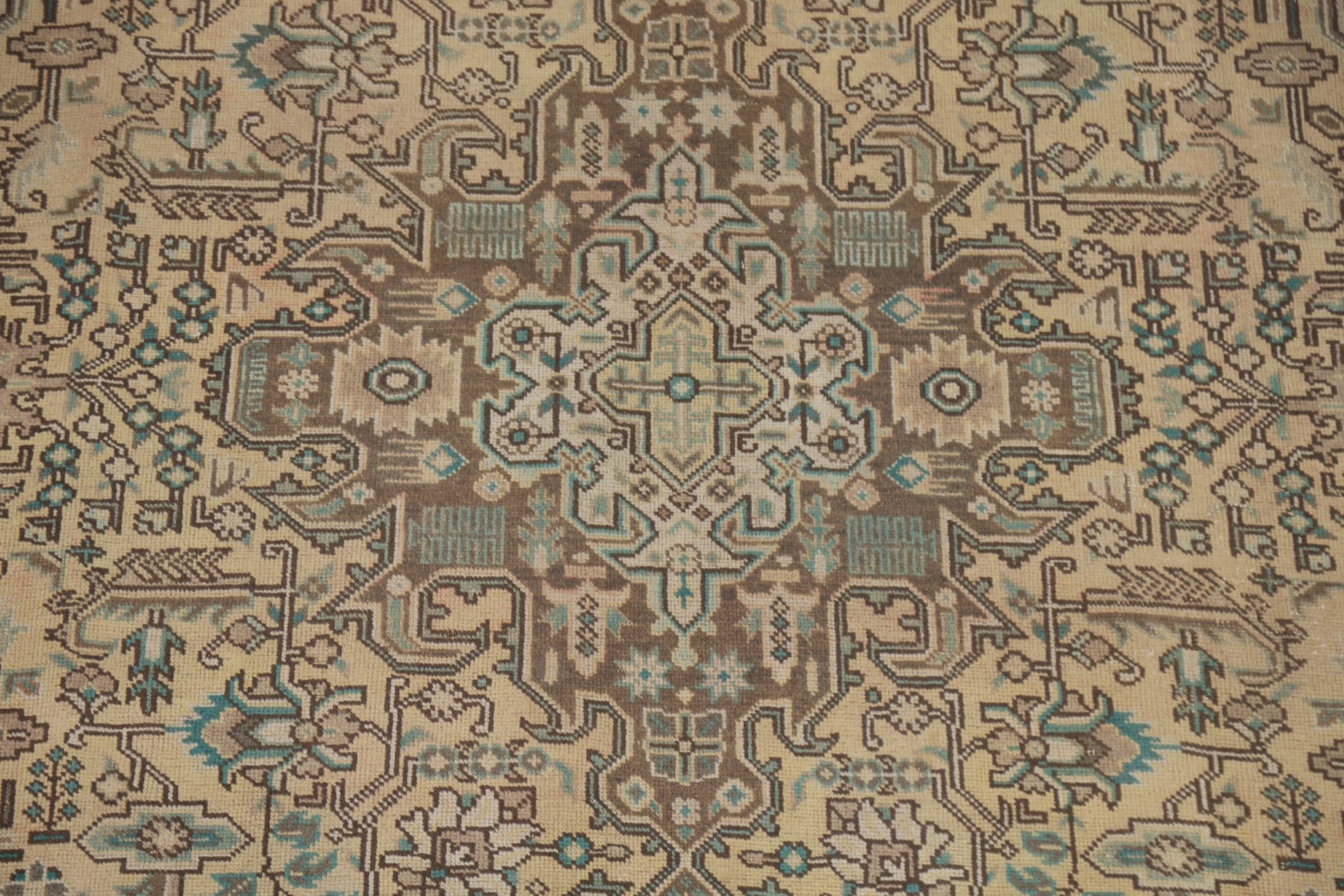 A Beautiful Genuine Persia ( Persia ) Tabriz rug is Hand Knotted by skillful weavers in Persia ( Persia ) with 100% Wool Material. This rug is in Very Good (Low Pile) condition. dimensions are 9' 10'' X 6' 4'' in foot and 300 X 193 in centimeter. the primary color is Peach.
