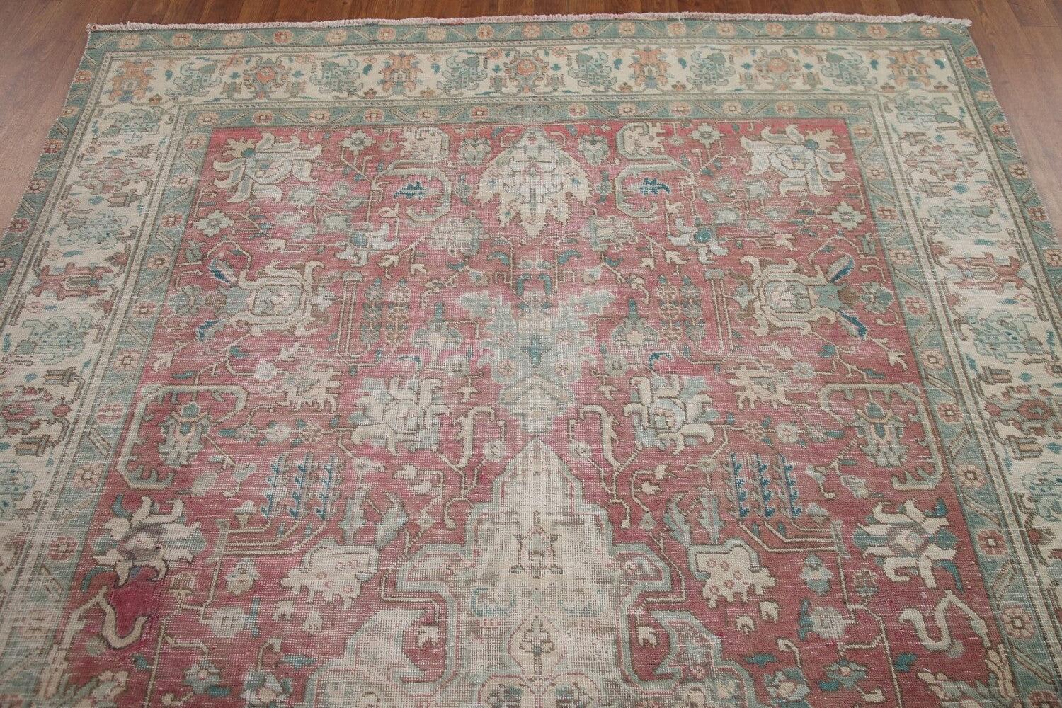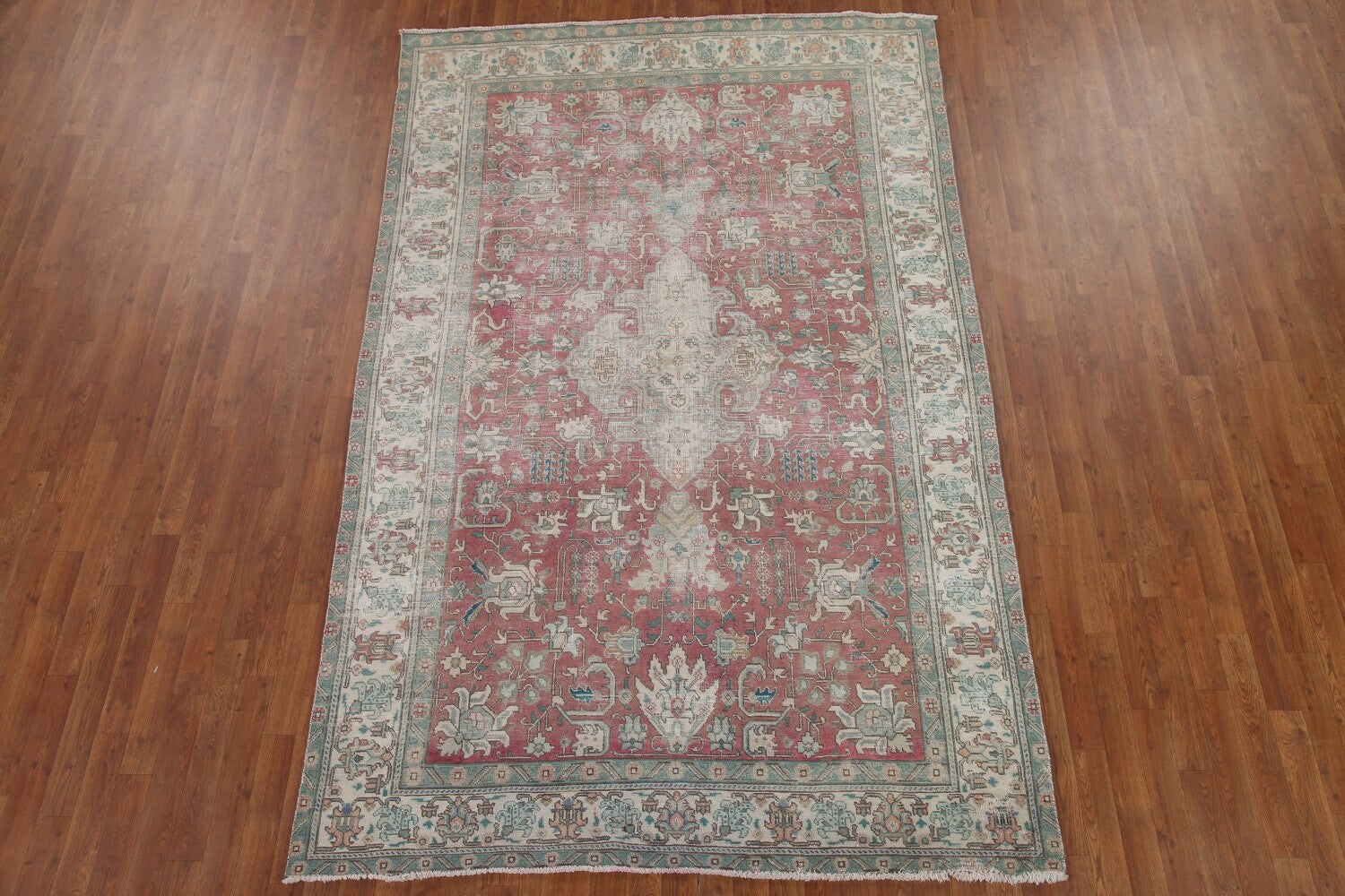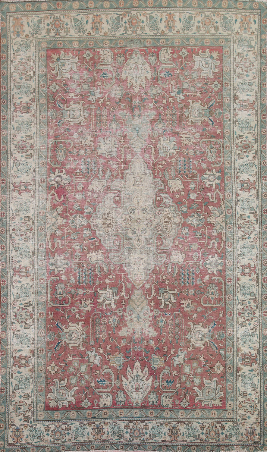 A Beautiful Genuine Persia ( Persia ) Tabriz rug is Hand Knotted by skillful weavers in Persia ( Persia ) with 100% Wool Material. This rug is in Very Good (Evenly Low Pile-Repair) condition. dimensions are 9' 7'' X 6' 0'' in foot and 292 X 183 in centimeter. the primary color is Red.