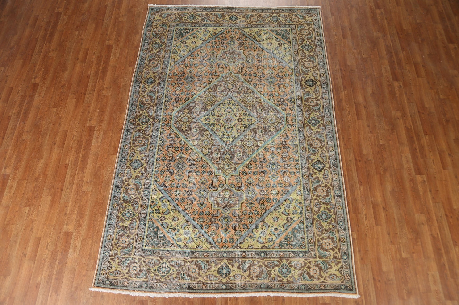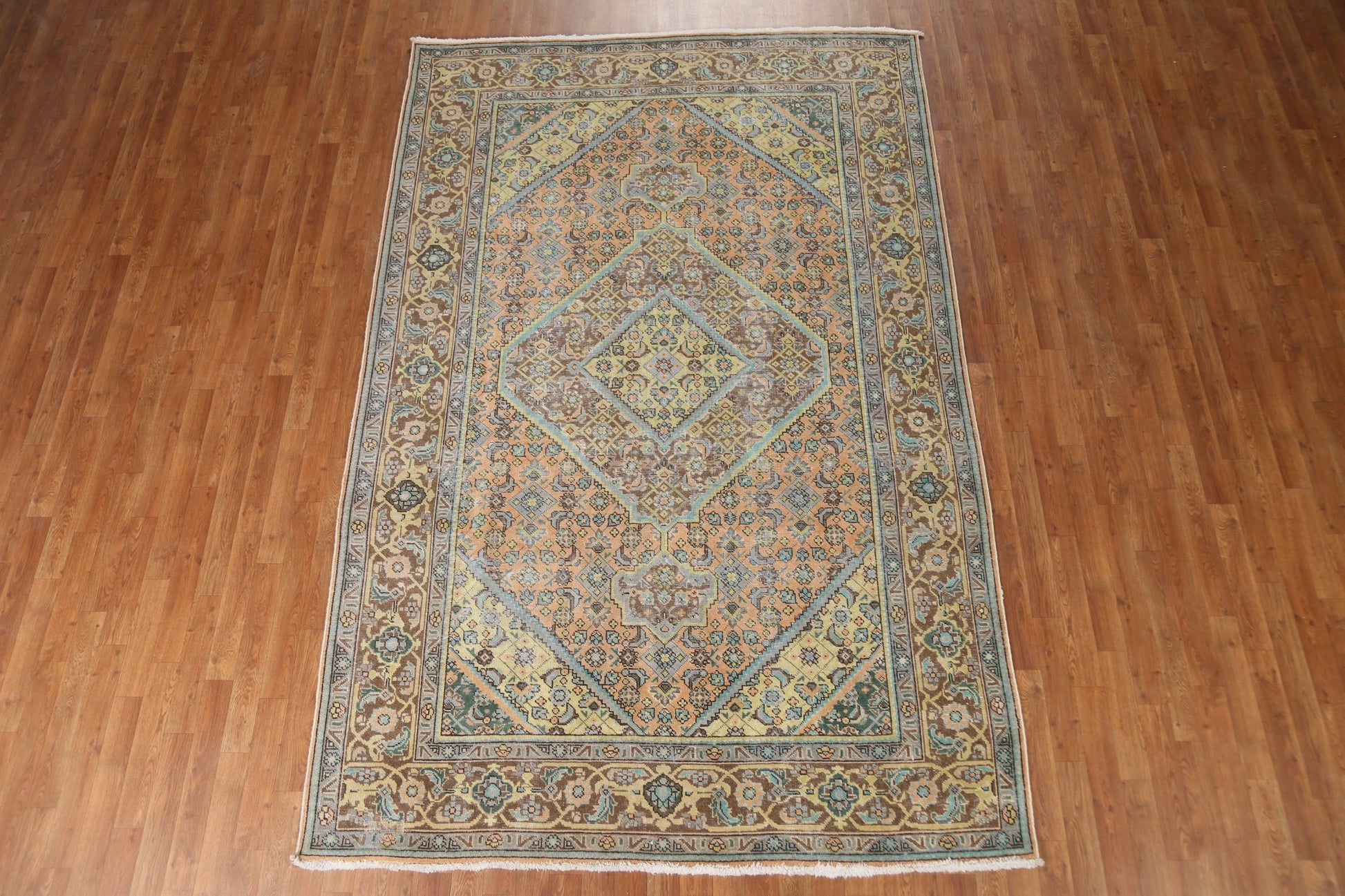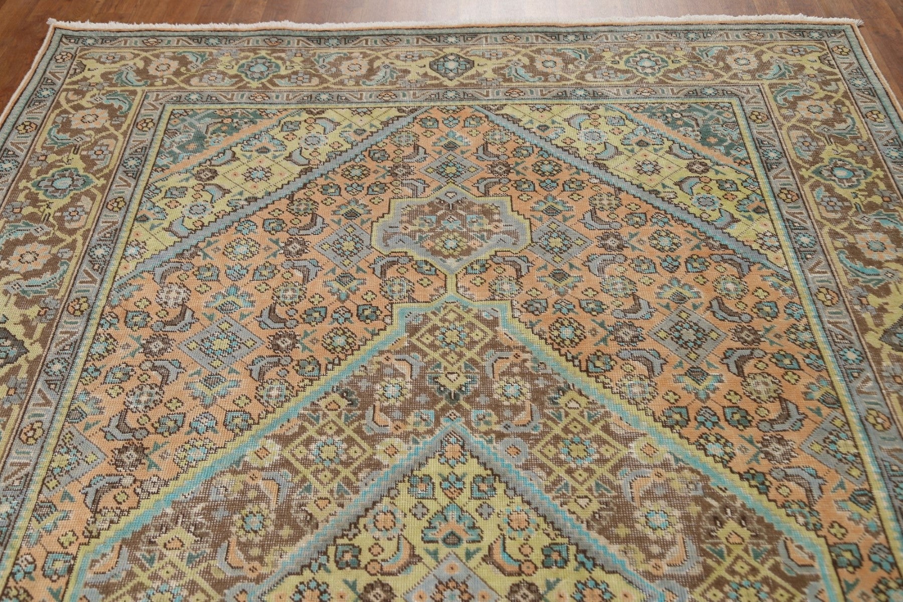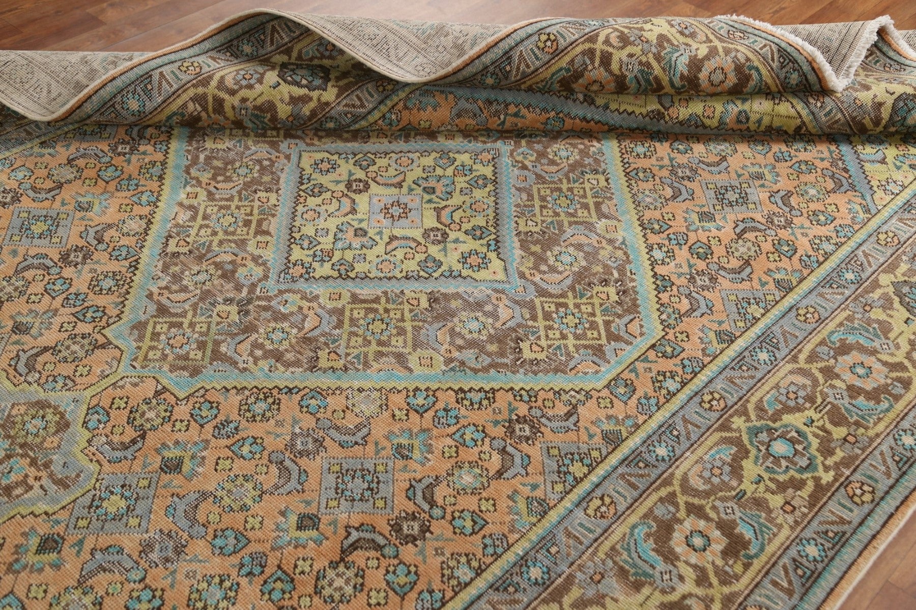 A Beautiful Genuine Persia ( Persia ) Tabriz rug is Hand Knotted by skillful weavers in Persia ( Persia ) with 100% Wool Material. This rug is in Very Good (Evenly Low Pile) condition. dimensions are 9' 11'' X 6' 5'' in foot and 302 X 196 in centimeter. the primary color is Peach.