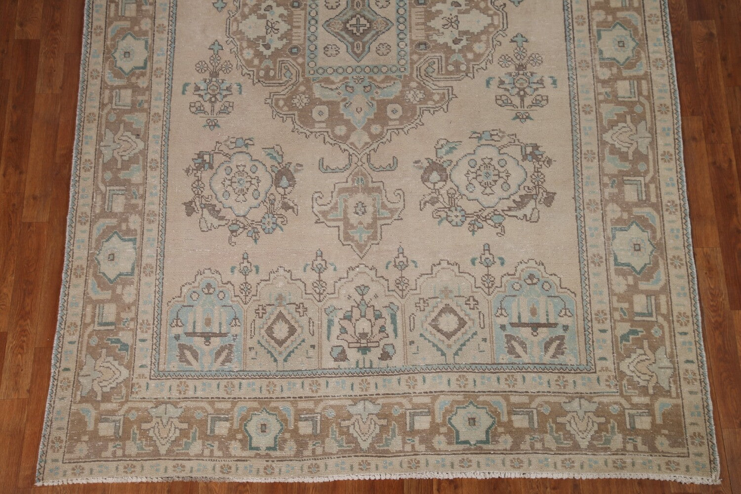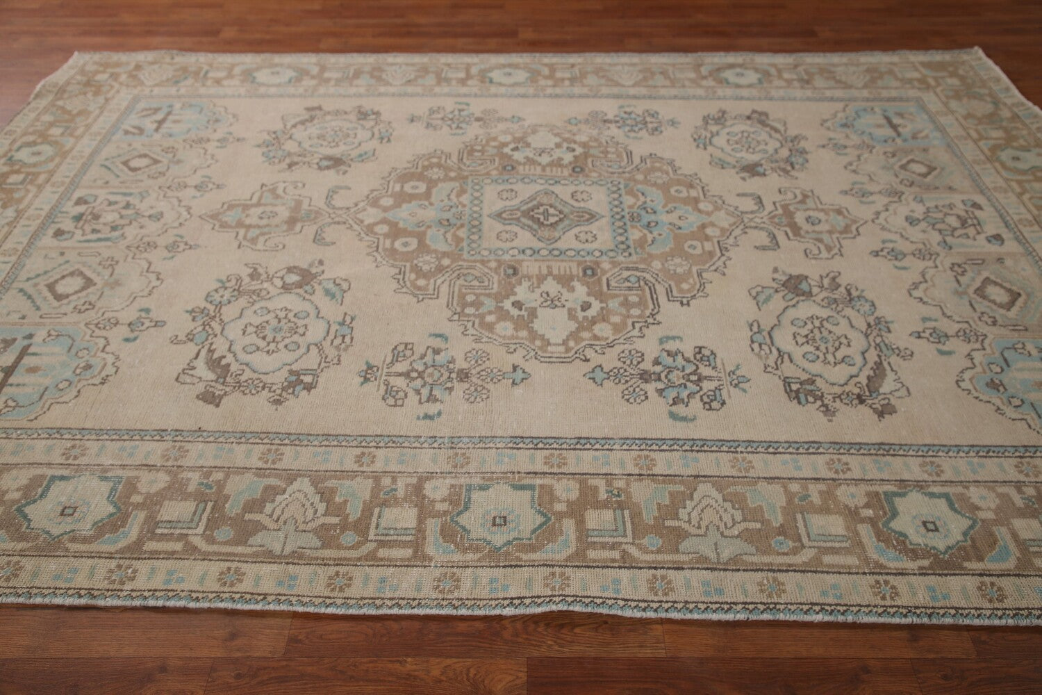 A Beautiful Genuine Persia ( Persia ) Tabriz rug is Hand Knotted by skillful weavers in Persia ( Persia ) with 100% Wool Material. This rug is in Very Good (Evenly Low Pile) condition. dimensions are 9' 5'' X 6' 5'' in foot and 287 X 196 in centimeter. the primary color is Beige & Ivories.