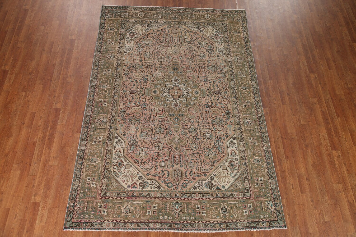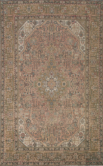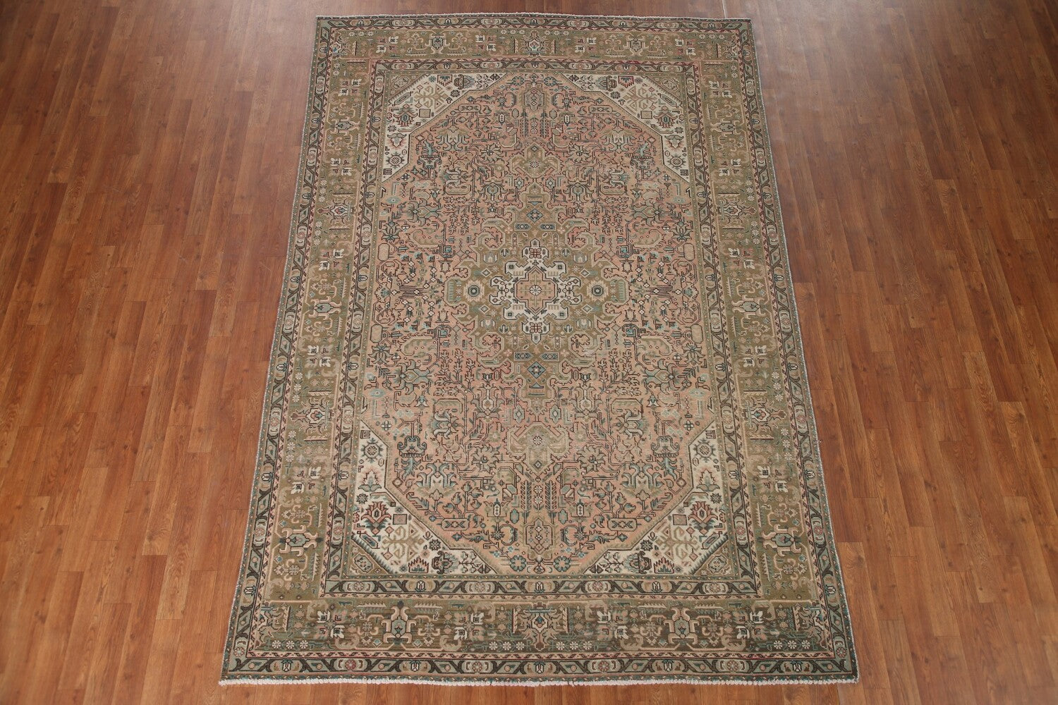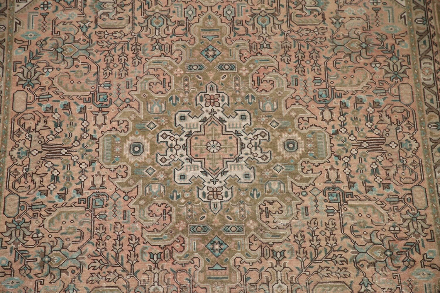A Beautiful Genuine Persia ( Persia ) Tabriz rug is Hand Knotted by skillful weavers in Persia ( Persia ) with 100% Wool Material. This rug is in Very Good (Evenly Low Pile) condition. dimensions are 9' 5'' X 6' 4'' in foot and 287 X 193 in centimeter. the primary color is Pink.