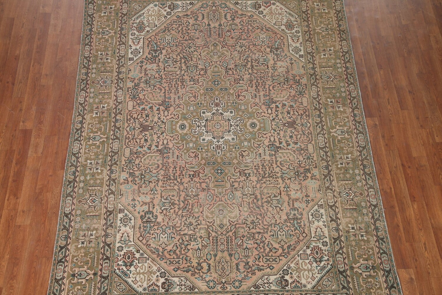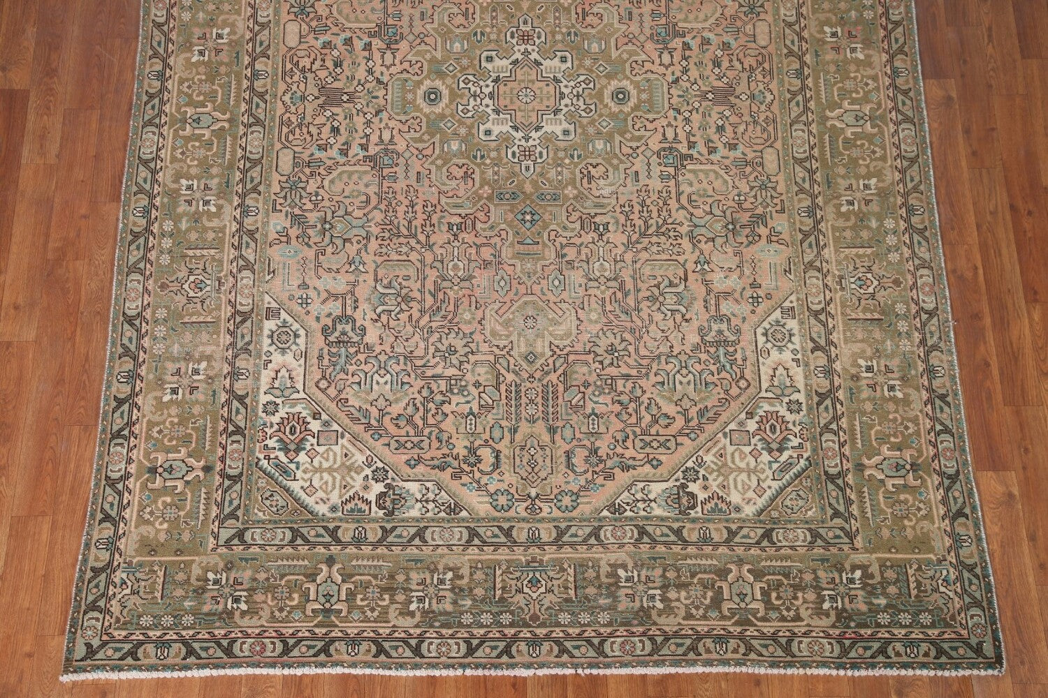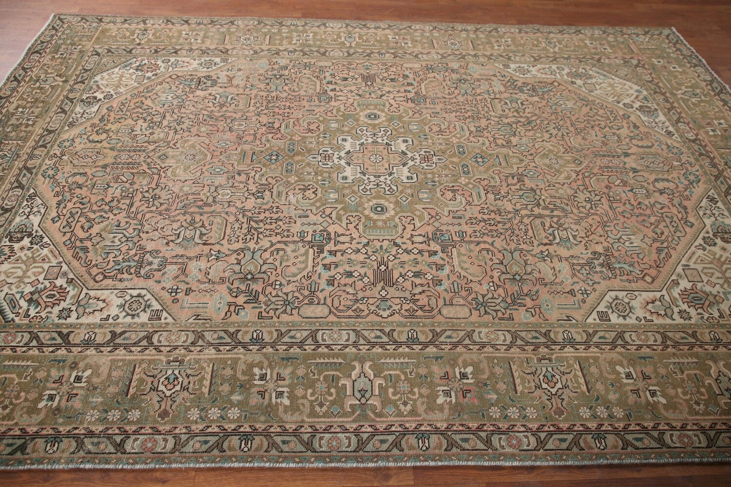 A Beautiful Genuine Persia ( Persia ) Tabriz rug is Hand Knotted by skillful weavers in Persia ( Persia ) with 100% Wool Material. This rug is in Very Good (Evenly Low Pile) condition. dimensions are 9' 5'' X 6' 4'' in foot and 287 X 193 in centimeter. the primary color is Pink.