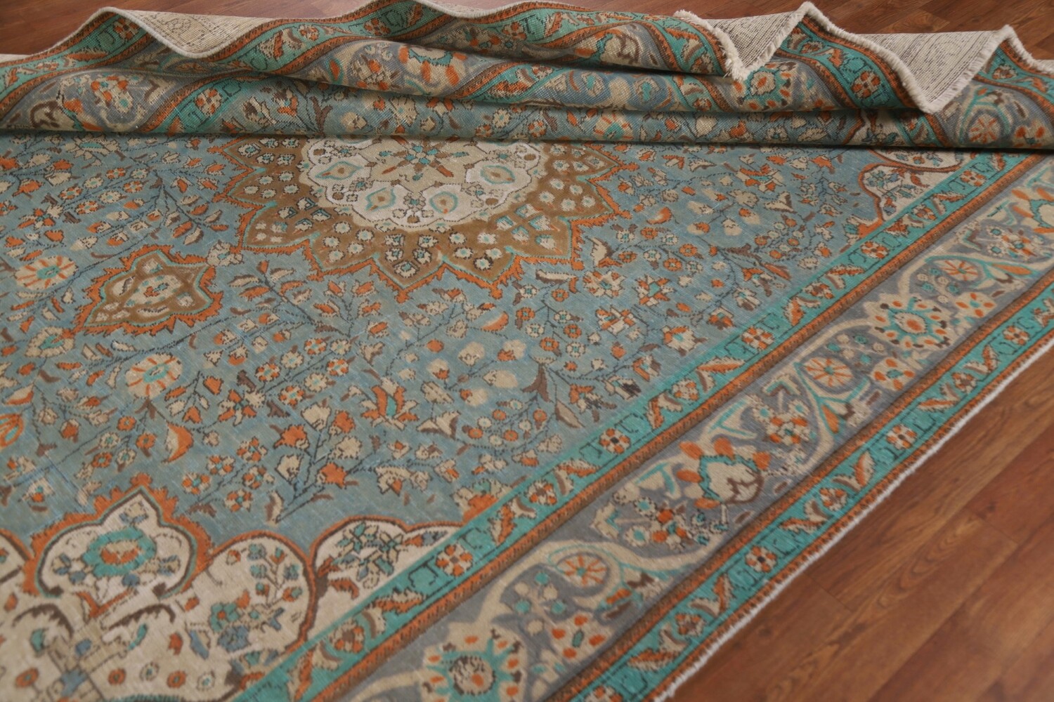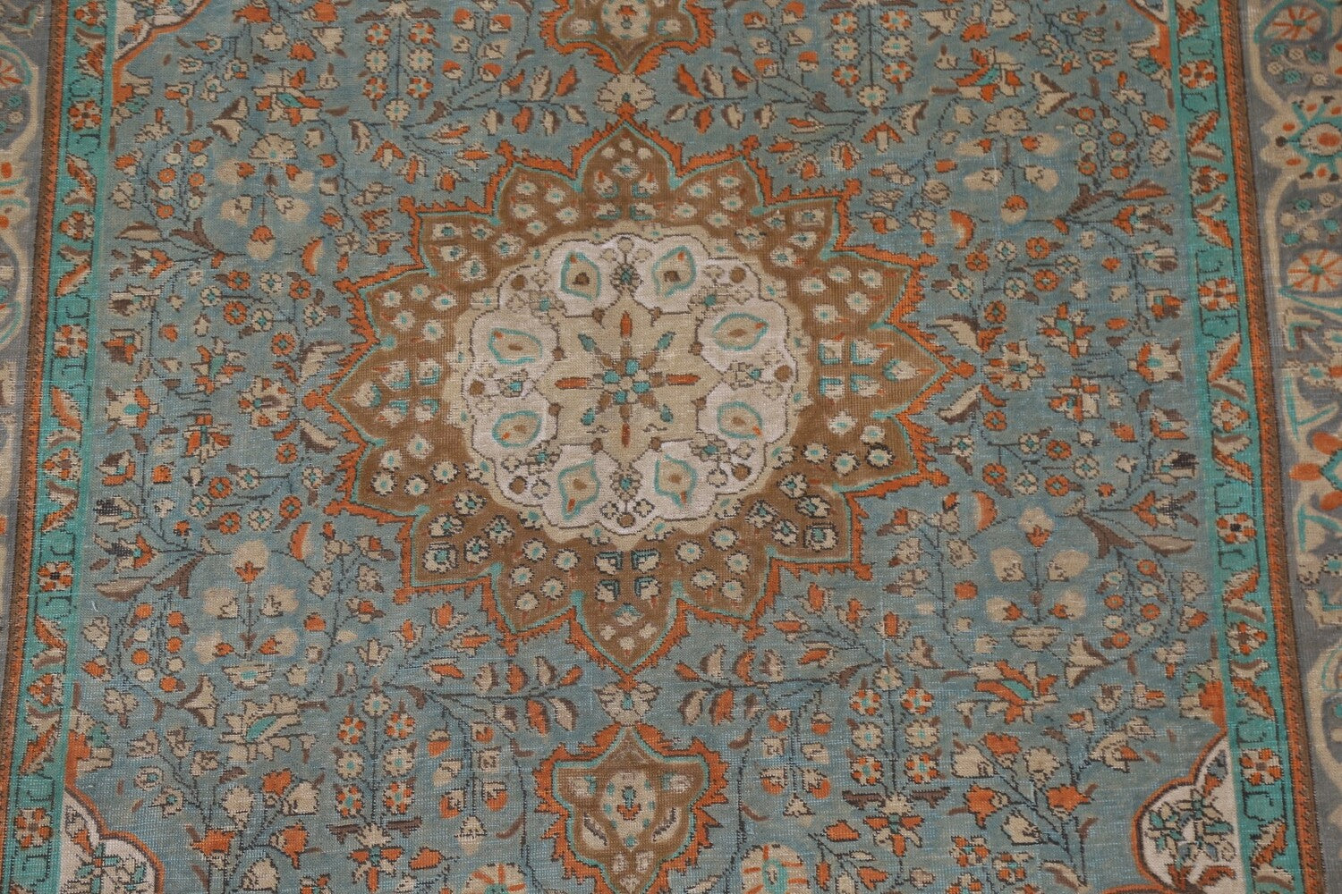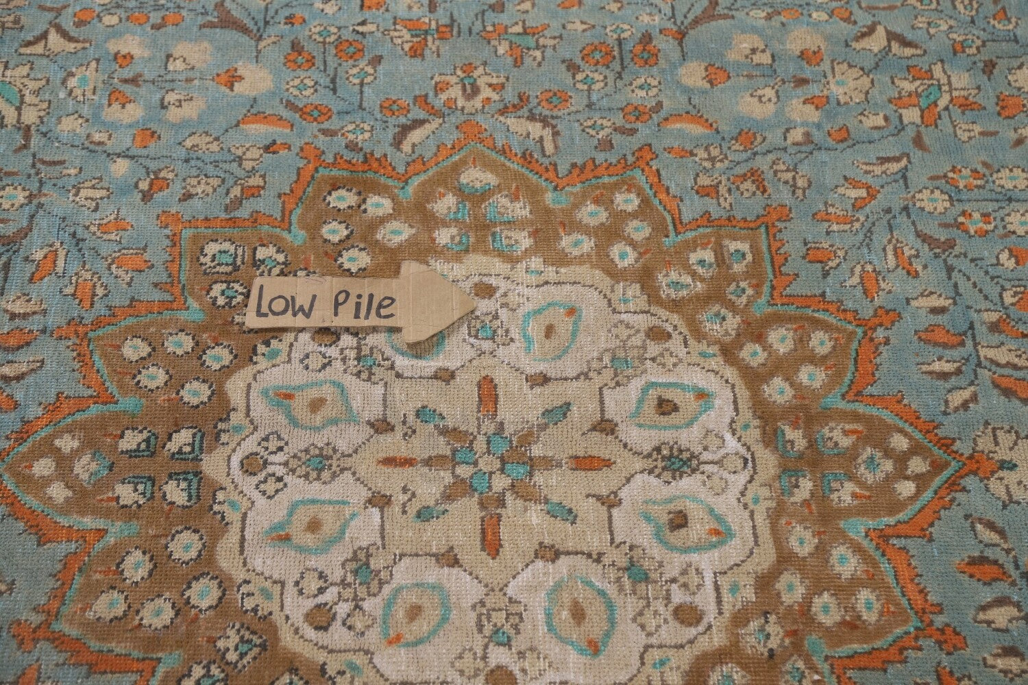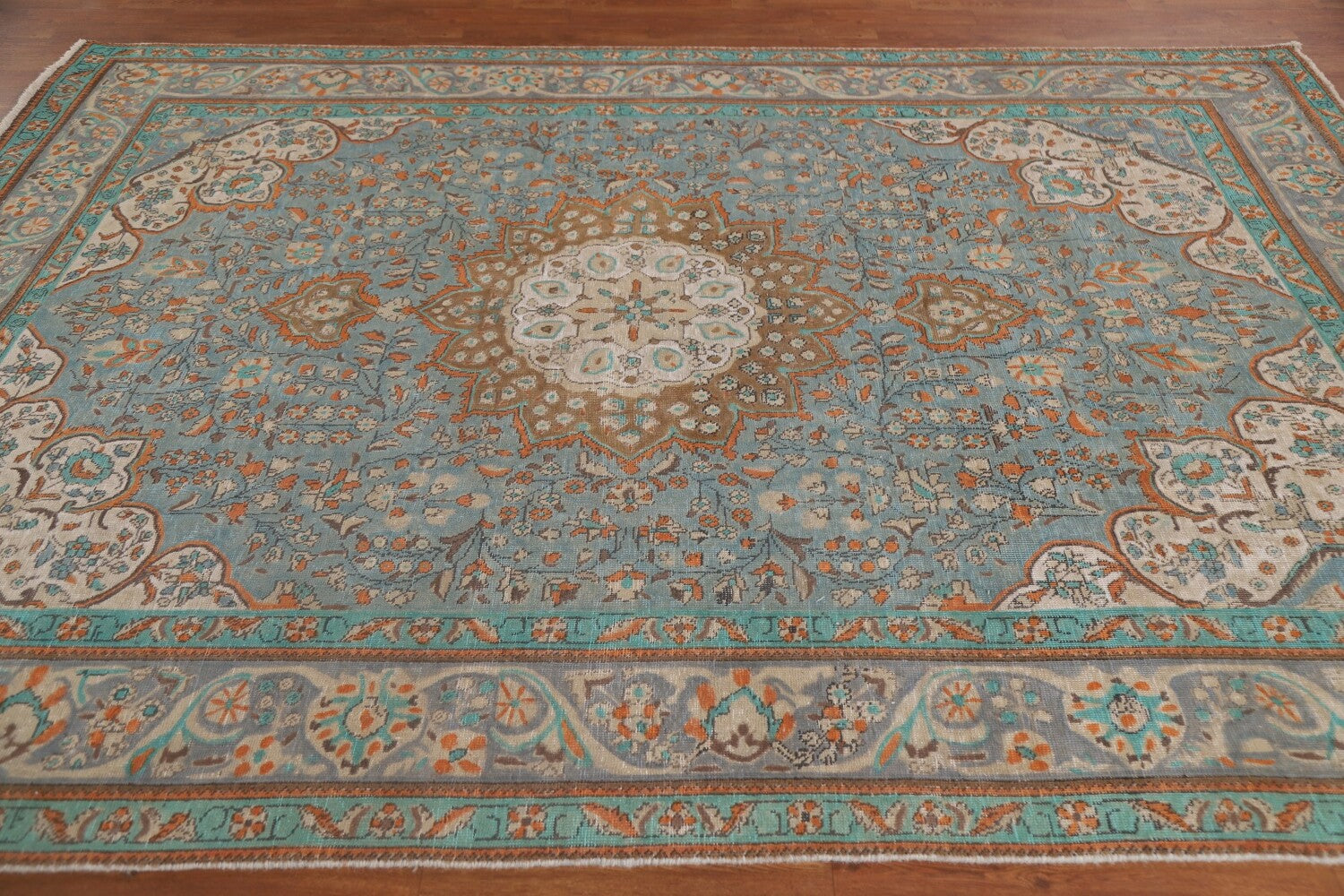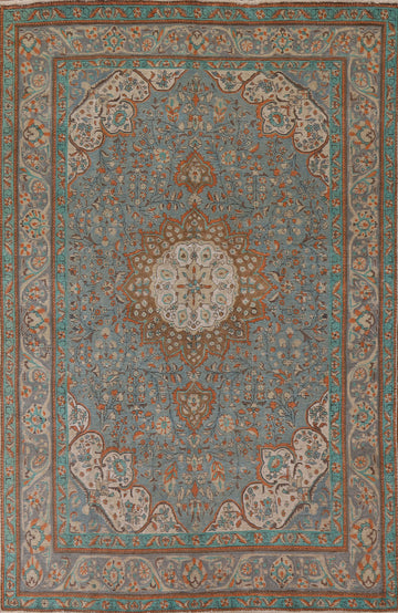 A Beautiful Genuine Persia ( Persia ) Tabriz rug is Hand Knotted by skillful weavers in Persia ( Persia ) with 100% Wool Material. This rug is in Very Good (Low Pile) condition. dimensions are 9' 6'' X 6' 8'' in foot and 290 X 203 in centimeter. the primary color is Navy Blue & Blues.