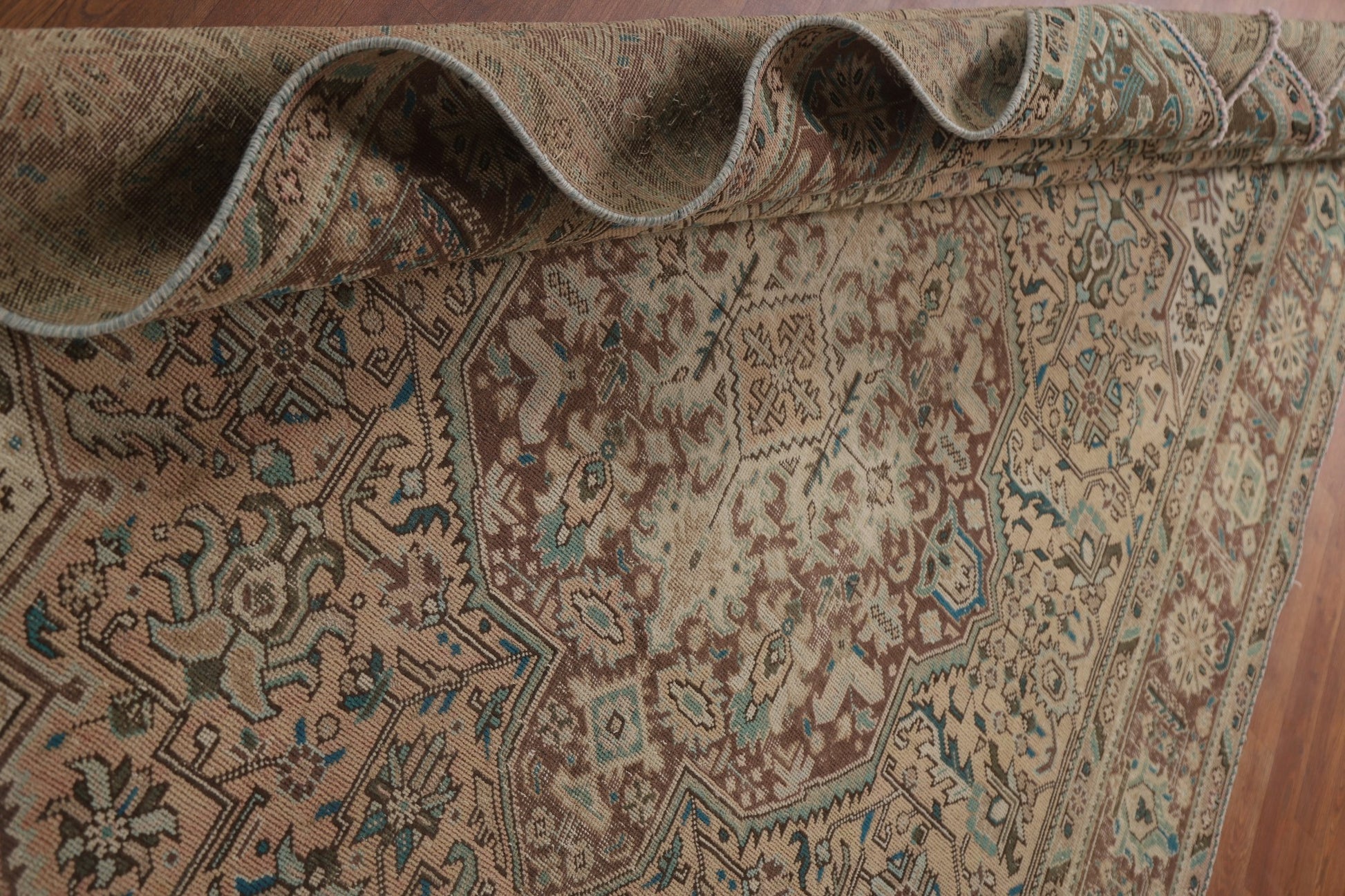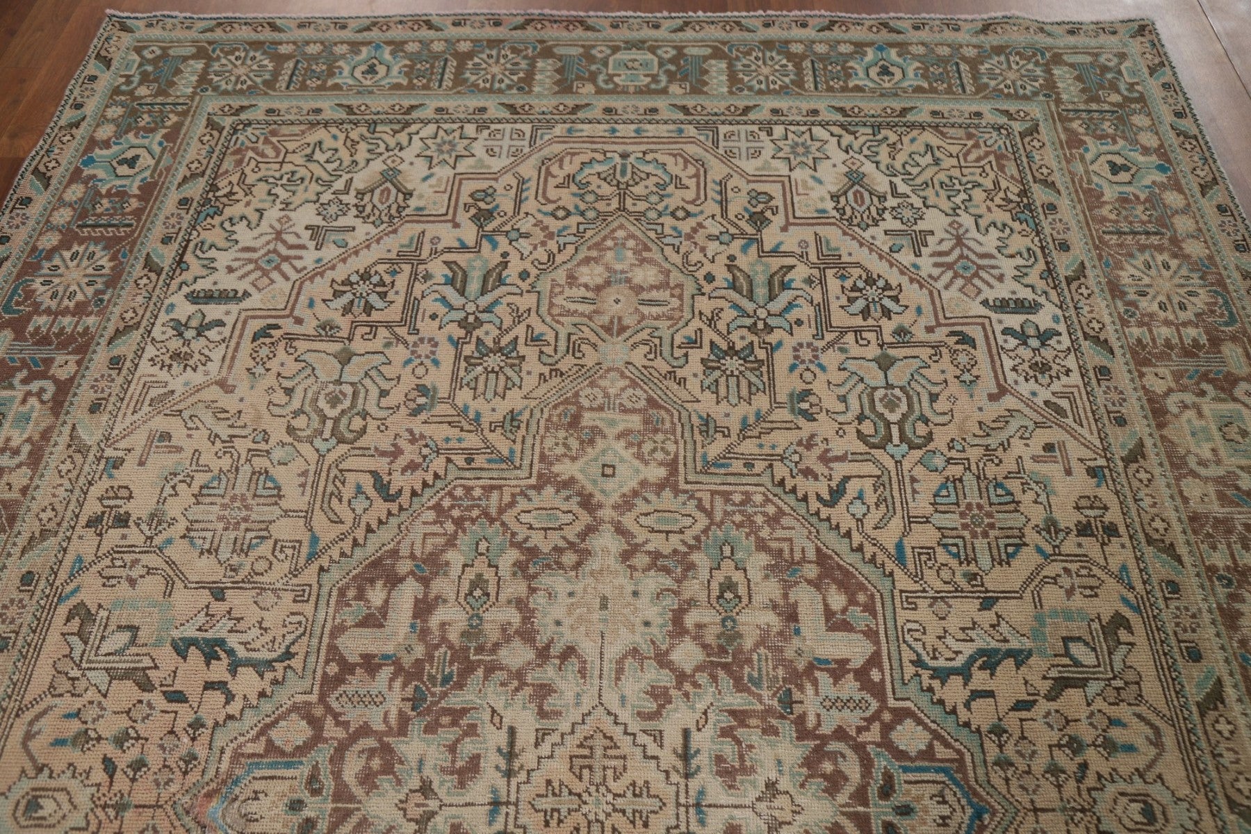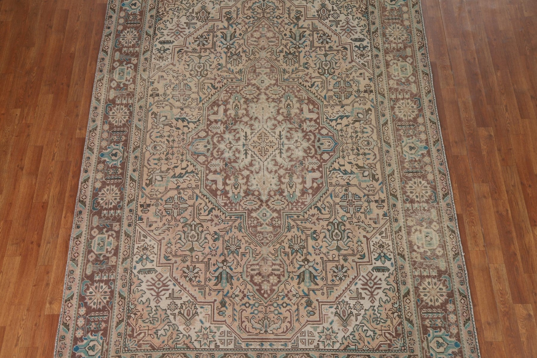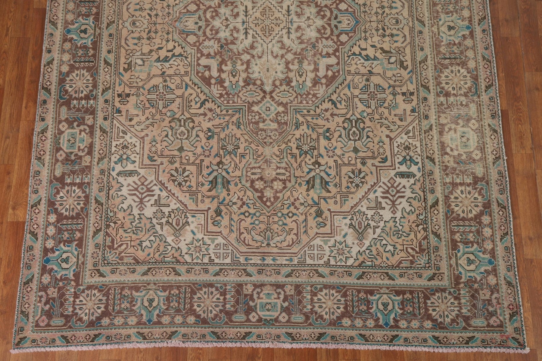 A Beautiful Genuine Persia ( Persia ) Tabriz rug is Hand Knotted by skillful weavers in Persia ( Persia ) with 100% Wool Material. This rug is in Very Good (Evenly Low Pile) condition. dimensions are 9' 7'' X 6' 6'' in foot and 292 X 198 in centimeter. the primary color is Peach.