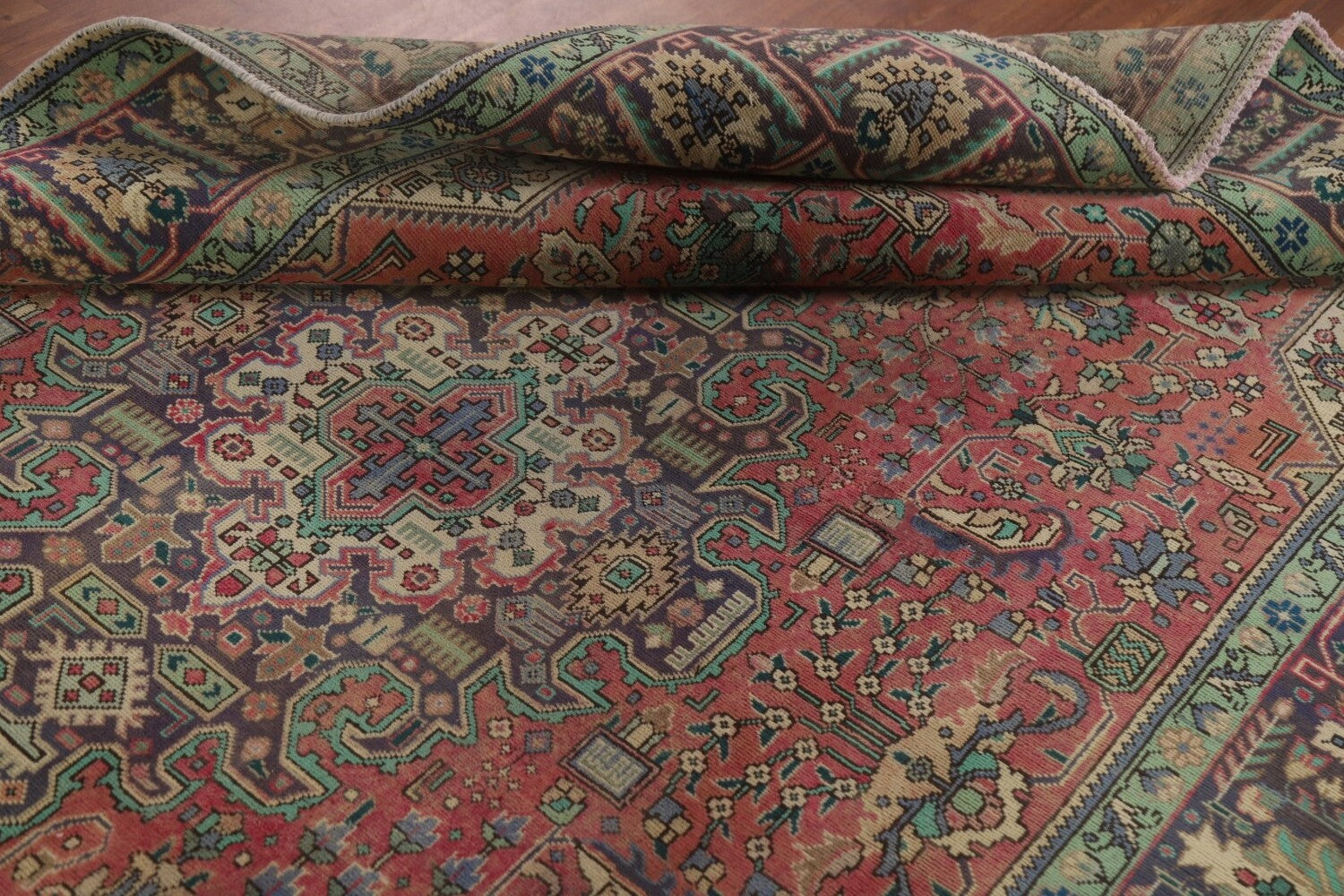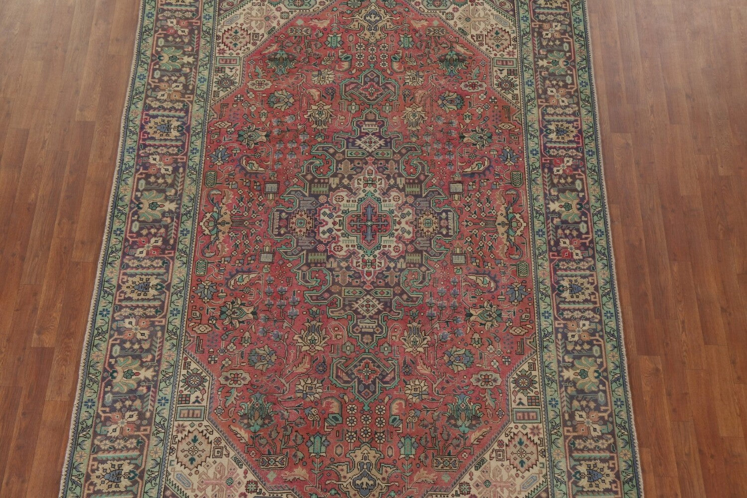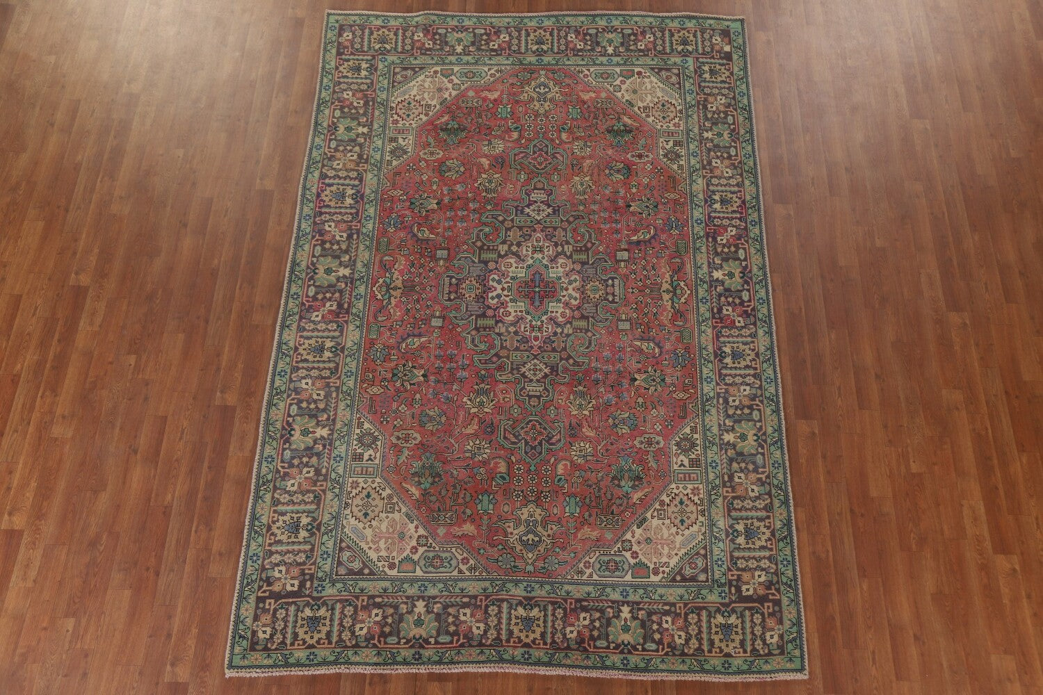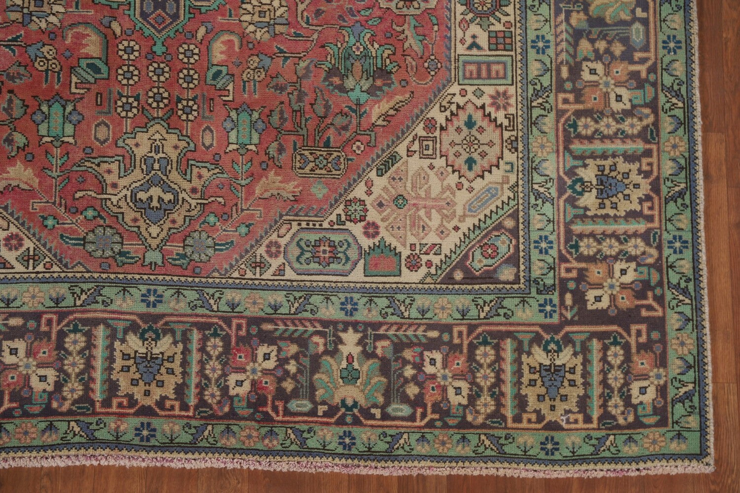 A Beautiful Genuine Persia ( Persia ) Tabriz rug is Hand Knotted by skillful weavers in Persia ( Persia ) with 100% Wool Material. This rug is in Very Good (Repair) condition. dimensions are 9' 10'' X 6' 6'' in foot and 300 X 198 in centimeter. the primary color is Pink.