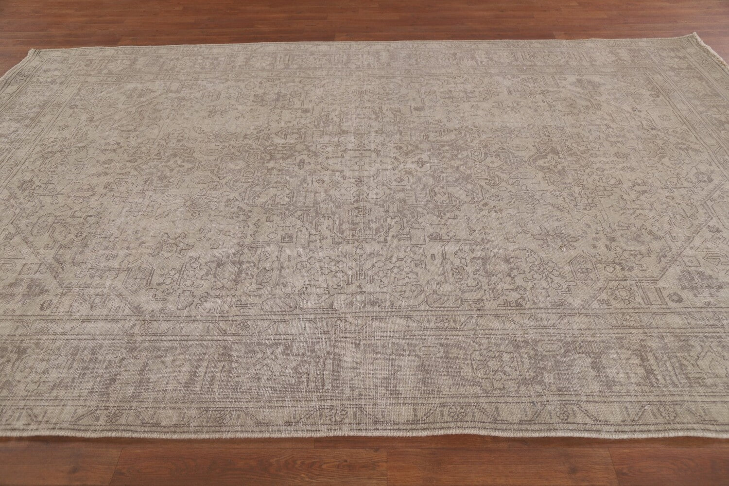 A Beautiful Genuine Persia ( Persia ) Tabriz rug is Hand Knotted by skillful weavers in Persia ( Persia ) with 100% Wool Material. This rug is in Very Good (Evenly Low Pile) condition. dimensions are 9' 8'' X 6' 7'' in foot and 295 X 201 in centimeter. the primary color is Beige & Ivories.