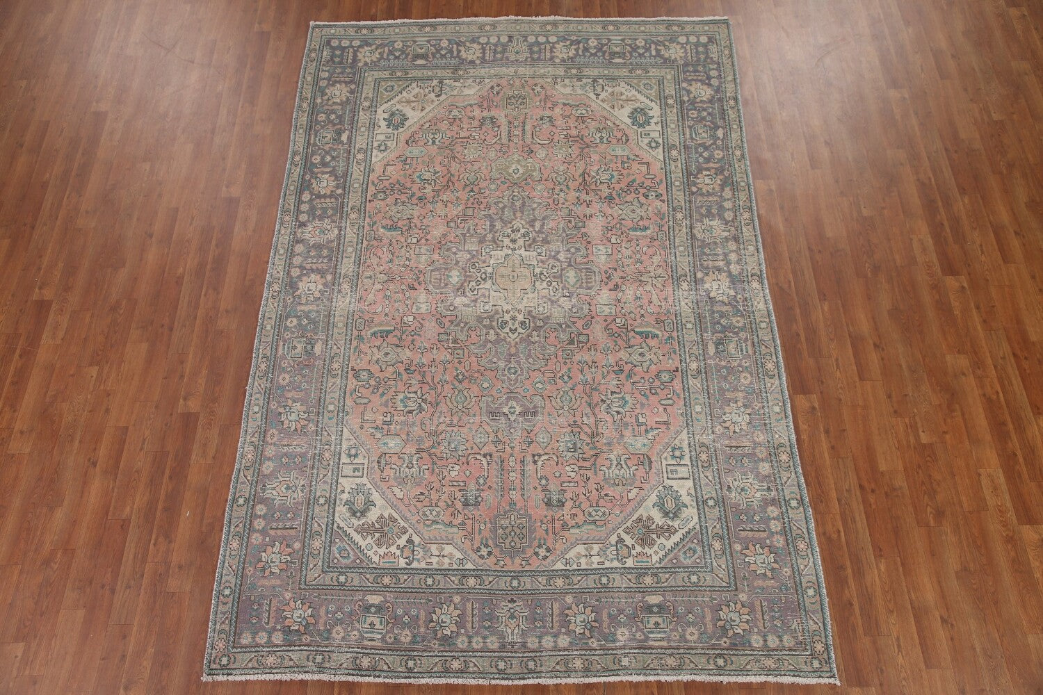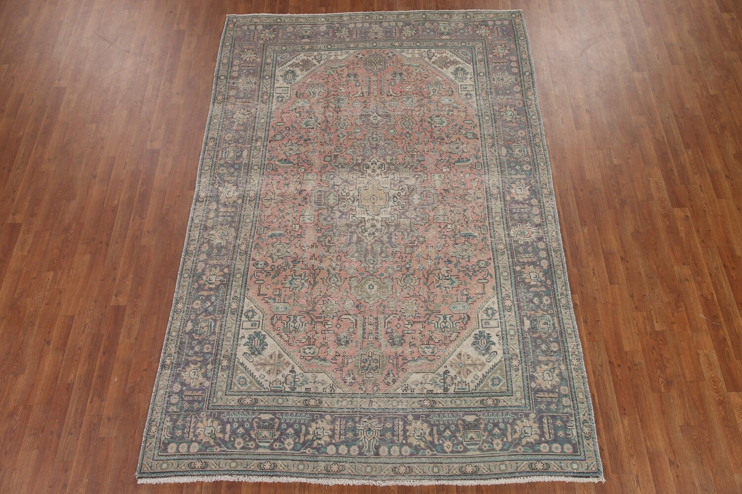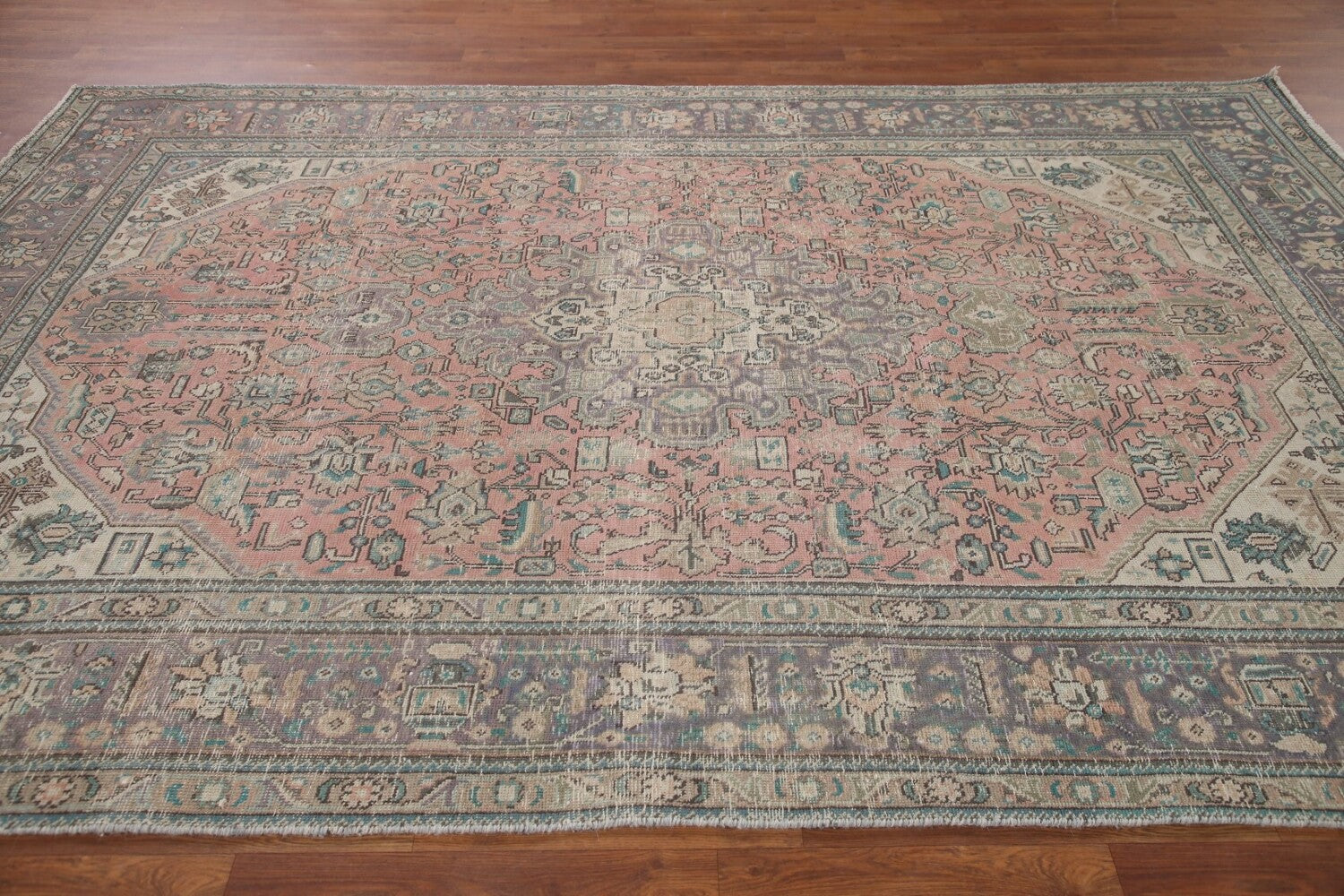 A Beautiful Genuine Persia ( Persia ) Tabriz rug is Hand Knotted by skillful weavers in Persia ( Persia ) with 100% Wool Material. This rug is in Very Good (Evenly Low Pile) condition. dimensions are 9' 9'' X 6' 6'' in foot and 297 X 198 in centimeter. the primary color is Pink.