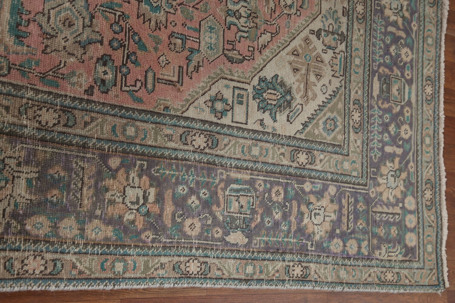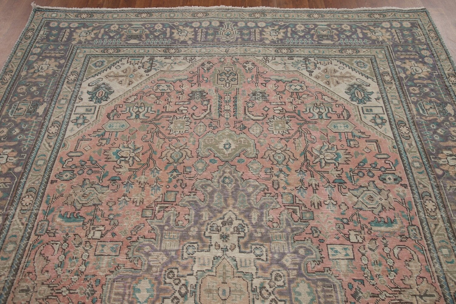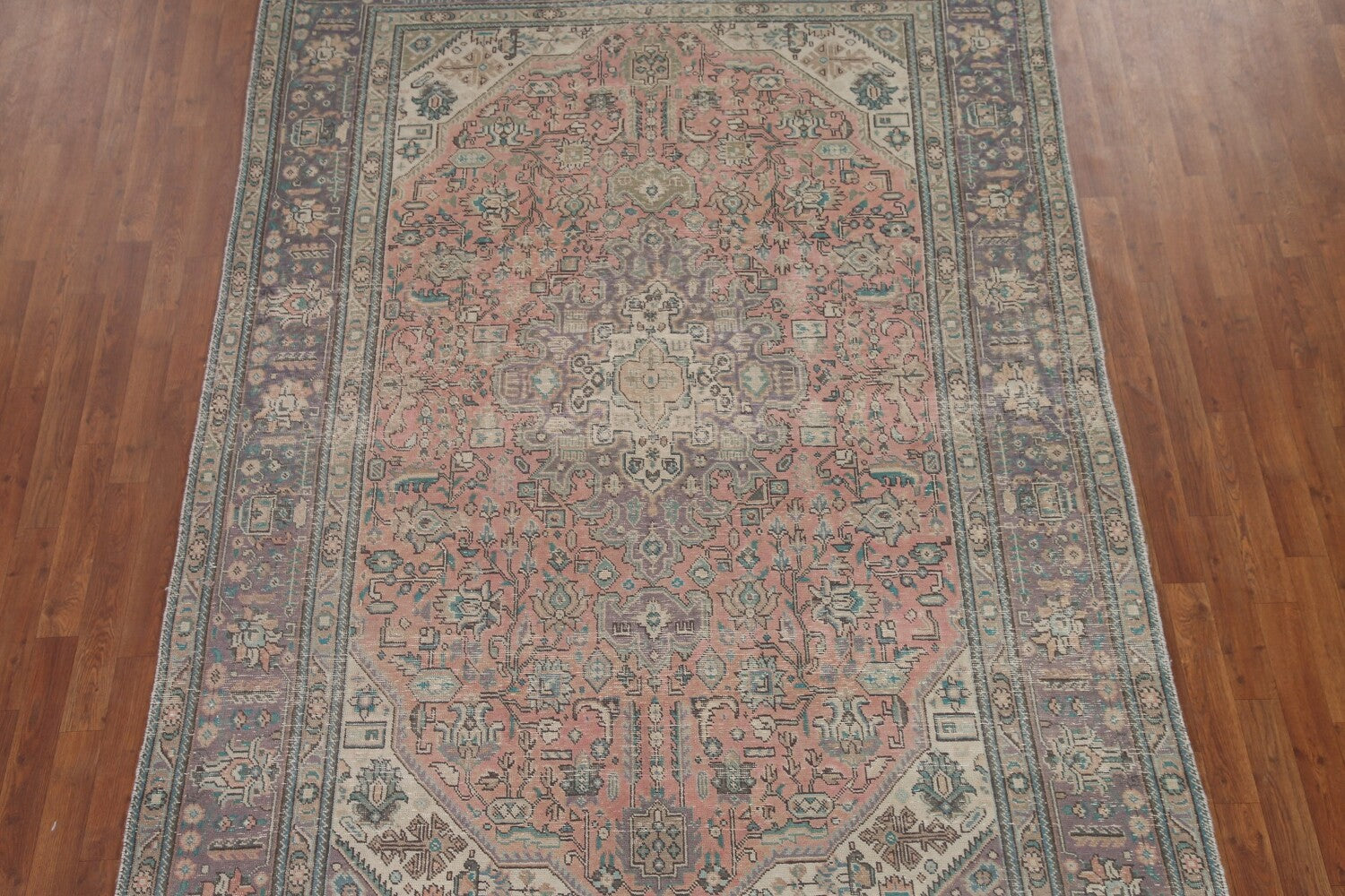 A Beautiful Genuine Persia ( Persia ) Tabriz rug is Hand Knotted by skillful weavers in Persia ( Persia ) with 100% Wool Material. This rug is in Very Good (Evenly Low Pile) condition. dimensions are 9' 9'' X 6' 6'' in foot and 297 X 198 in centimeter. the primary color is Pink.
