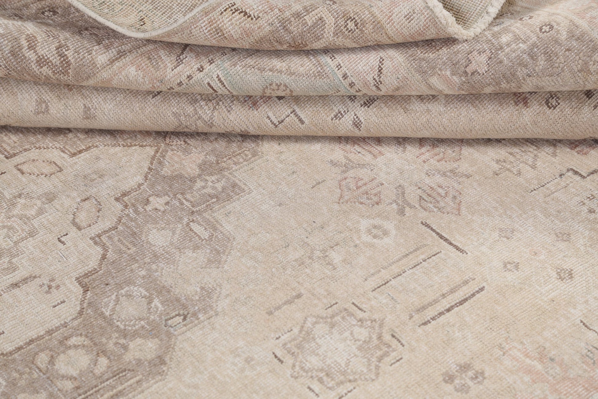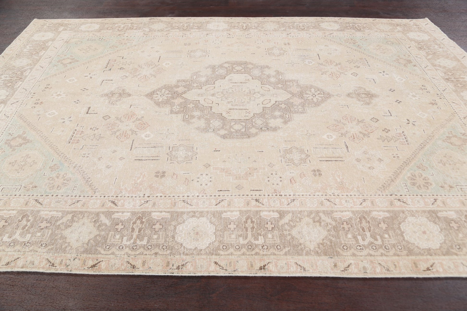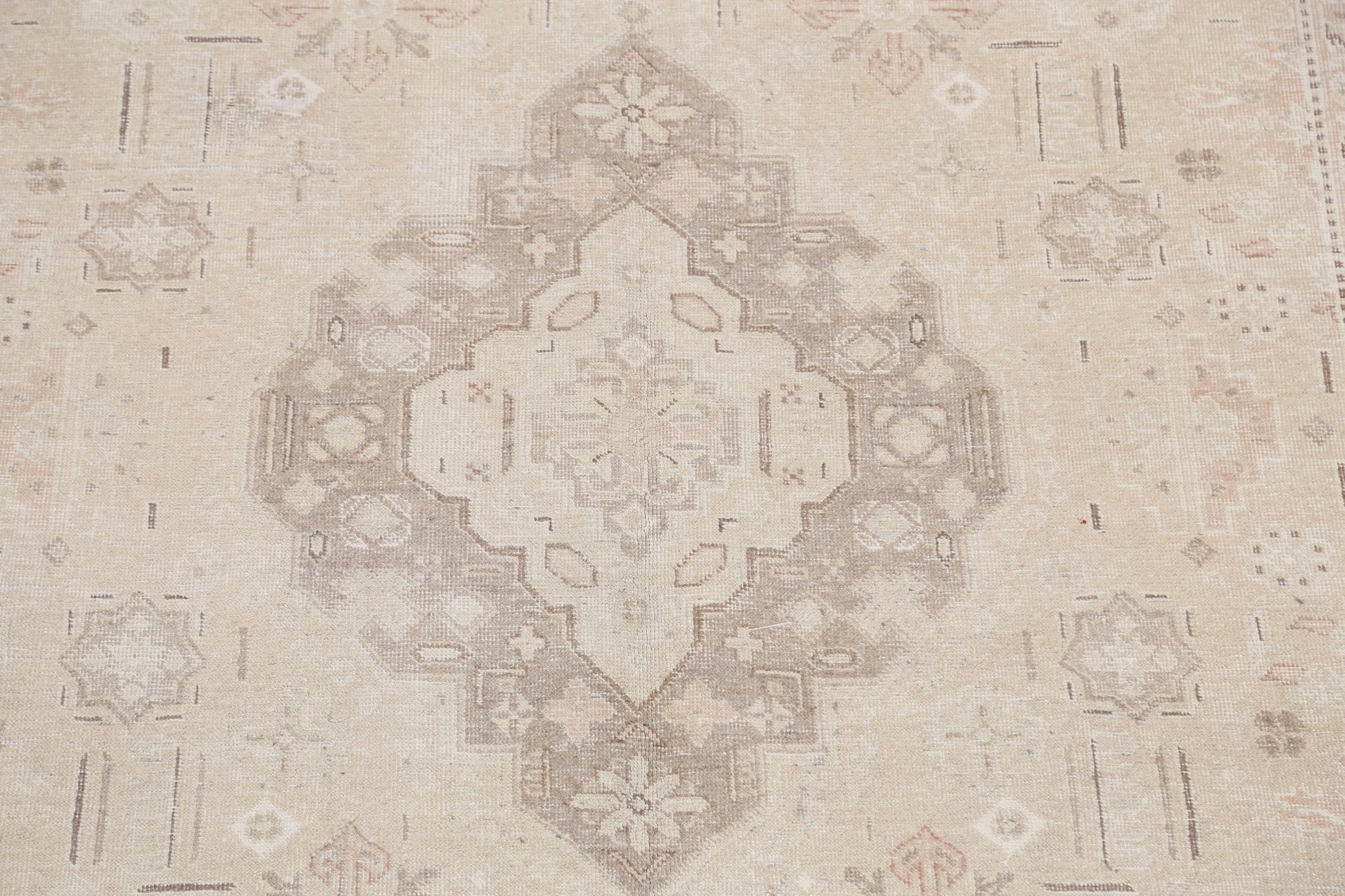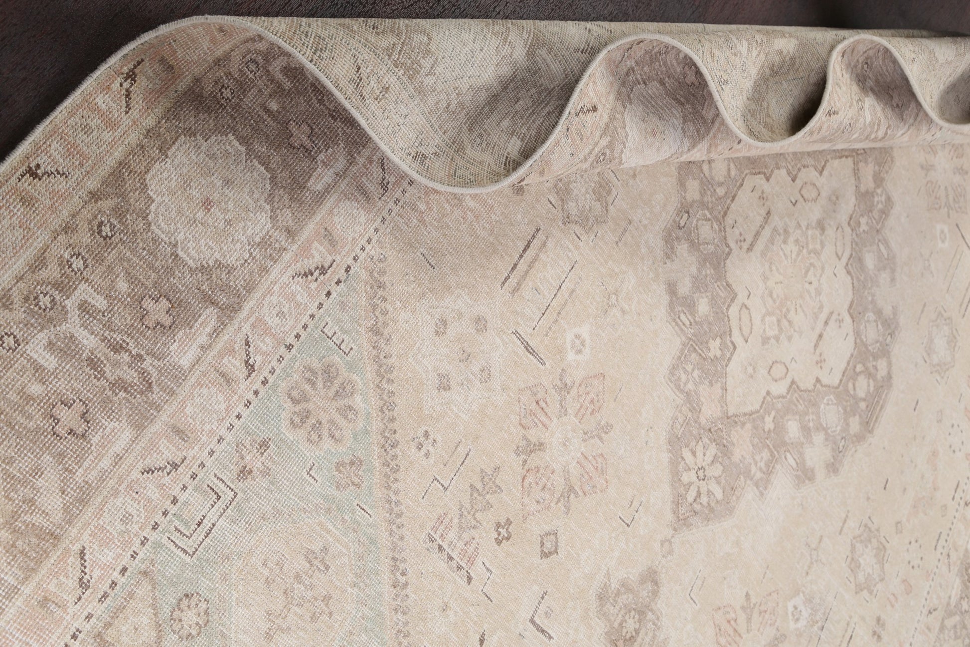 A Beautiful Genuine Persia ( Persia ) Tabriz rug is Hand Knotted by skillful weavers in Persia ( Persia ) with 100% Wool Material. This rug is in Very Good (Evenly Low Pile) condition. dimensions are 9' 8'' X 6' 8'' in foot and 295 X 203 in centimeter. the primary color is Beige & Ivories.
