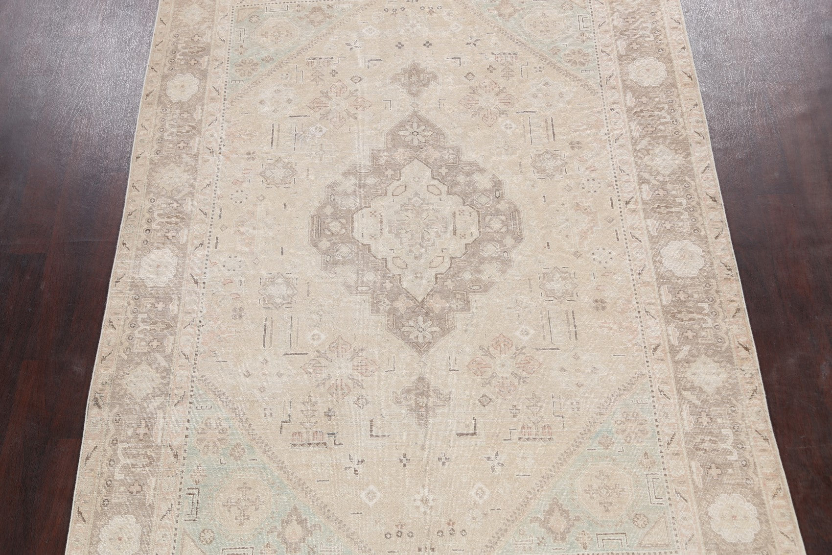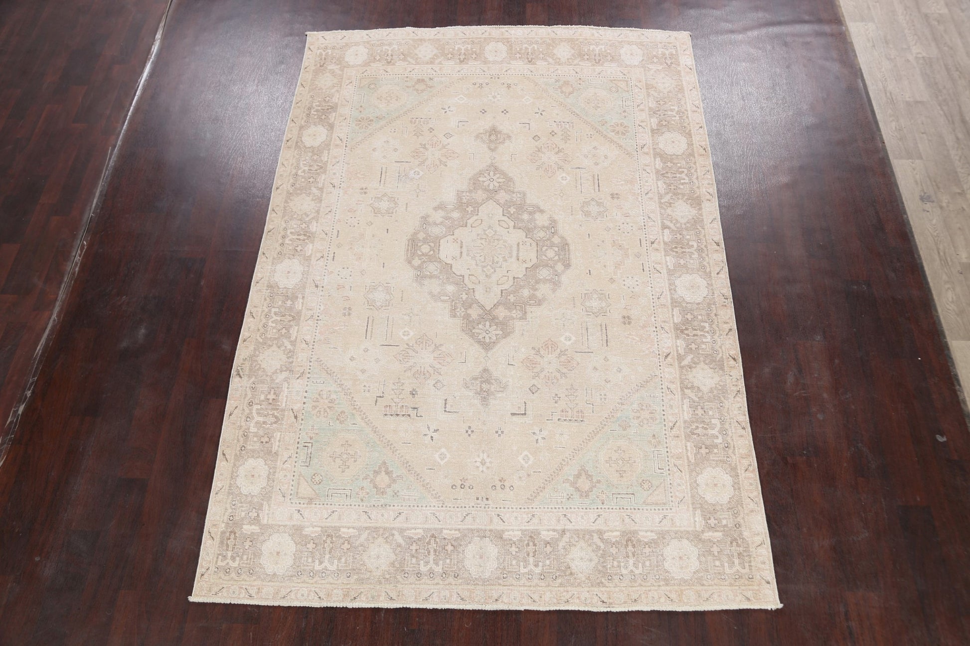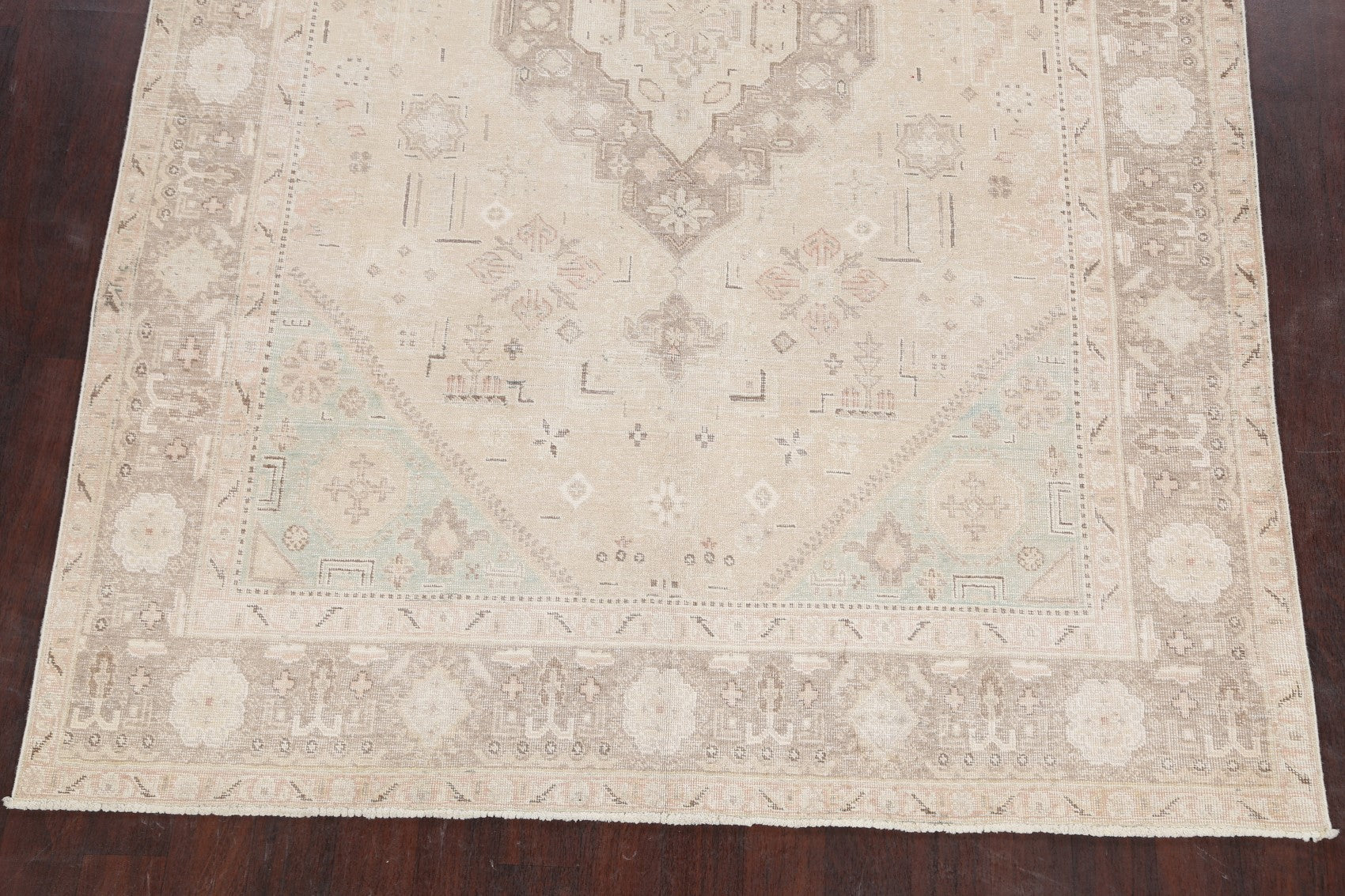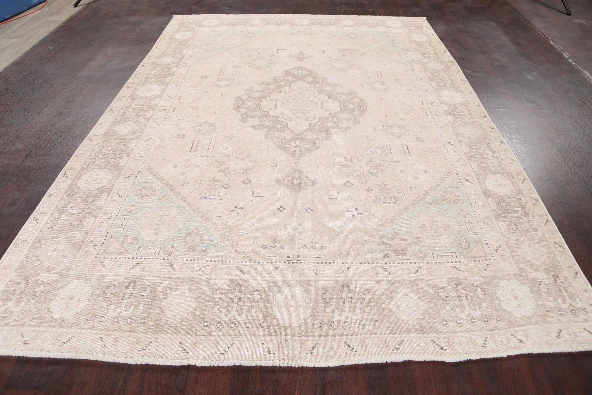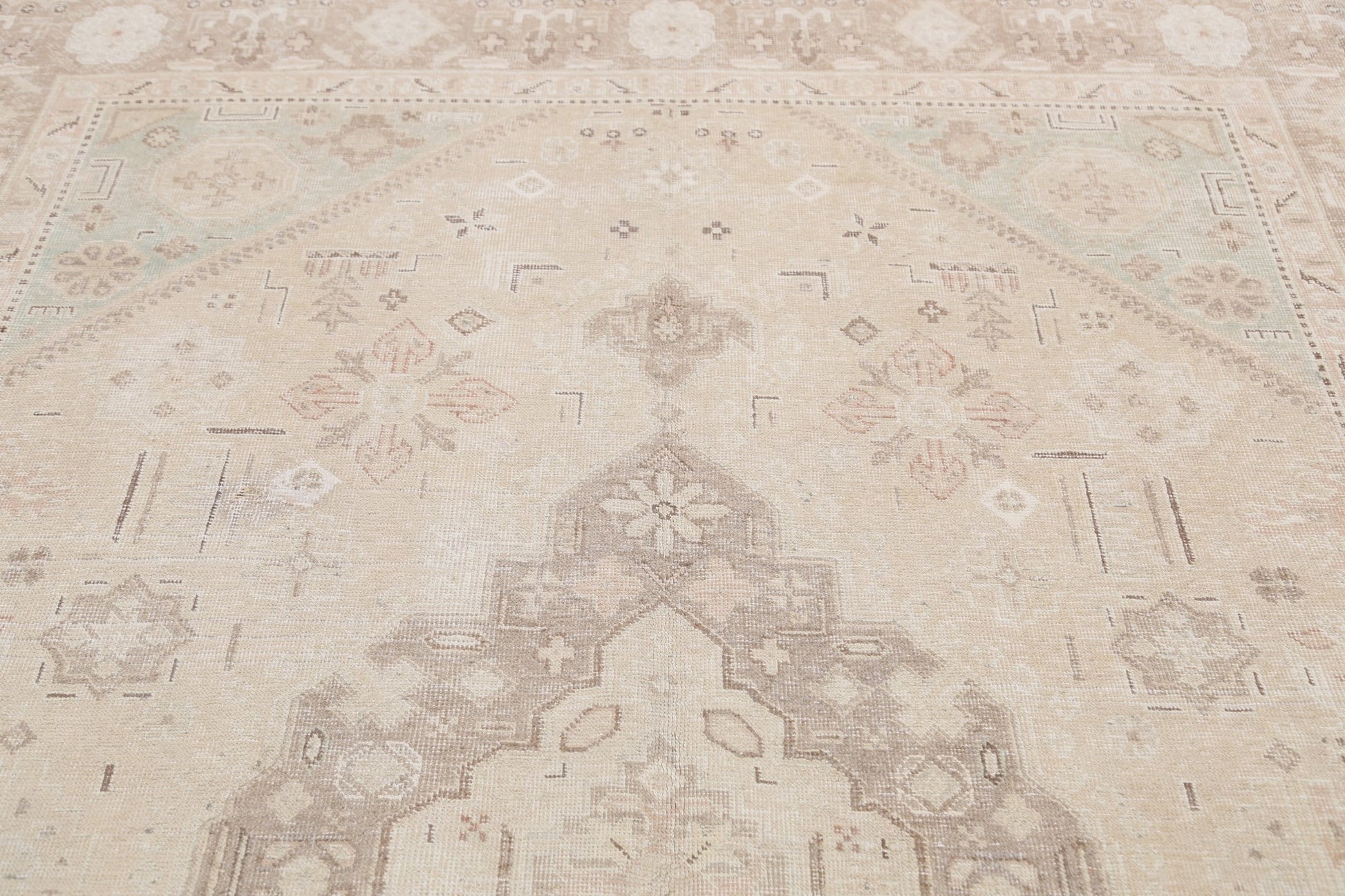 A Beautiful Genuine Persia ( Persia ) Tabriz rug is Hand Knotted by skillful weavers in Persia ( Persia ) with 100% Wool Material. This rug is in Very Good (Evenly Low Pile) condition. dimensions are 9' 8'' X 6' 8'' in foot and 295 X 203 in centimeter. the primary color is Beige & Ivories.
