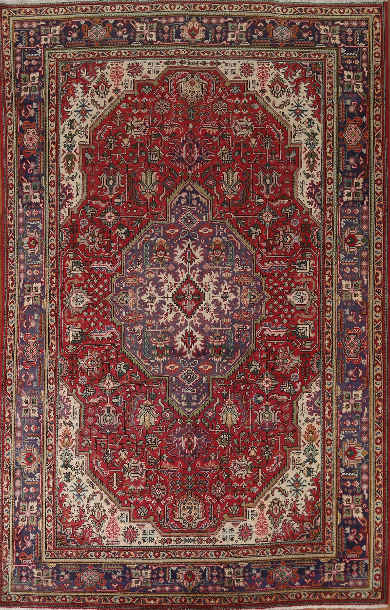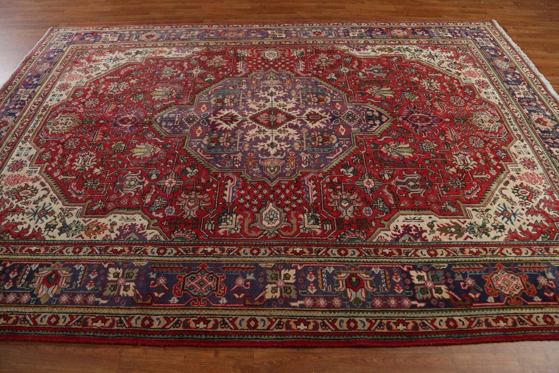 A Beautiful Genuine Persia ( Persia ) Tabriz rug is Hand Knotted by skillful weavers in Persia ( Persia ) with 100% Wool Material. This rug is in Very Good condition. dimensions are 9' 9'' X 6' 7'' in foot and 297 X 201 in centimeter. the primary color is Red.