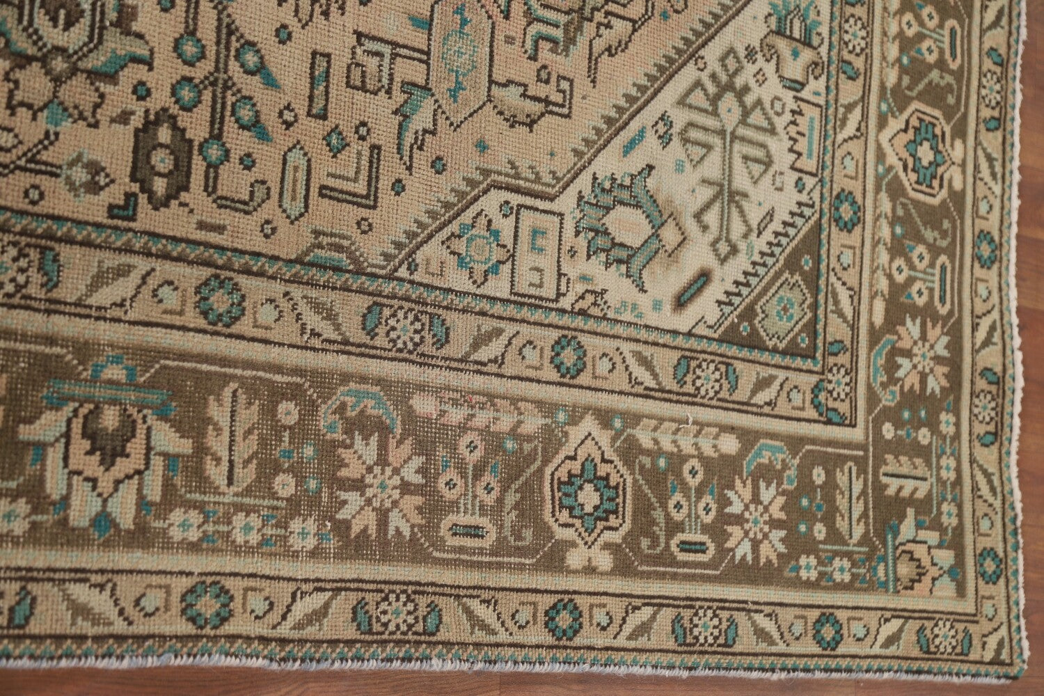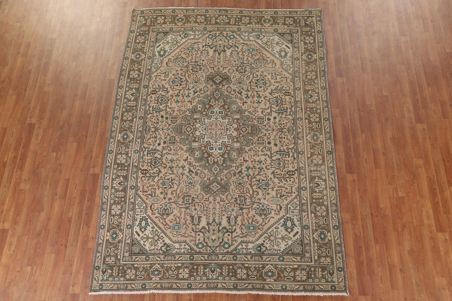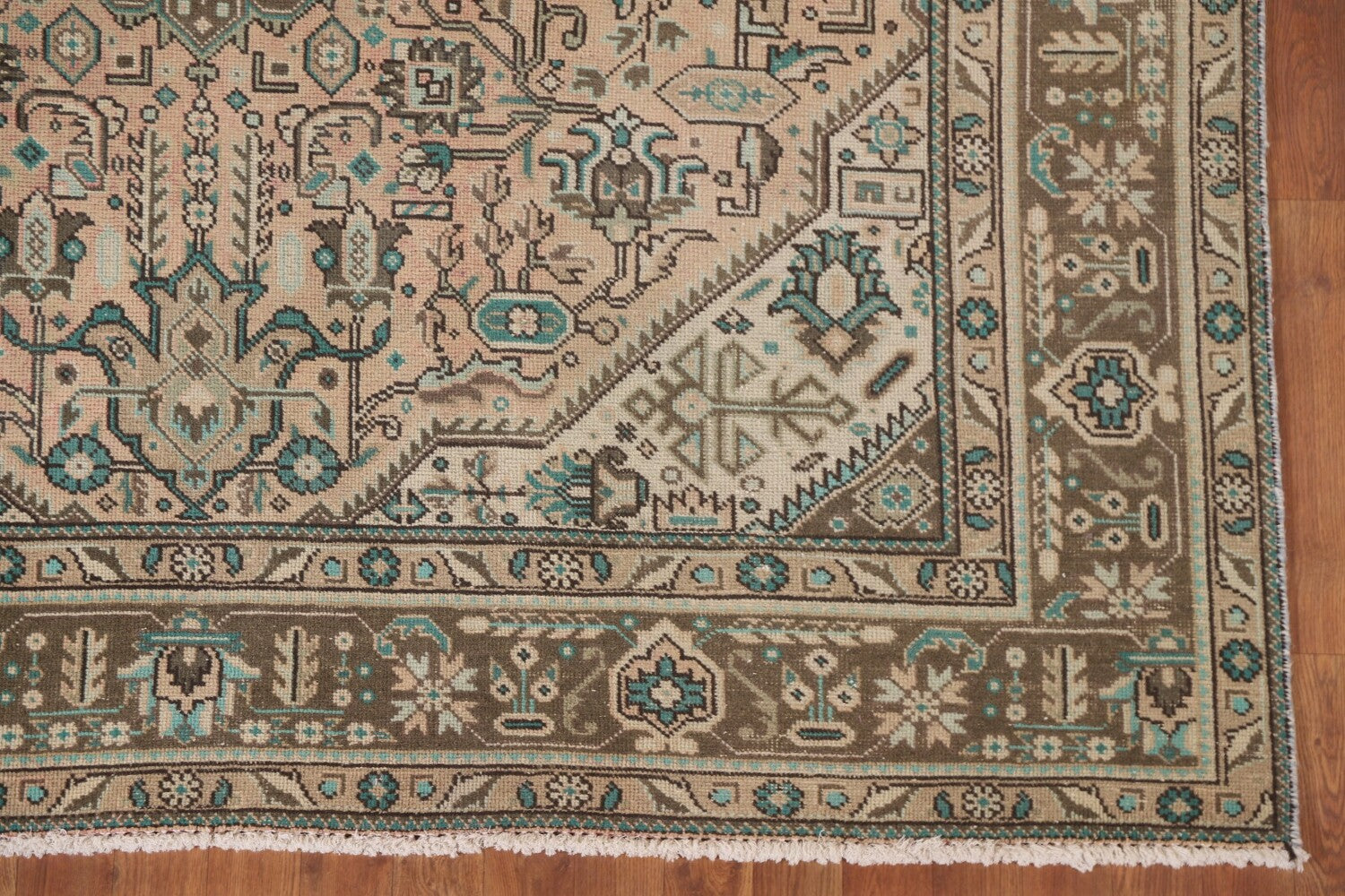 A Beautiful Genuine Persia ( Persia ) Tabriz rug is Hand Knotted by skillful weavers in Persia ( Persia ) with 100% Wool Material. This rug is in Very Good (Low Pile) condition. dimensions are 9' 5'' X 6' 7'' in foot and 287 X 201 in centimeter. the primary color is Peach.