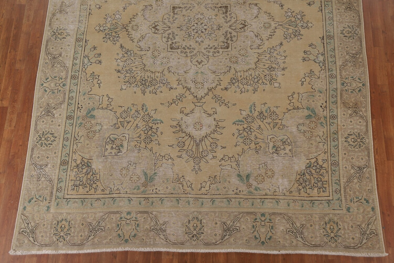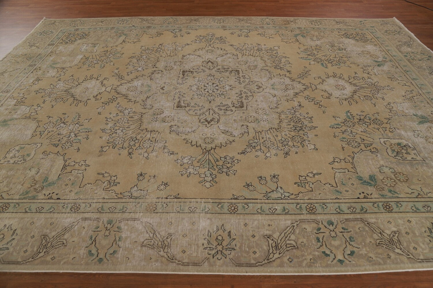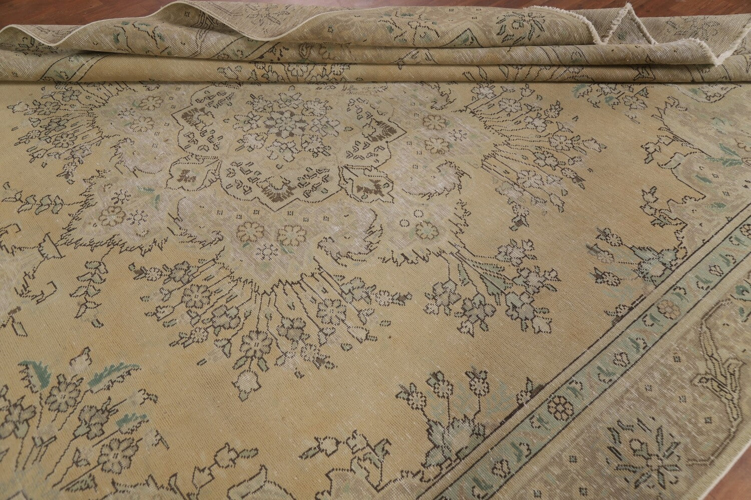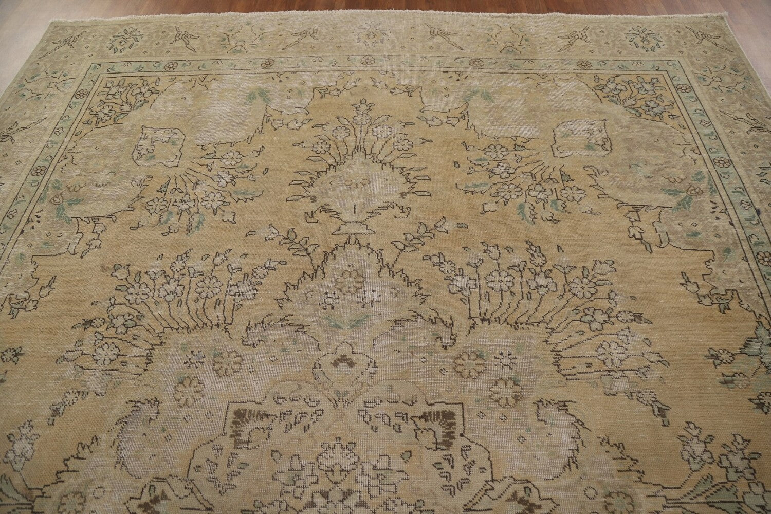 A Beautiful Genuine Persia ( Persia ) Tabriz rug is Hand Knotted by skillful weavers in Persia ( Persia ) with 100% Wool Material. This rug is in Very Good (Evenly Low Pile) condition. dimensions are 12' 5'' X 9' 2'' in foot and 378 X 279 in centimeter. the primary color is Peach.