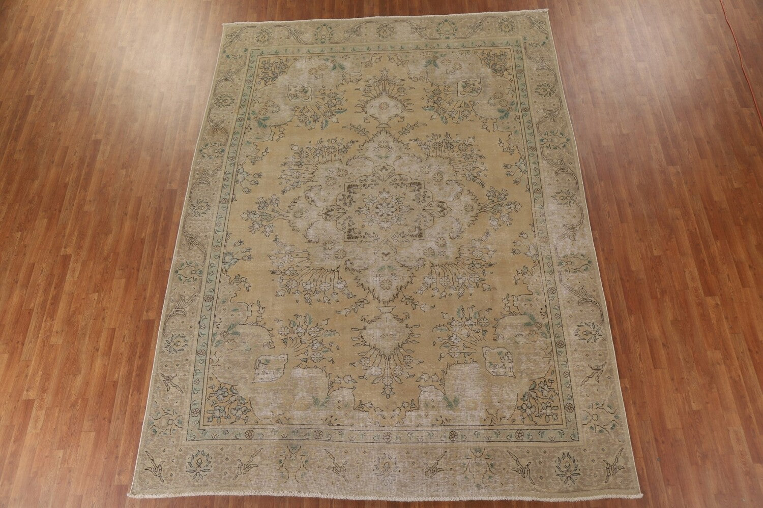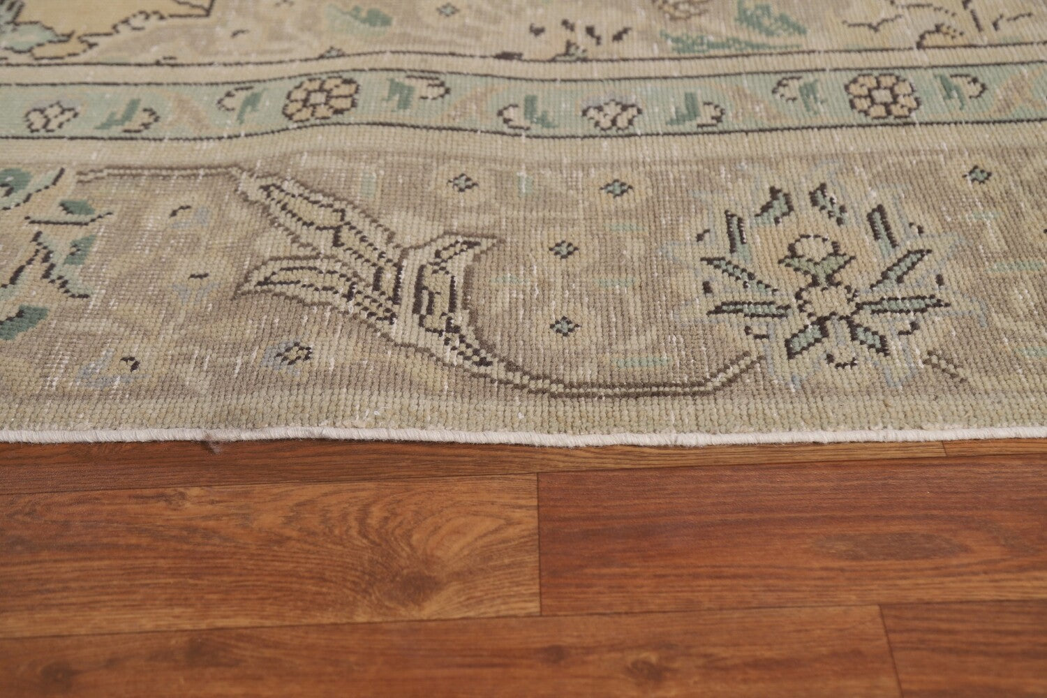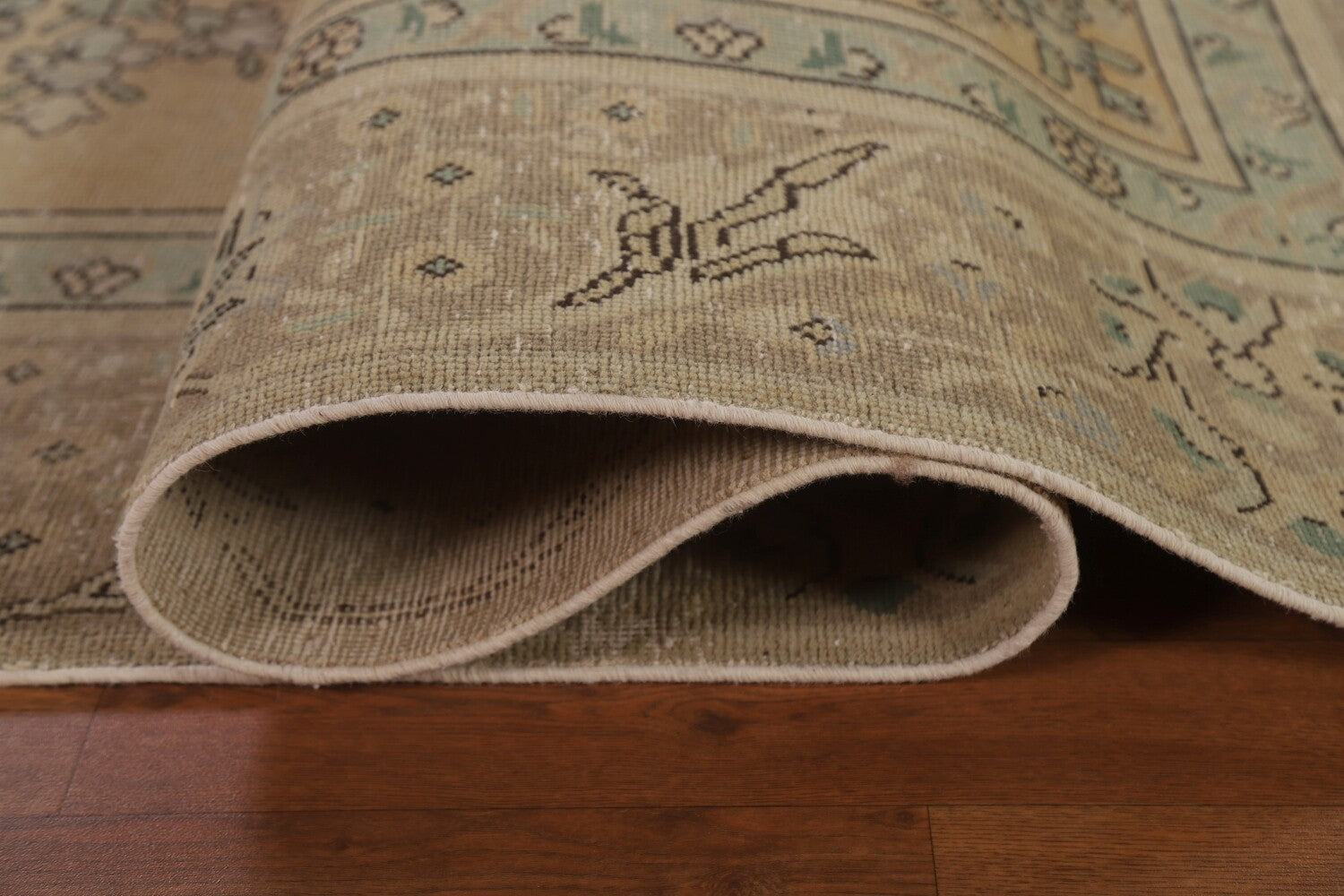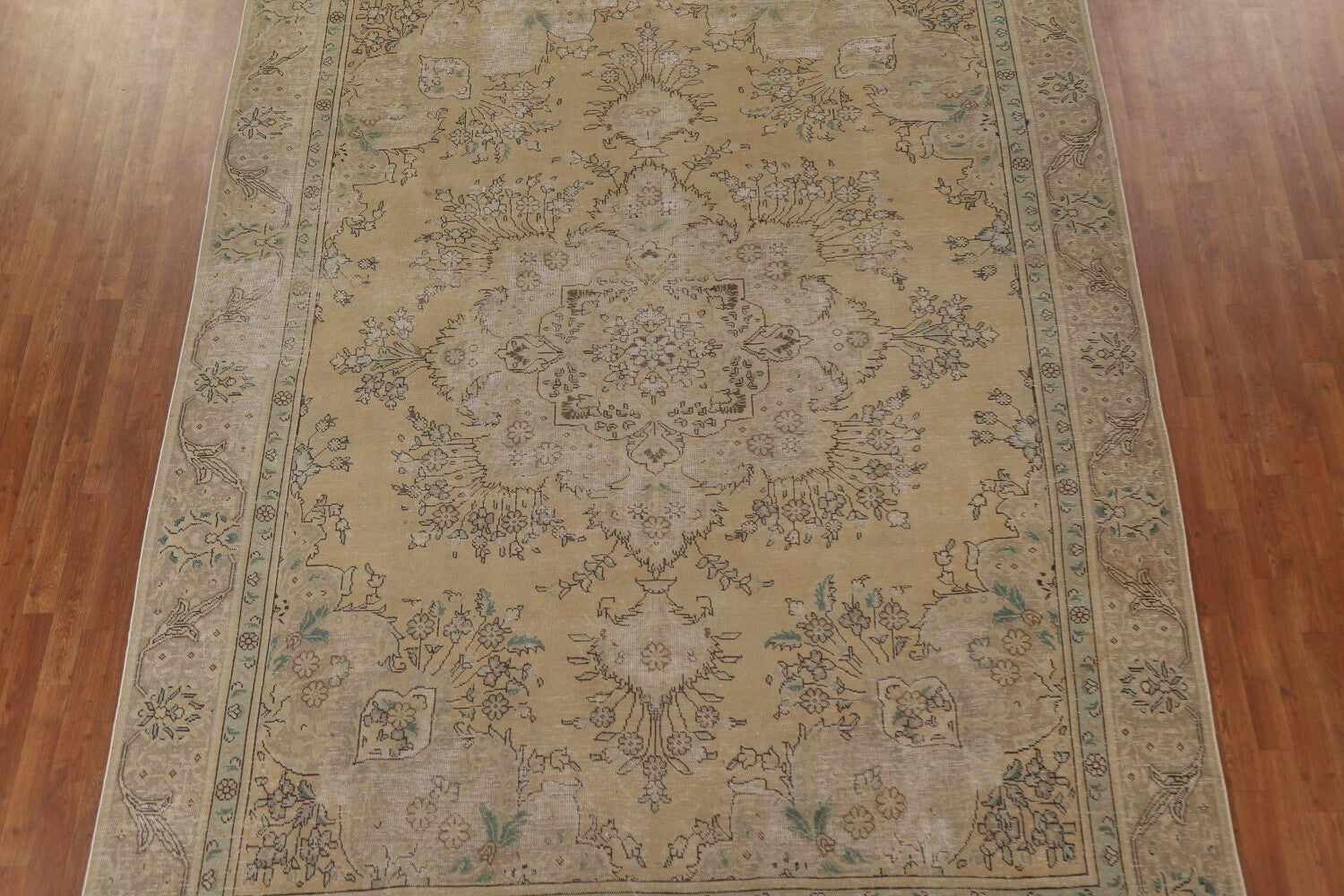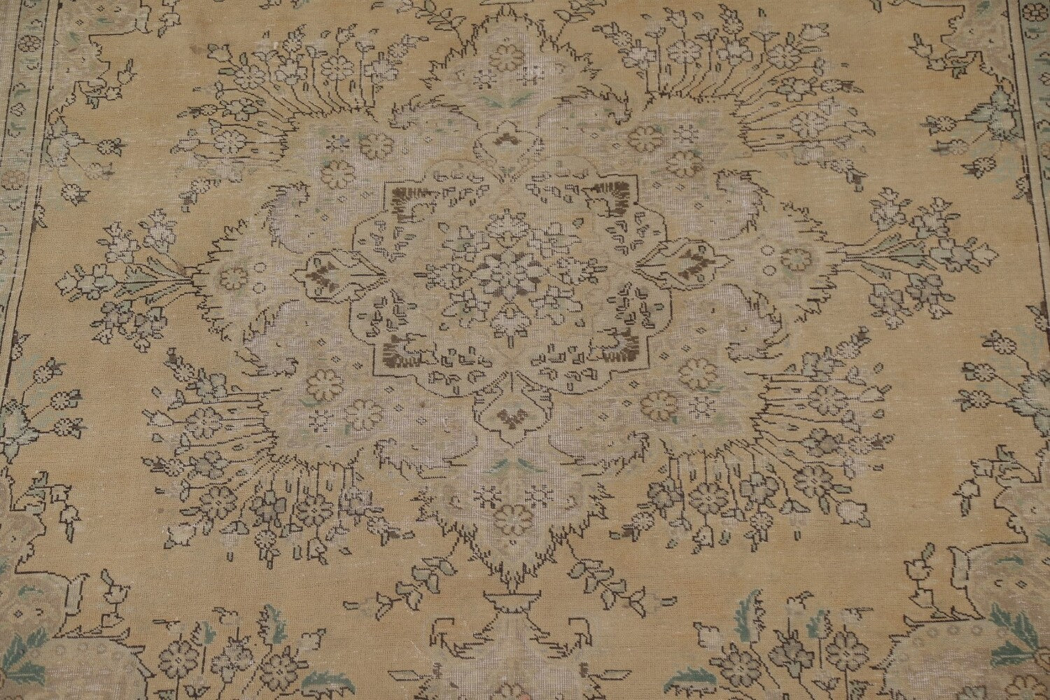 A Beautiful Genuine Persia ( Persia ) Tabriz rug is Hand Knotted by skillful weavers in Persia ( Persia ) with 100% Wool Material. This rug is in Very Good (Evenly Low Pile) condition. dimensions are 12' 5'' X 9' 2'' in foot and 378 X 279 in centimeter. the primary color is Peach.